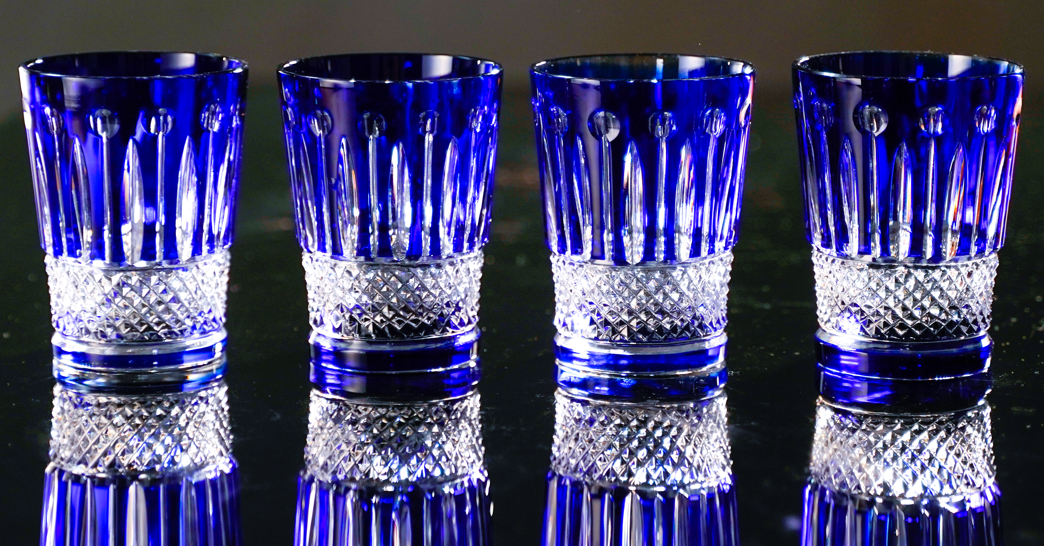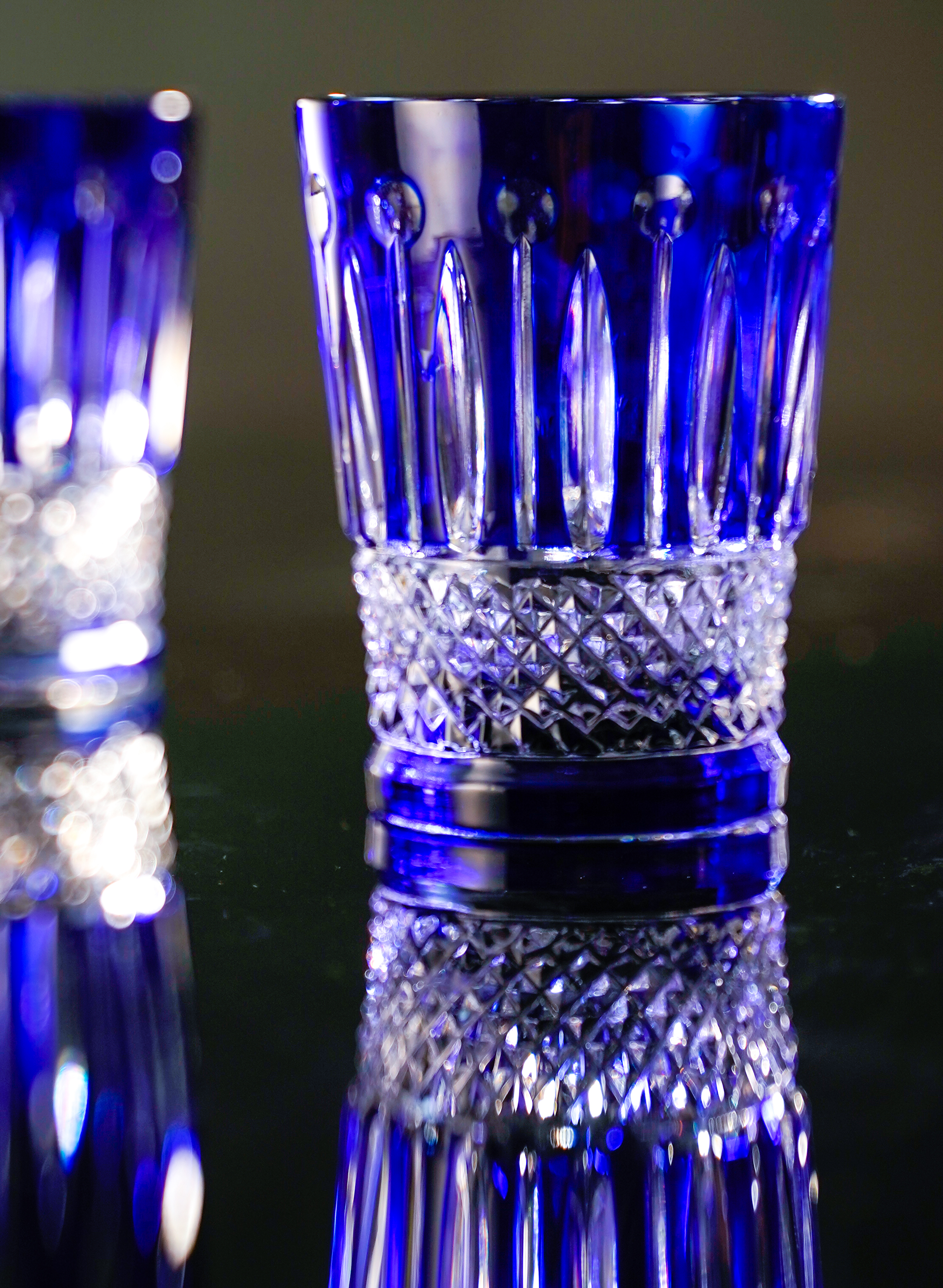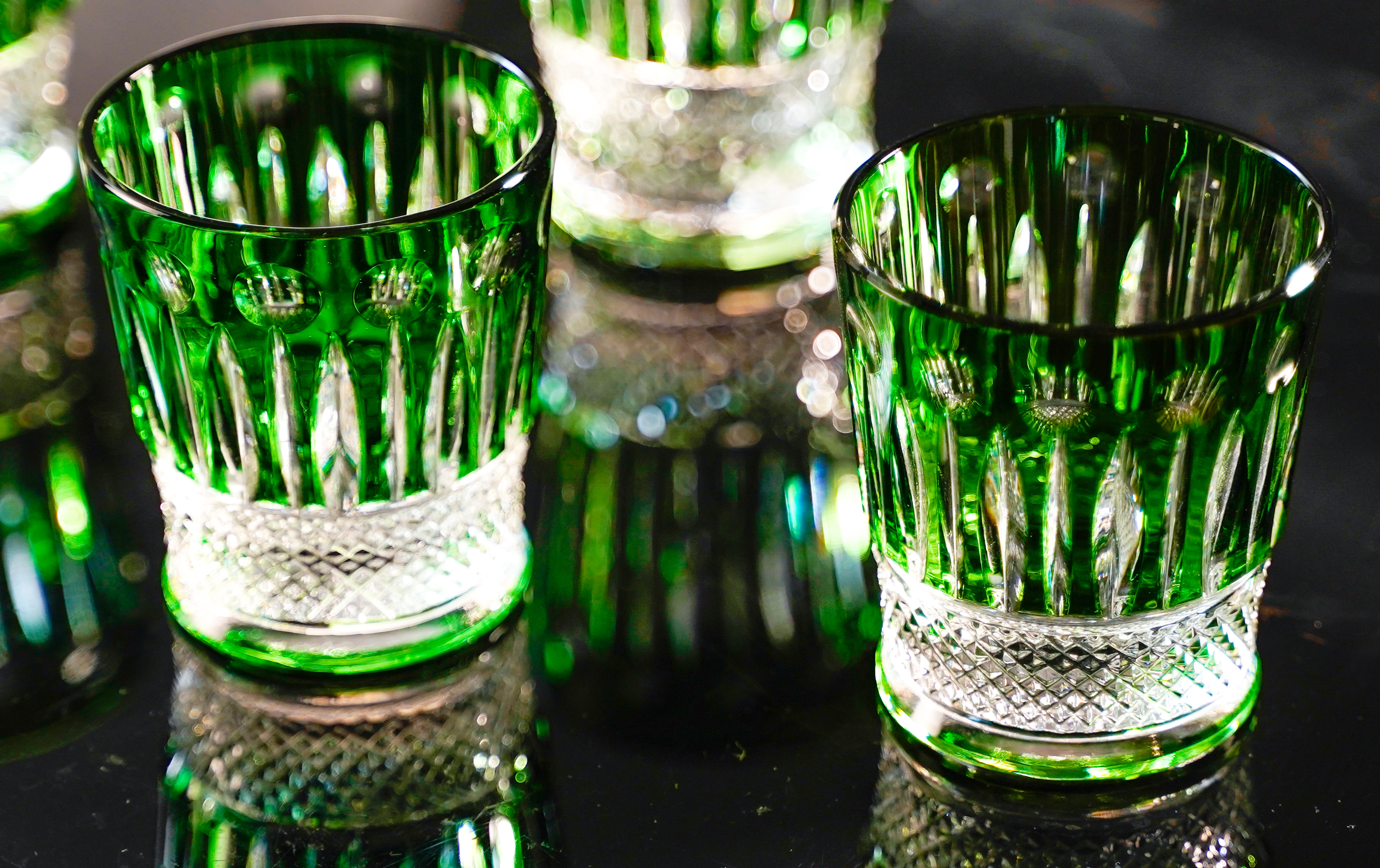 水晶威士忌杯绿、钴蓝2款【大小2个规格】,货号【C85-100-B7J】规格:83*83*109mm/货号【C85-90-B7J】规格:80*80*92mm