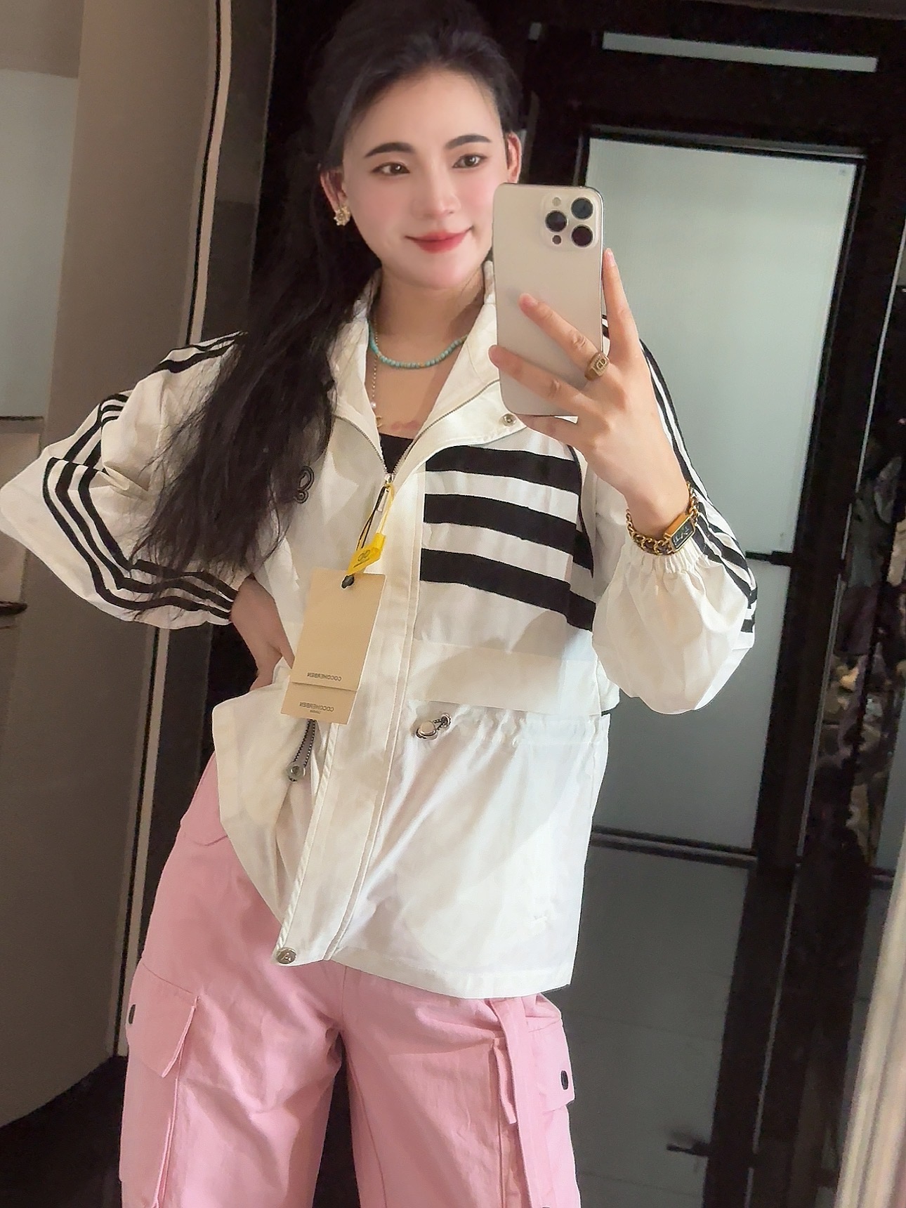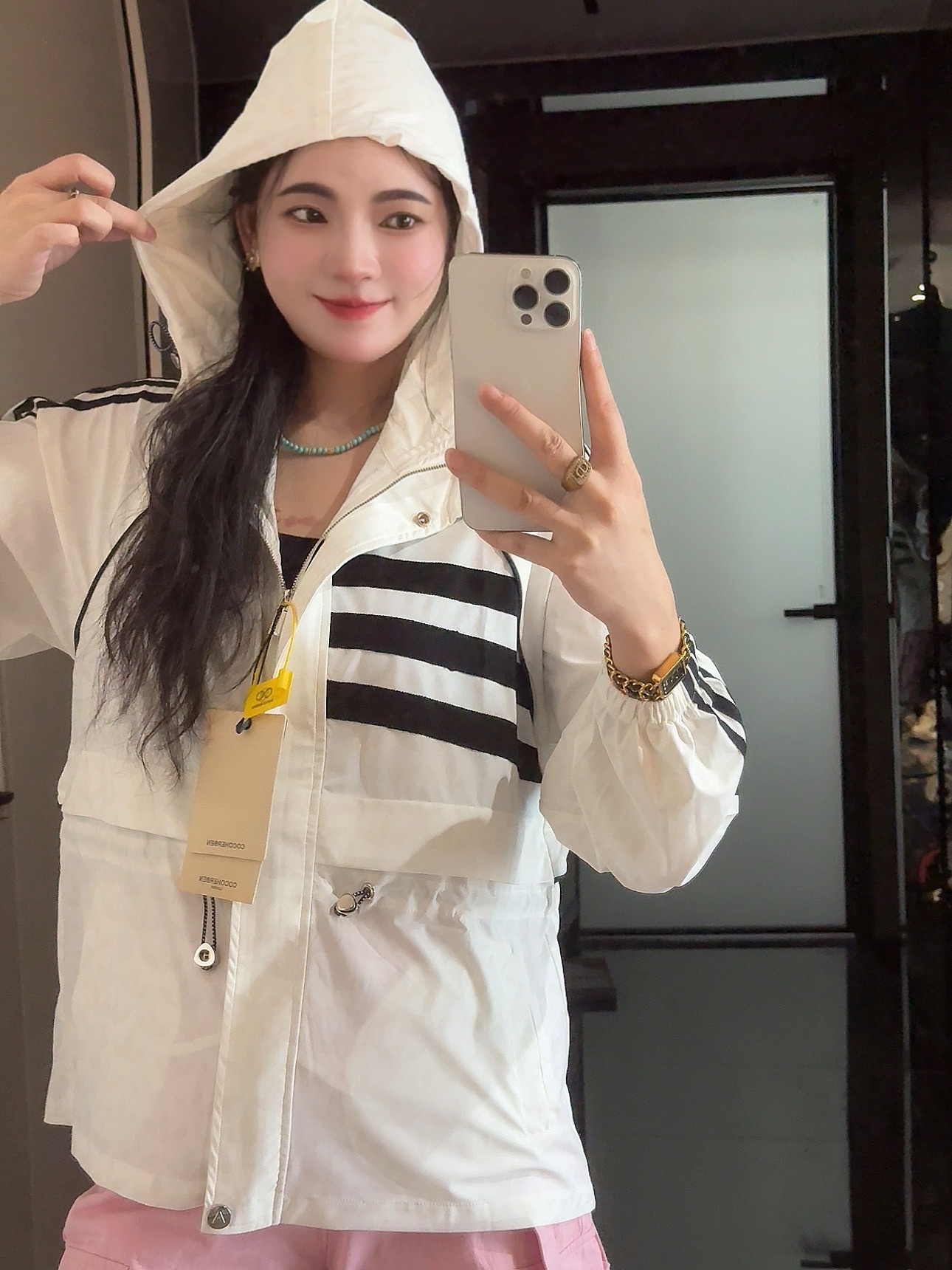 重磅必入‼️纯原单 AD风格黑白杠 皮肤衣风衣外套!有厚度 有克重!品质绝佳!吊牌价699!顶级好货!防晒皮肤衣 Hood lite科技面料,真的是亲肤感超级强,摸上去很有满足感,薄如蝉翼,面料丝绸般顺滑柔软,同时还拒水挡风。不易被水沾湿、防晒、防紫外线、透气! 大太阳防晒,空调房挡风。腰部抽绳可以收紧,S身材立显!可以挂在腰间,外出徒步爬山方便不累赘。后背通风设计透气。码数S80-110斤!M码100-130斤!L码110-150斤! XL120-170斤!这款根据喜欢长度购买即可!⚠️
