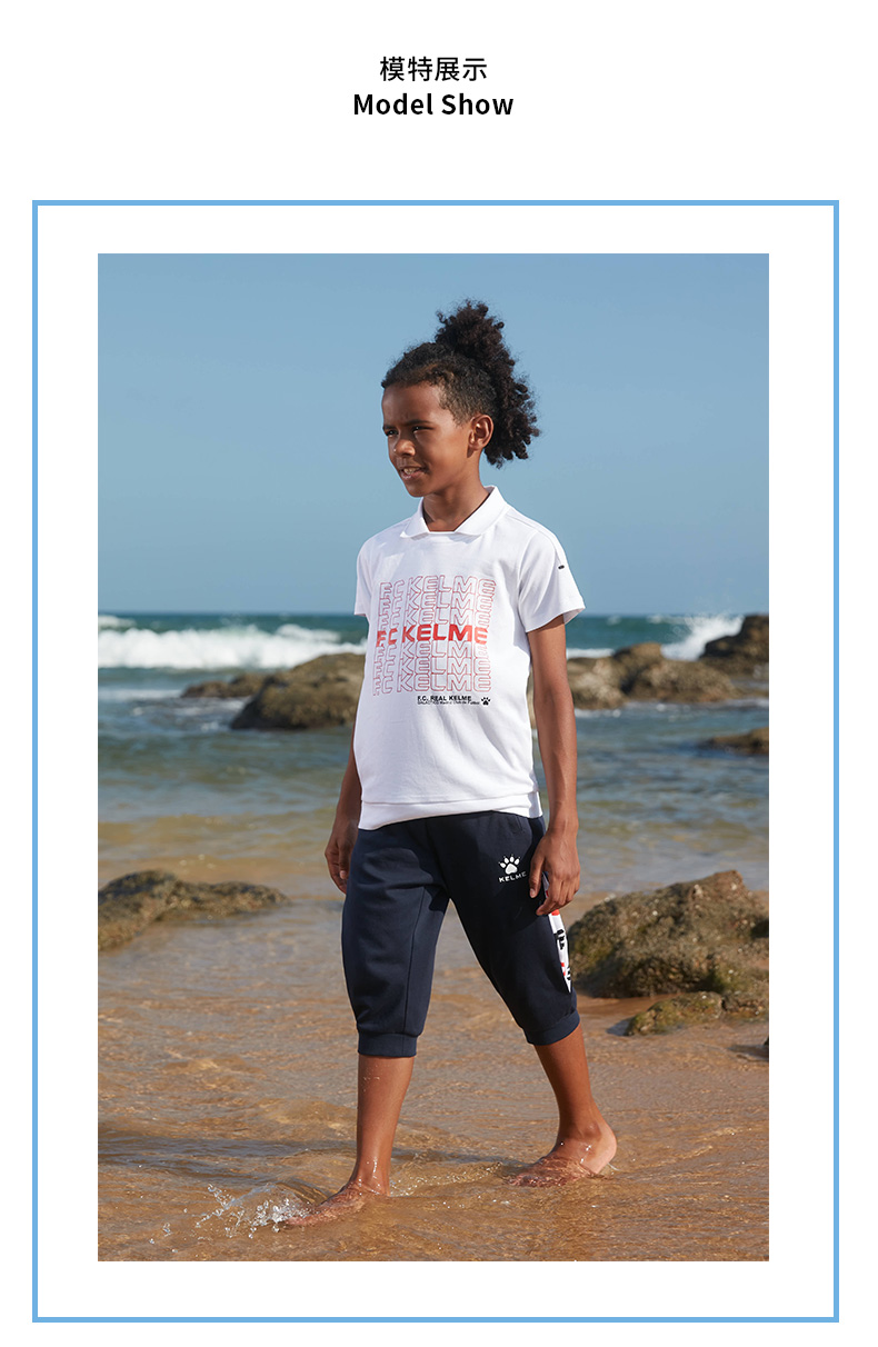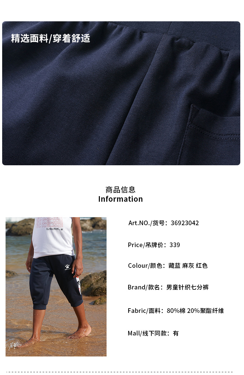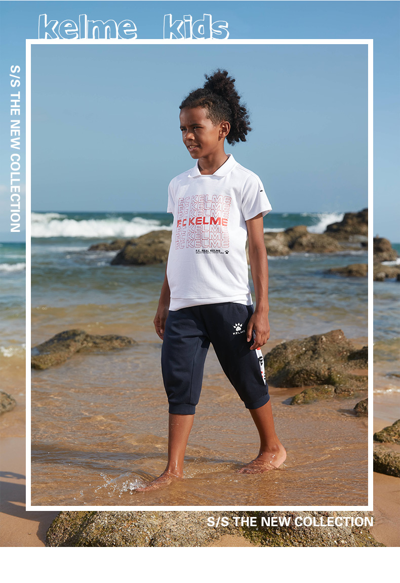 kelme(kids)新款夏装儿童男童针织中裤潮宝宝休闲裤七分裤