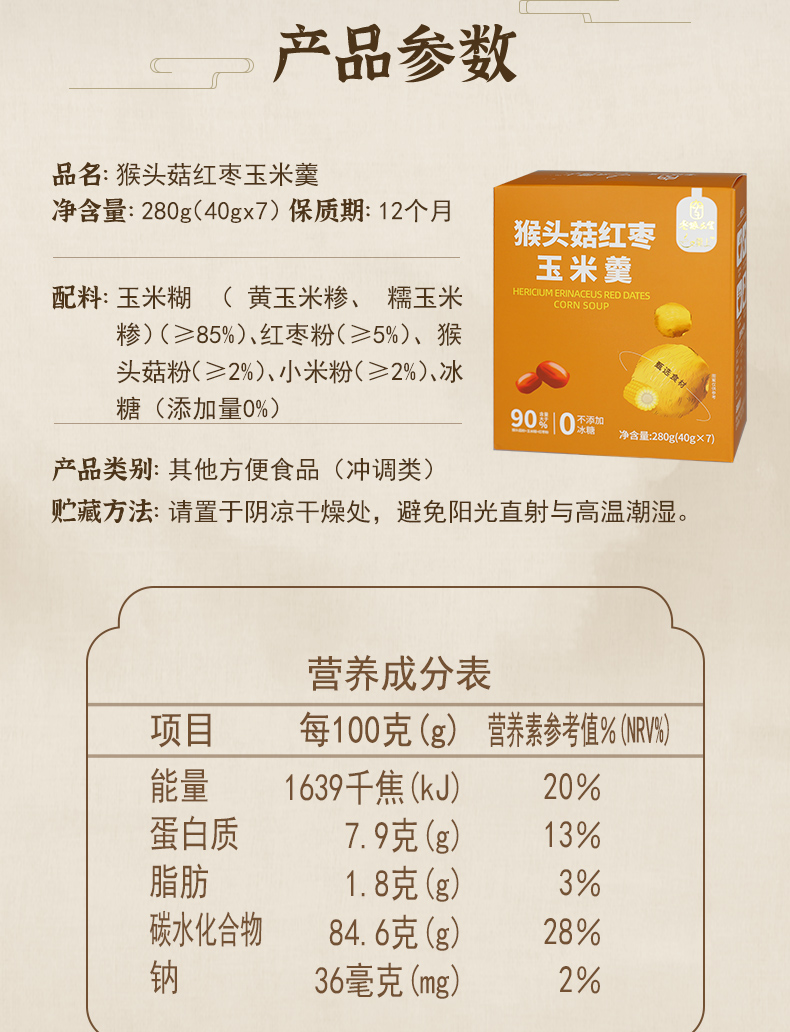 【一碗好羹 膳食养好胃】枣粮先生 猴头菇红枣玉米羹 早餐饱腹营养餐 冲饮即食 便携易带小包装 280g/盒