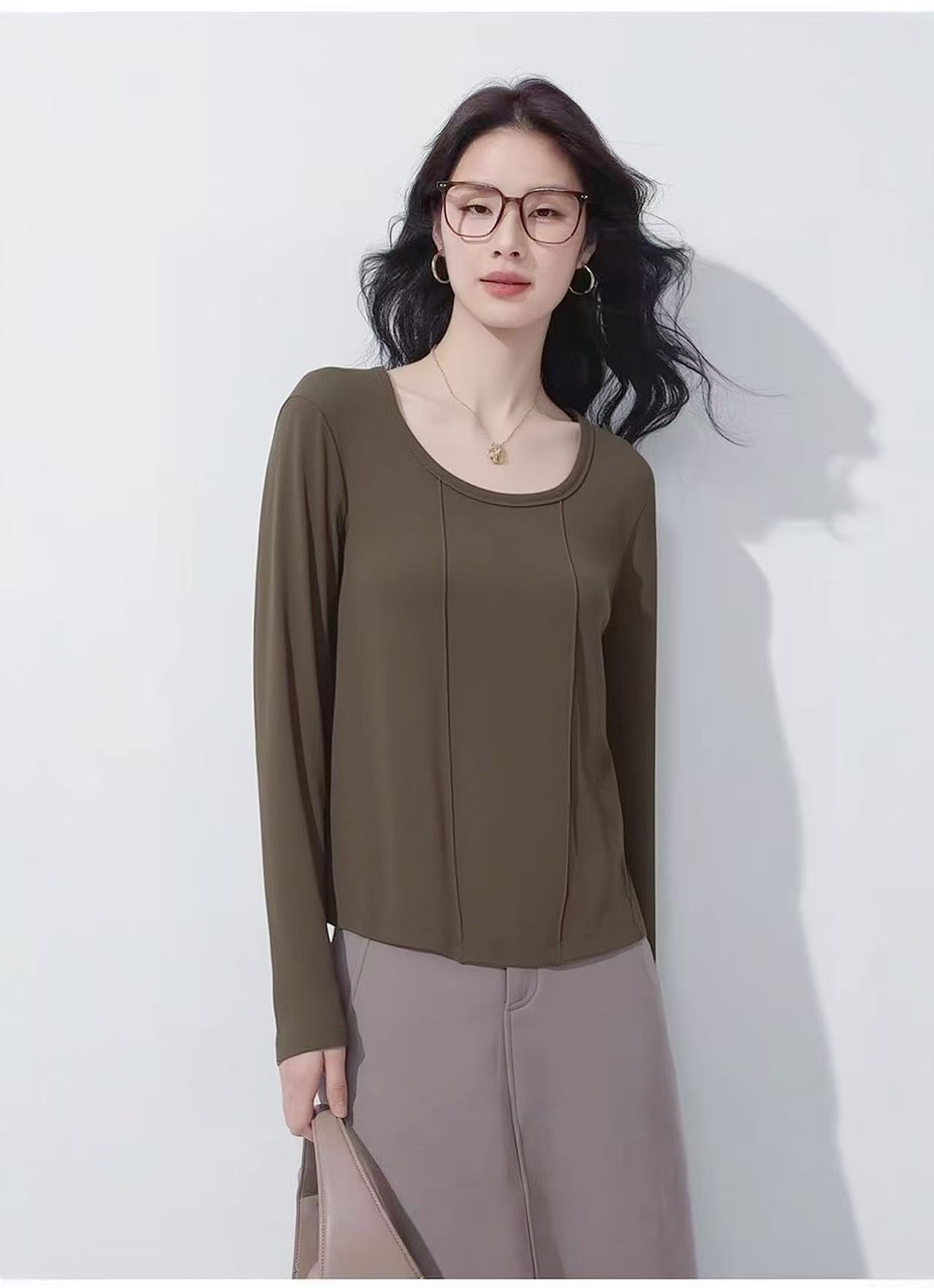 这也太好穿了吧【超值特卖】688双压线圆领超软超弹打底衫-喜出