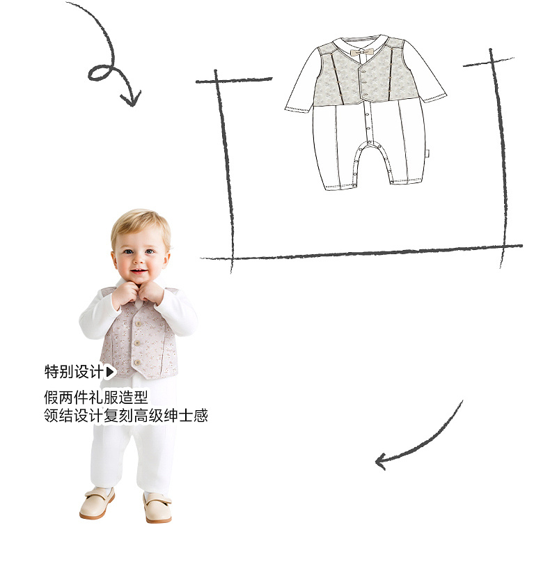 【高定系列】英氏婴儿连身衣男宝假两件哈衣春夏长袖哈衣帅气百搭