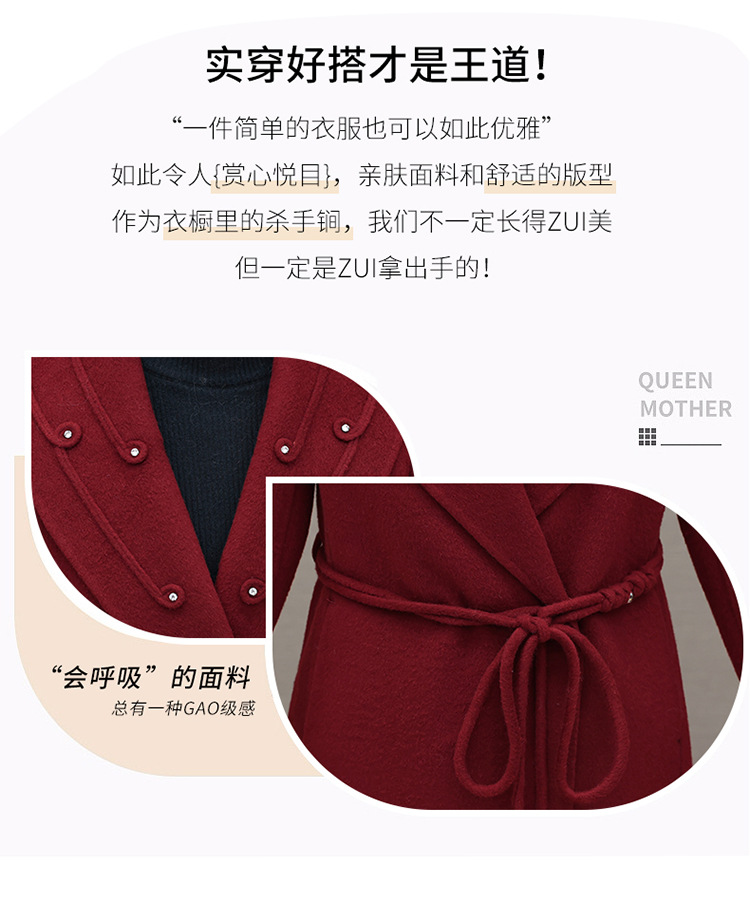 QYM 5276CL4988时尚双面呢子毛呢外套休闲中长款外套 商品图4