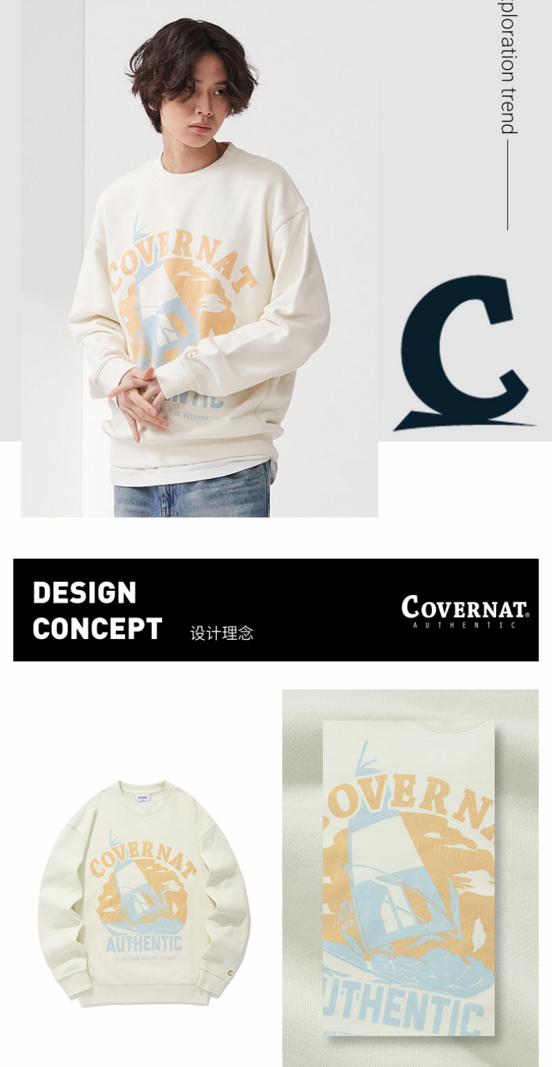 Covernat韩国潮牌25情侣款圆领套头卫衣卡通印花减龄慵懒风CO2401CR09