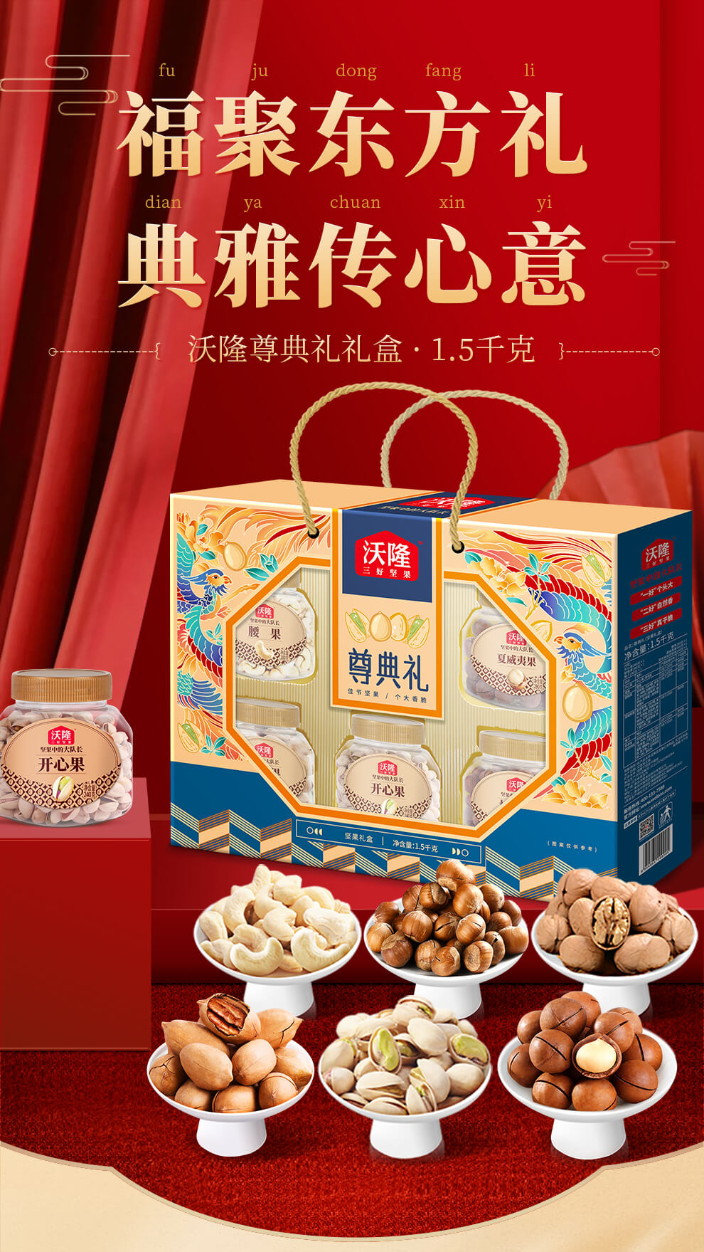 商超同款丨沃隆尊典礼1500g混合坚果送礼干果大礼包零食年货礼盒
