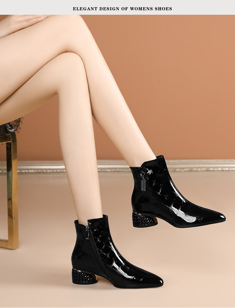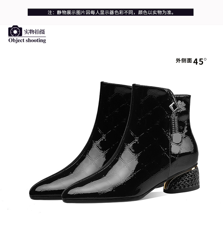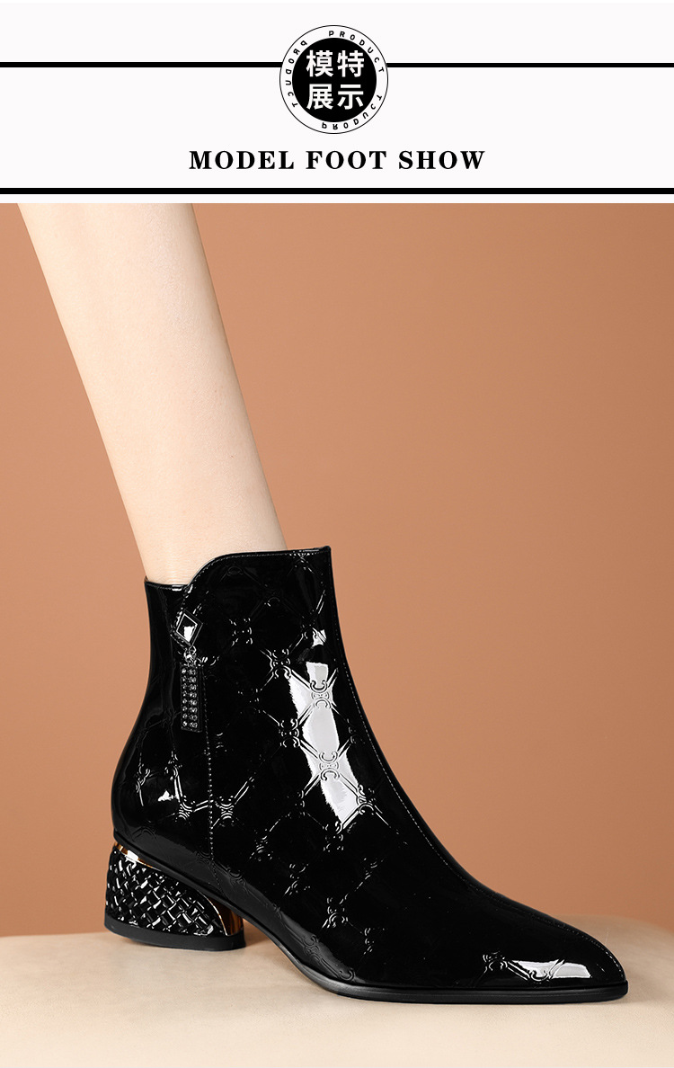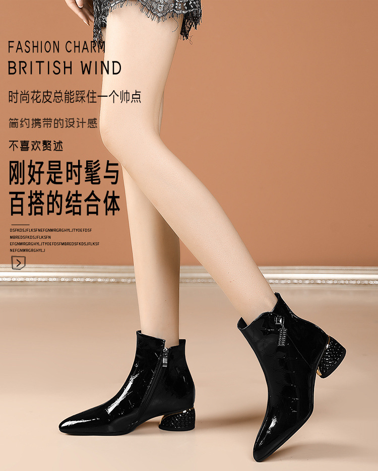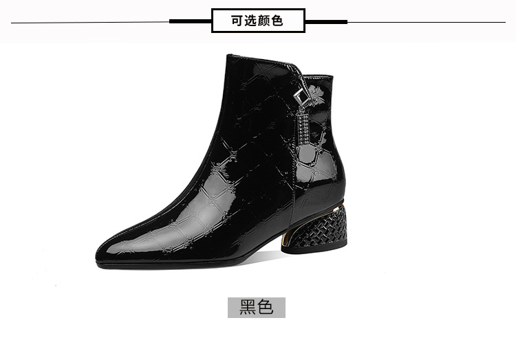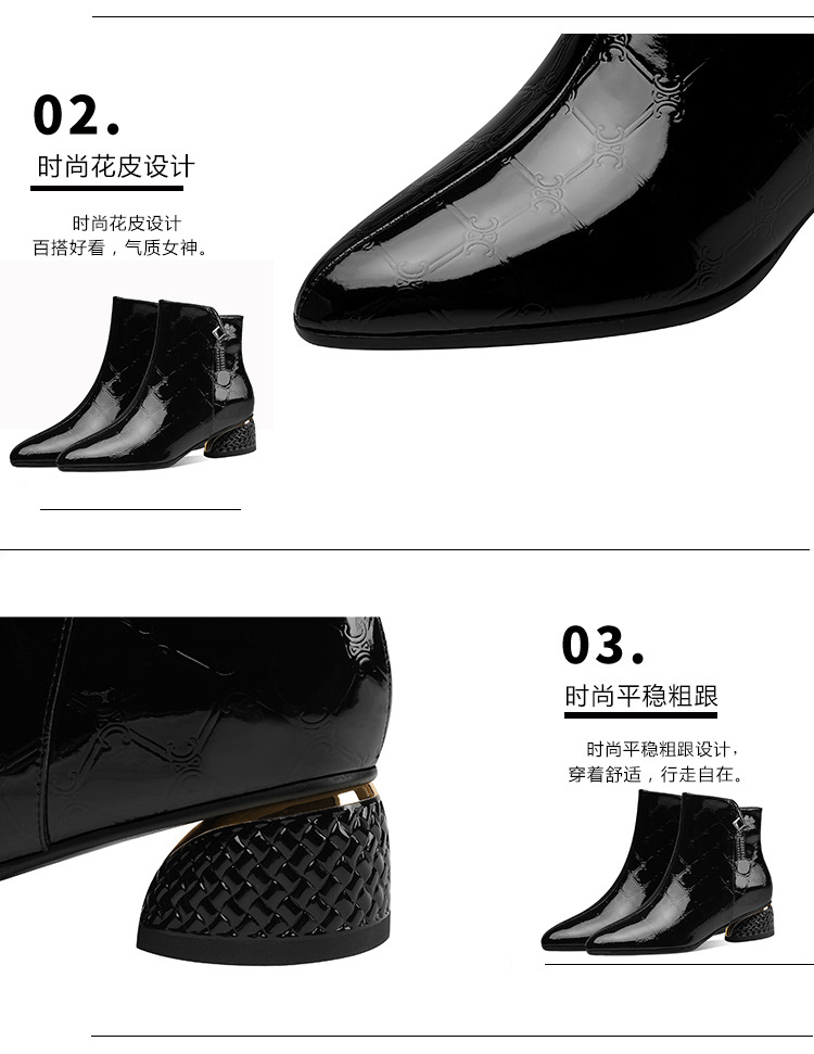 OLD-QWT1003aa时尚漆皮尖头粗跟中跟短靴