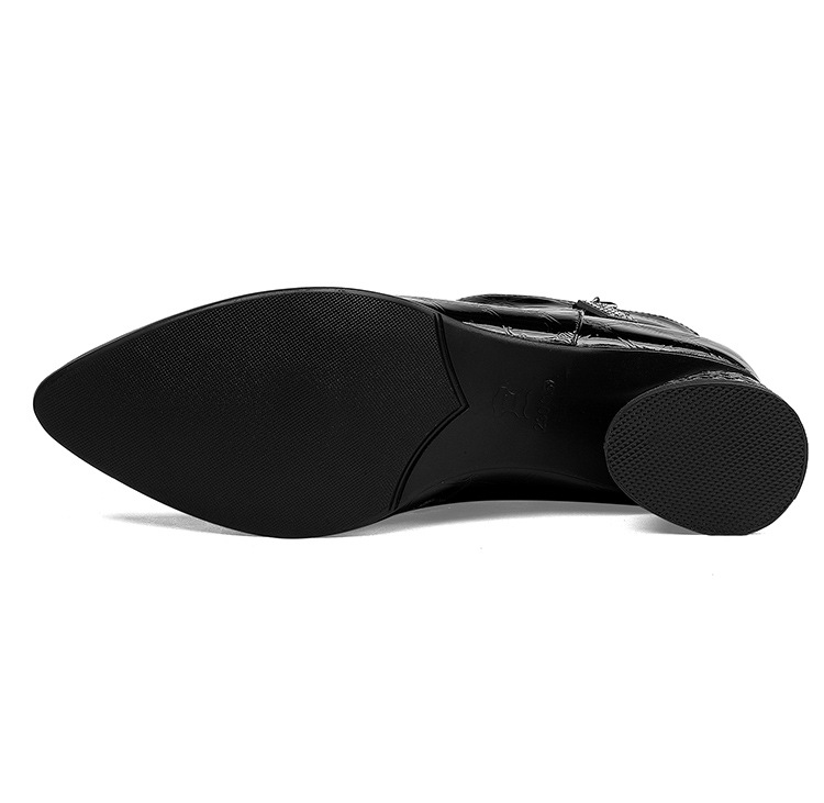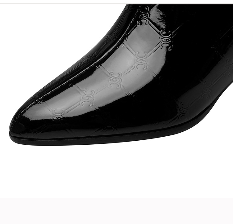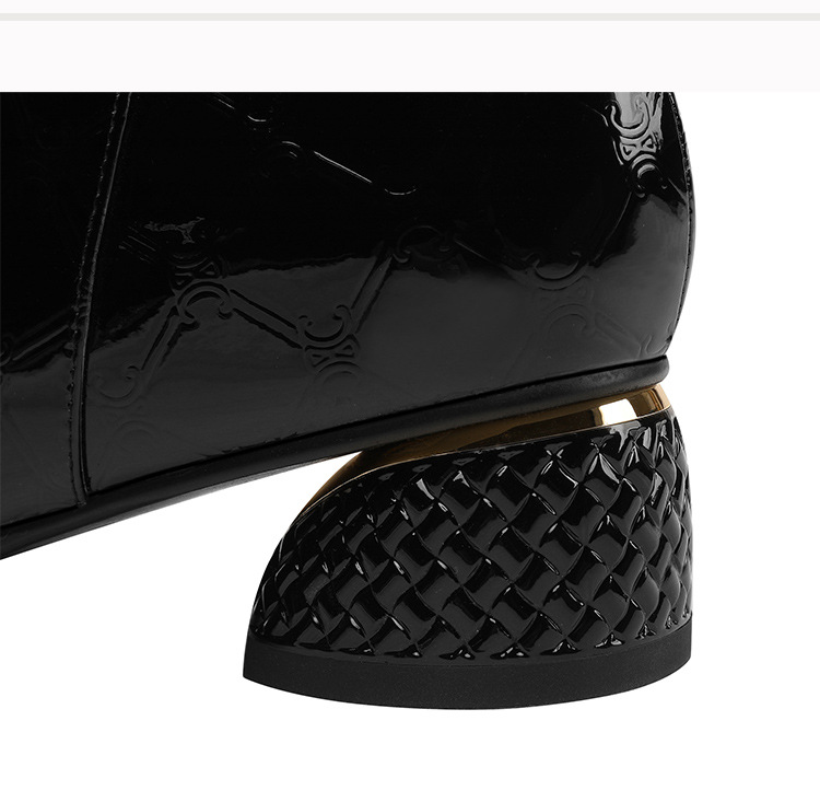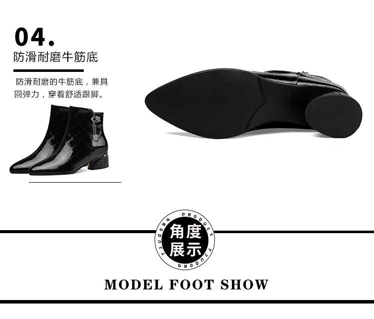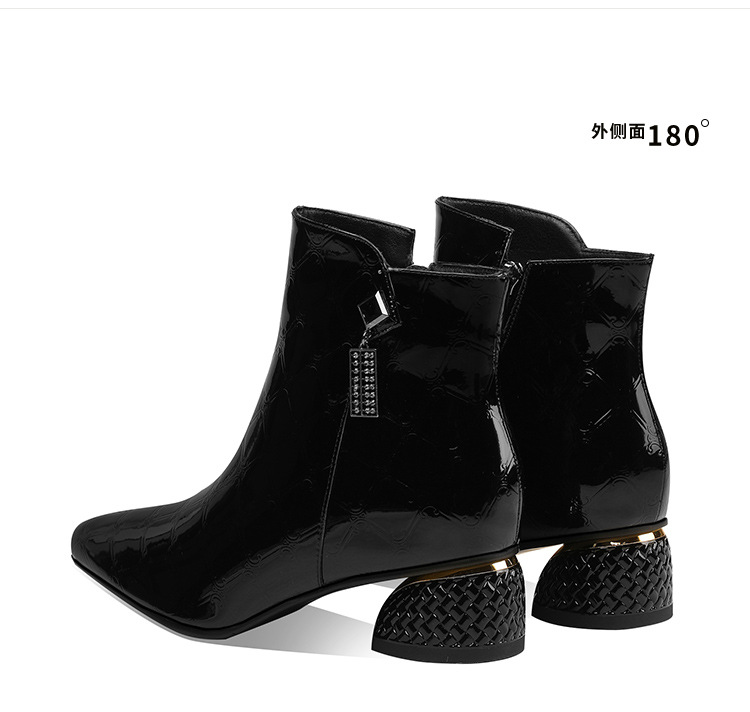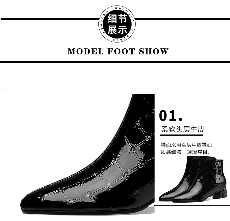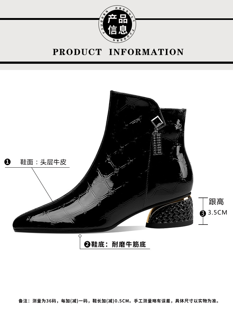 OLD-QWT1003aa时尚漆皮尖头粗跟中跟短靴