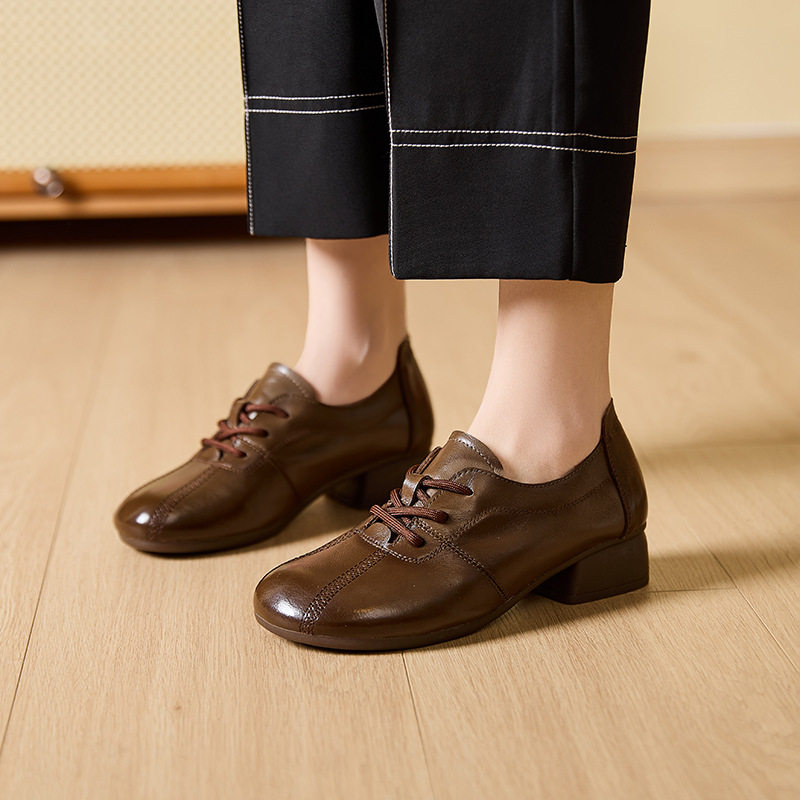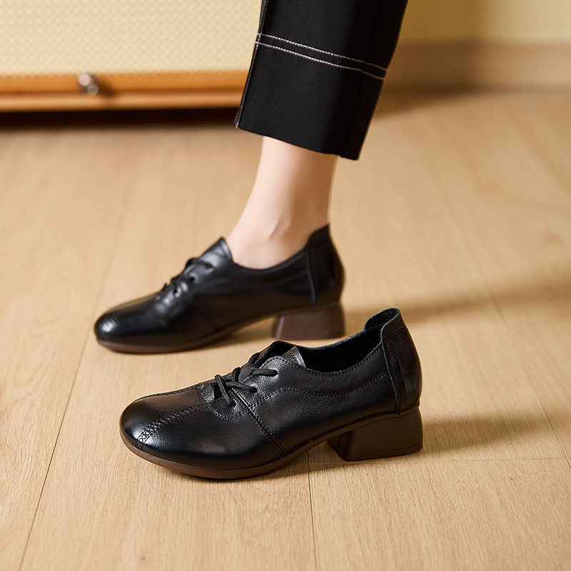 JY9869 2025春秋妈妈鞋真皮软底中老年女士皮鞋深口舒适防滑老人单鞋