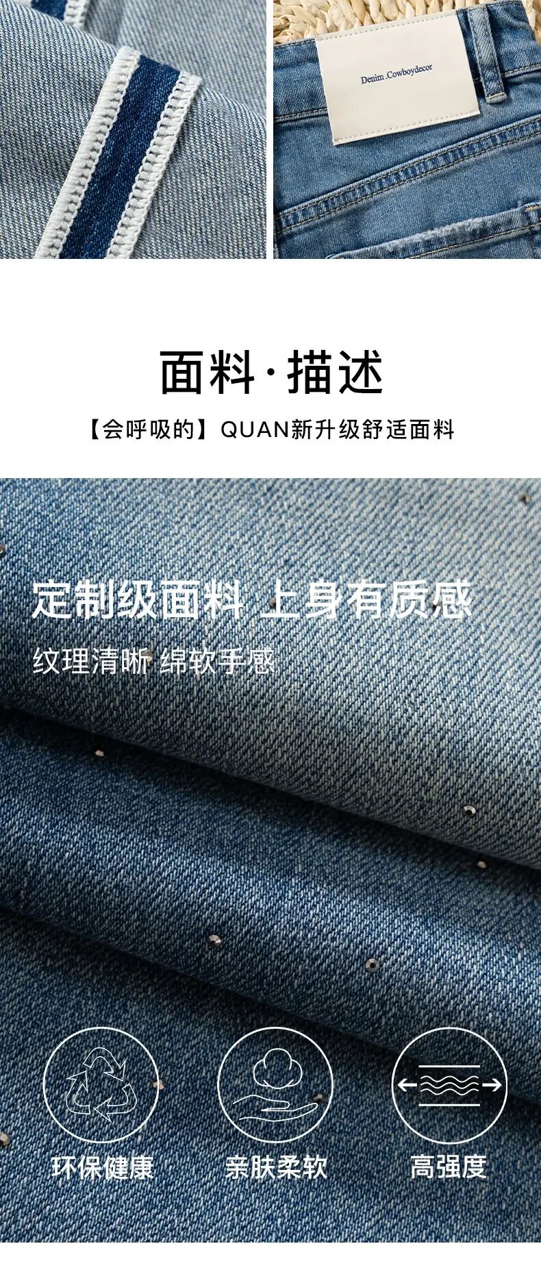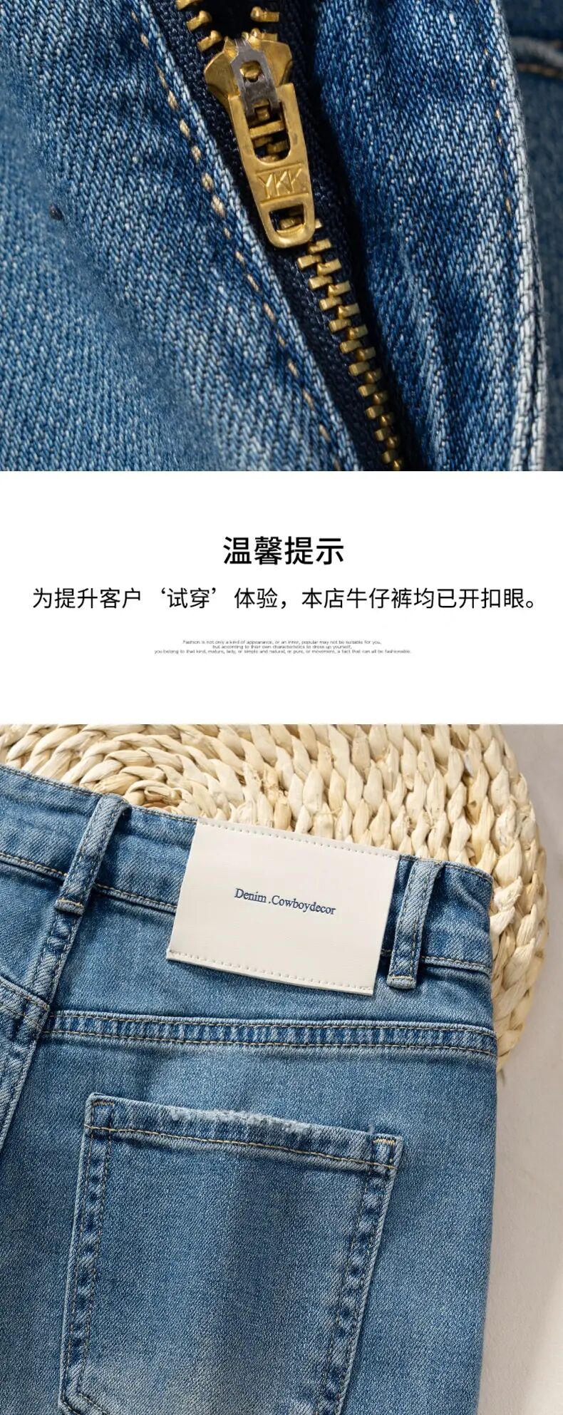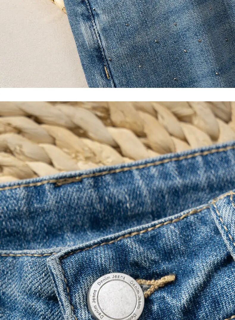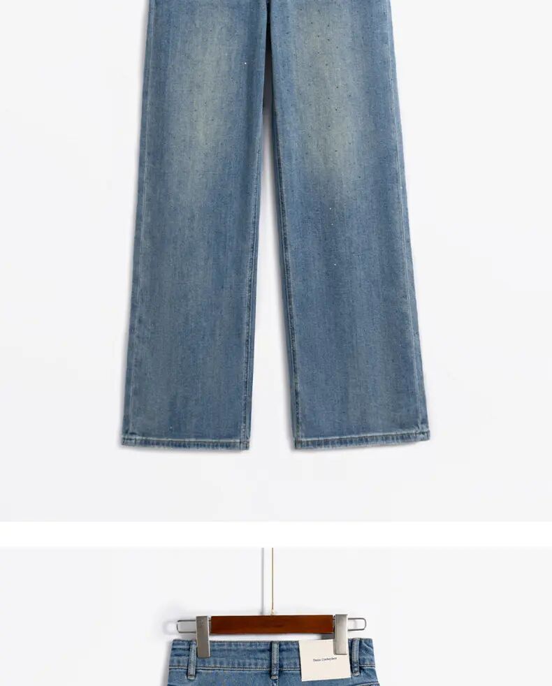 【自】全新升级【铂金会员183/天猫239/差价56】(01509) 洛诗琳做旧复古蓝烫钻牛仔裤夏季薄款阔腿裤高腰百搭裤子