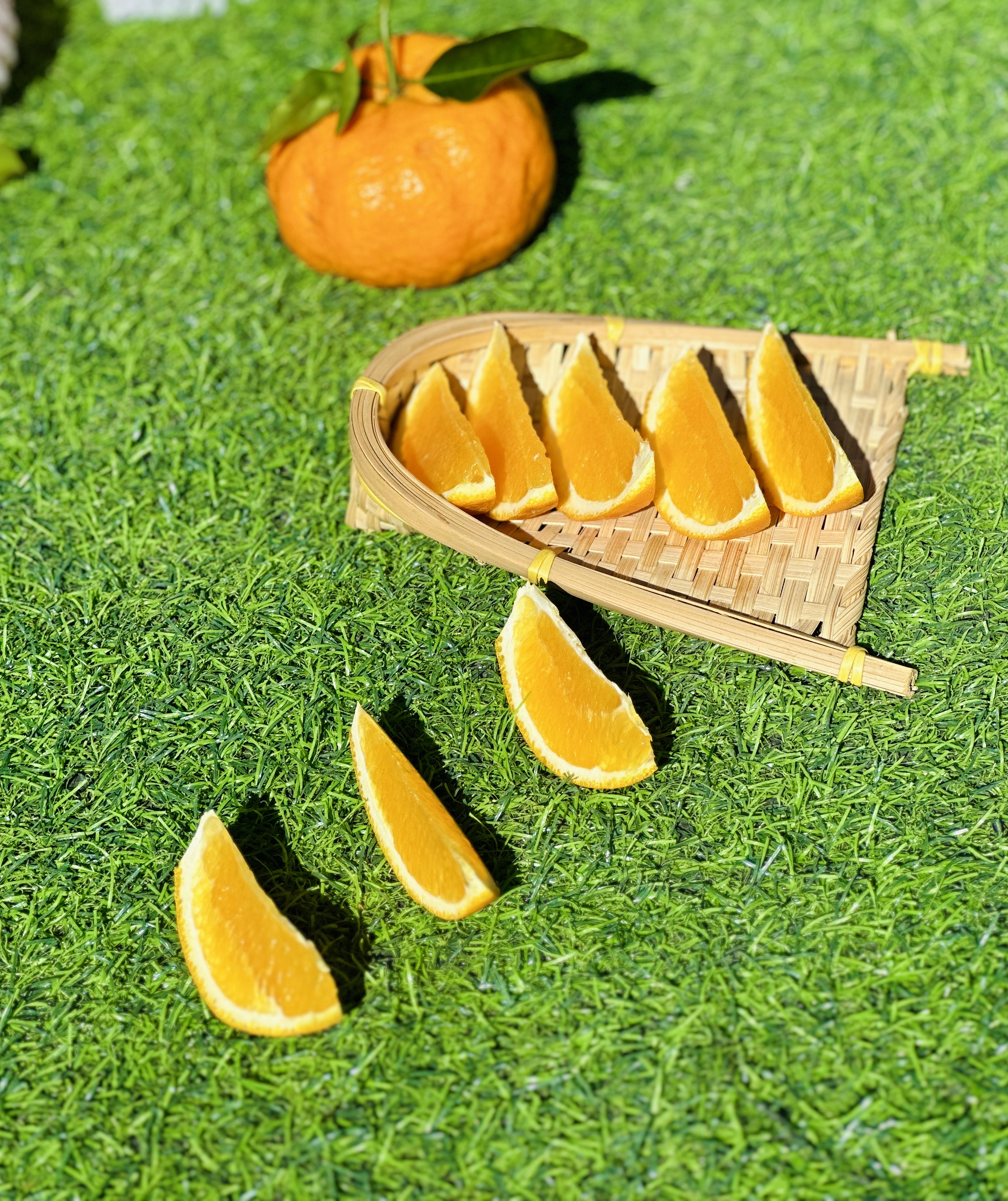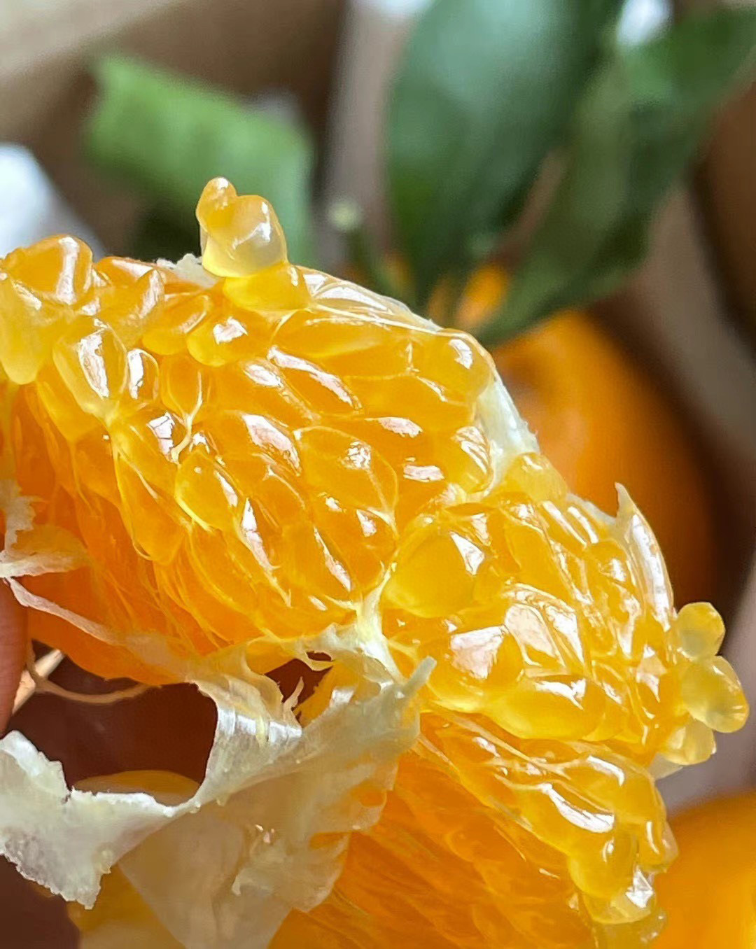 椪柑虽然看着外表皮皱皱的,却有着一颗水做的女儿心,果肉细腻,轻轻撕开果粒被果汁挤得鼓涨饱满,圆润剔透!轻咬一口,清甜幽香的果汁布满口腔,甜上心头!