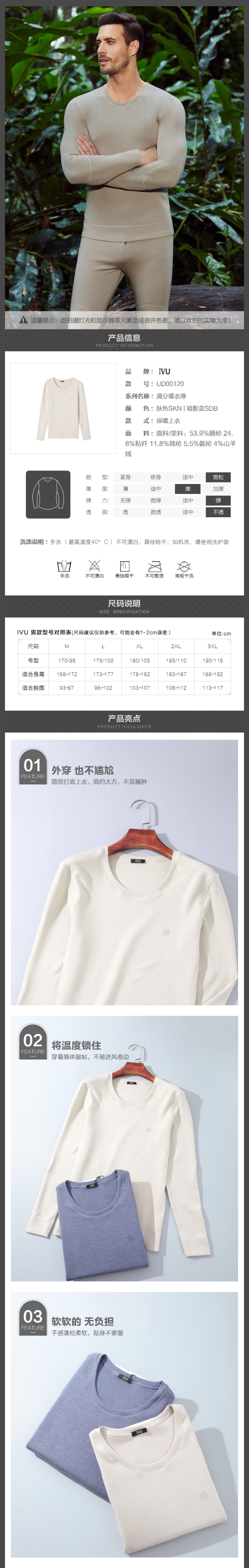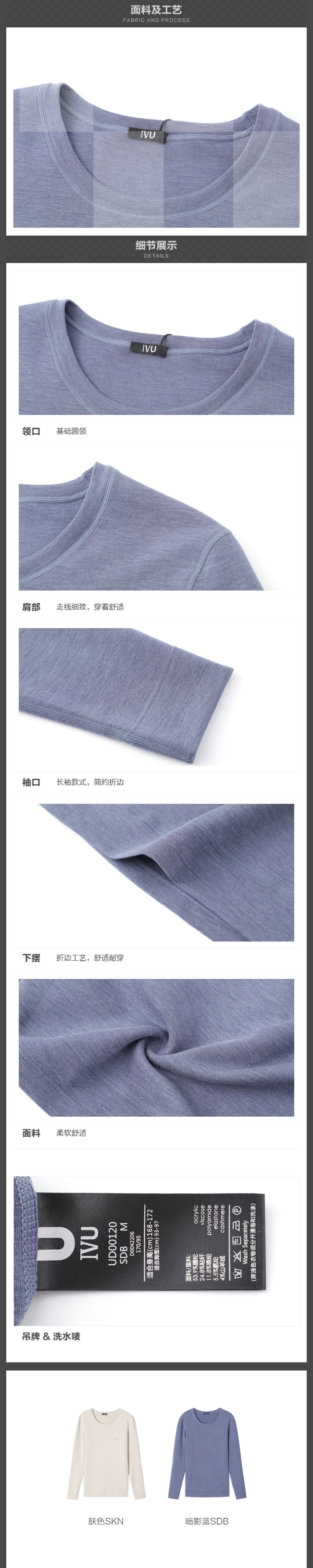 安莉芳旗下IVU新品基础圆领暖衣男士舒适长袖打底上衣UD00120