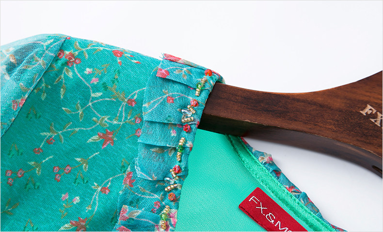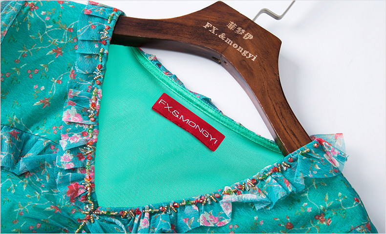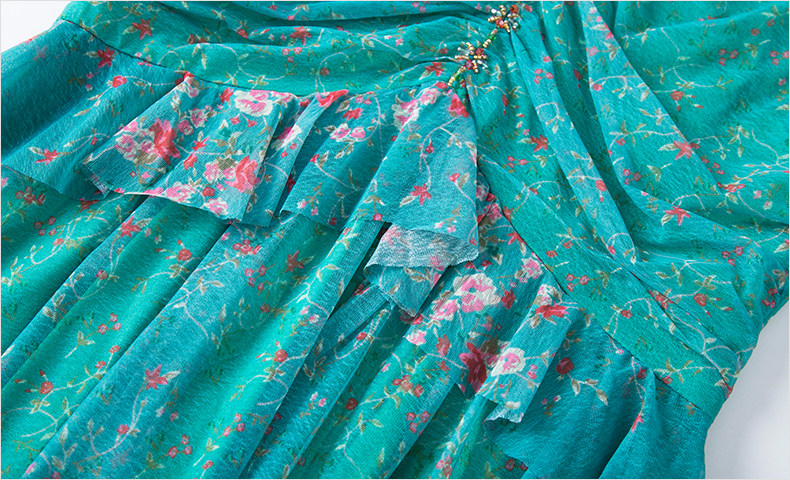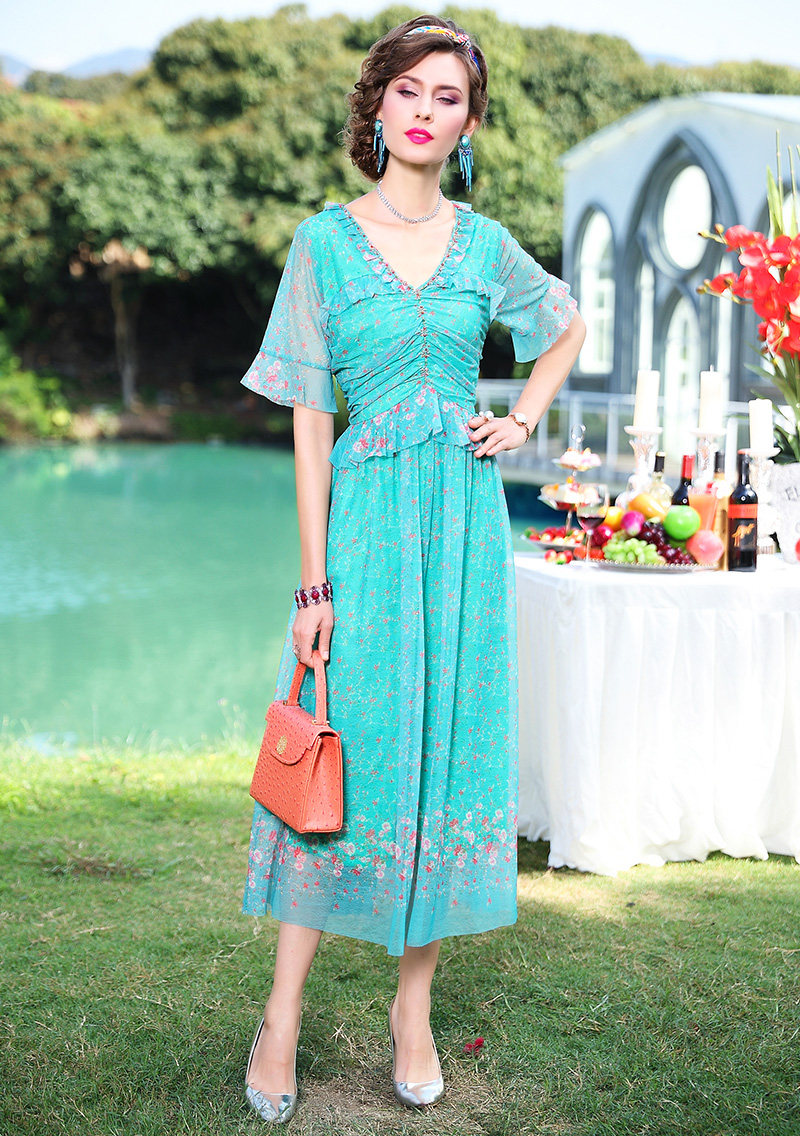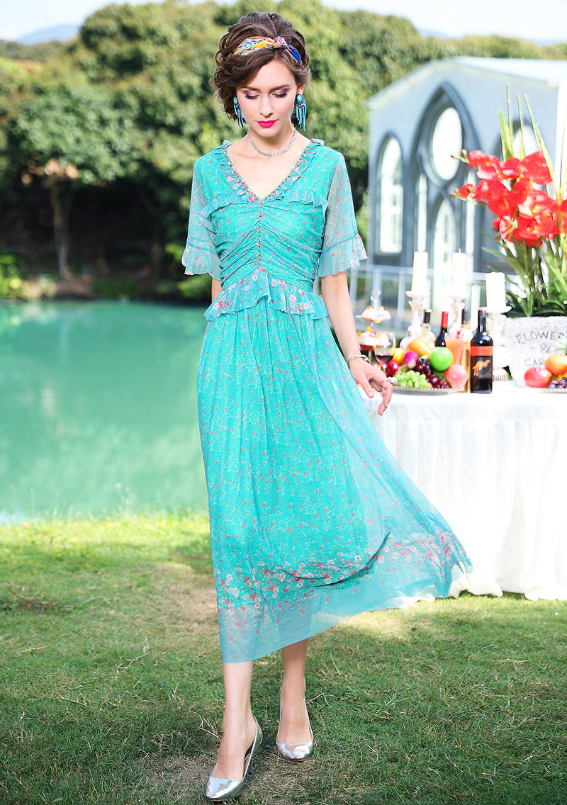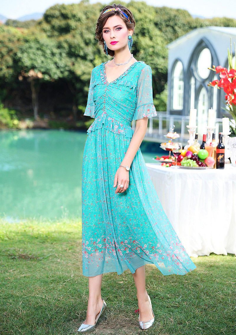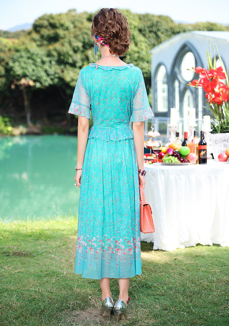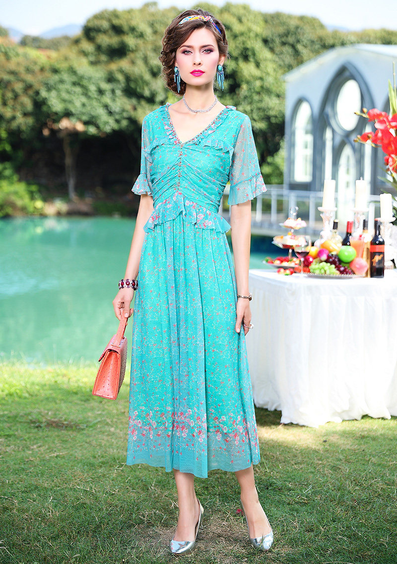 FMY-F20XL31286碎花短袖V领时尚小众气质超仙长裙子