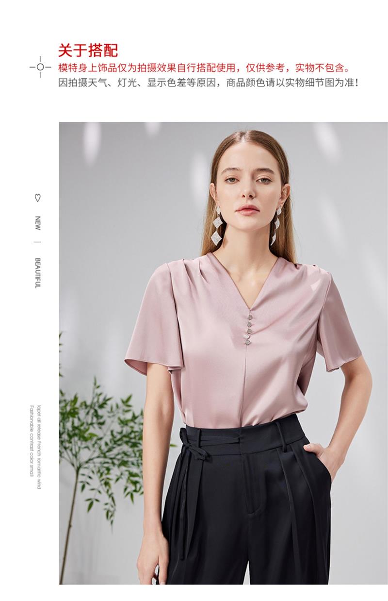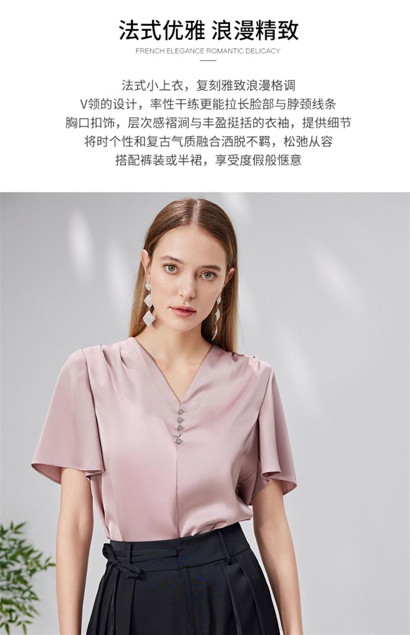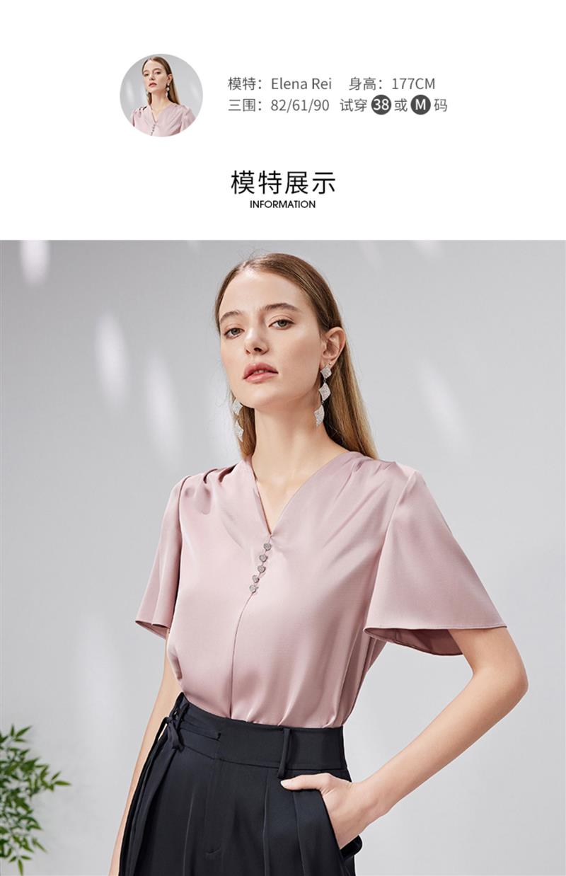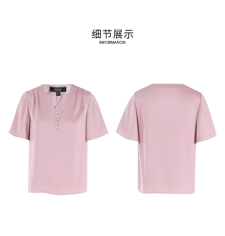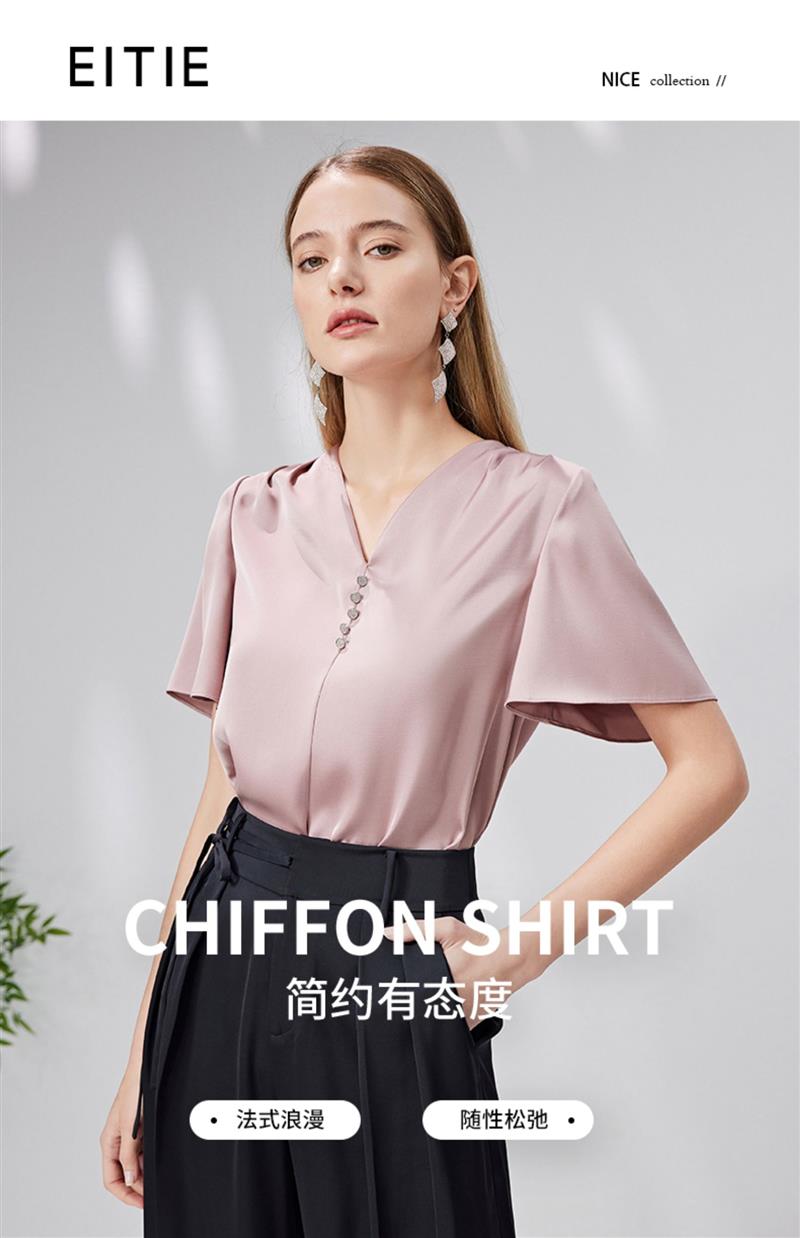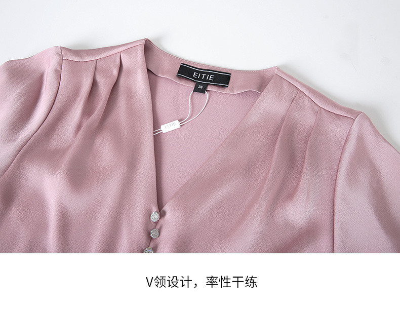 EITIE爱特爱气质V领高级感缎面直筒上衣显瘦通勤OL夏季新款B13124
