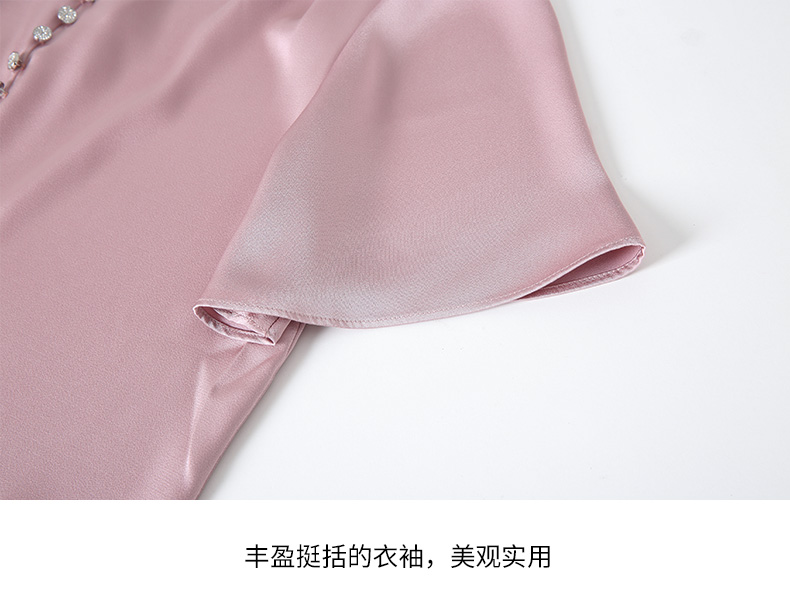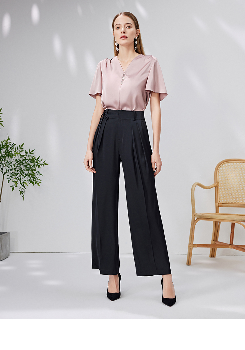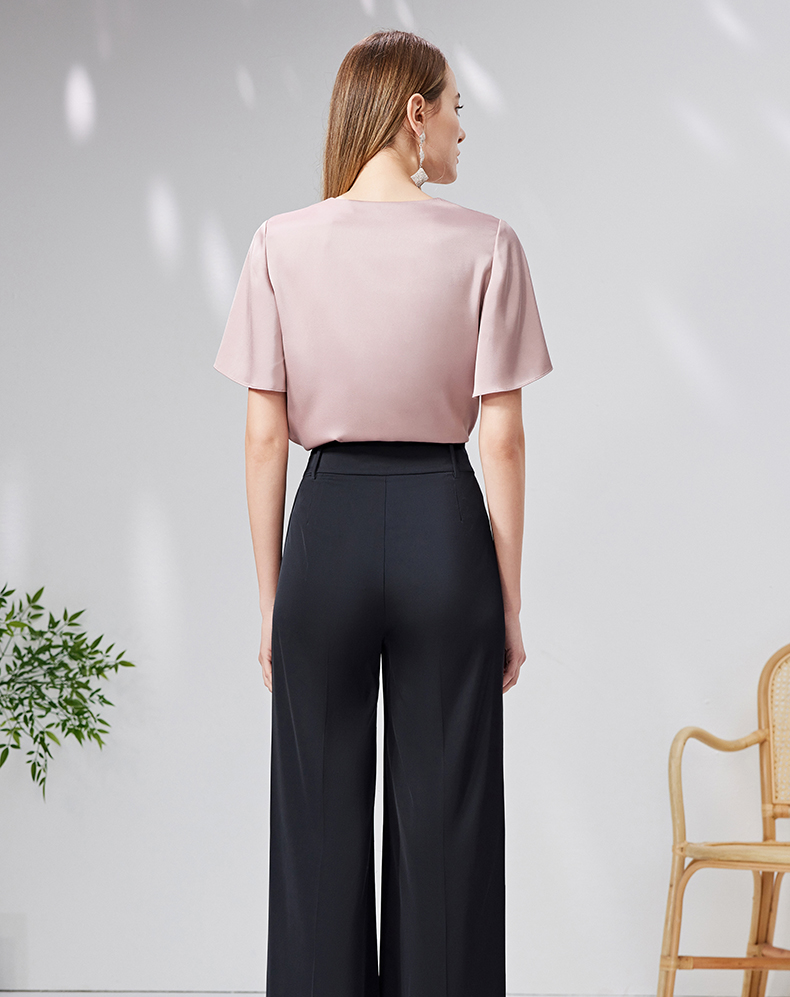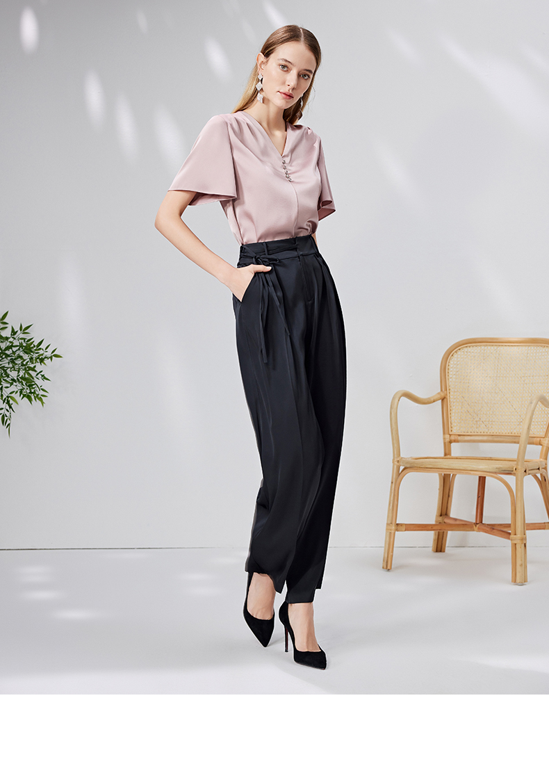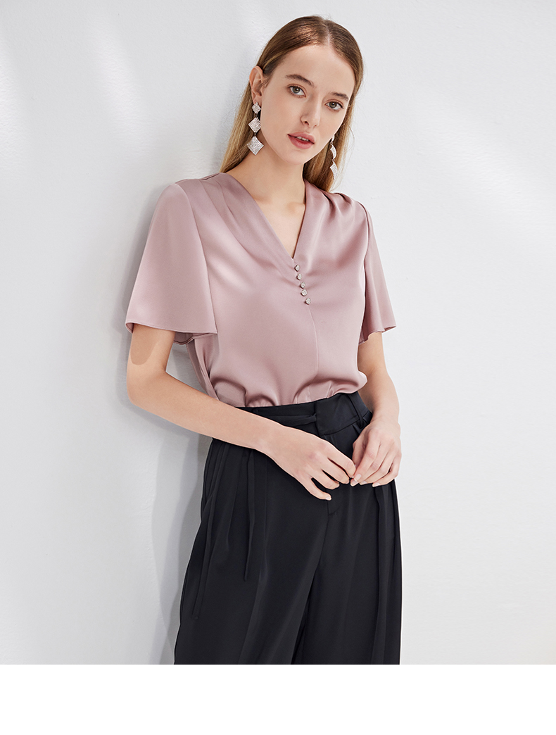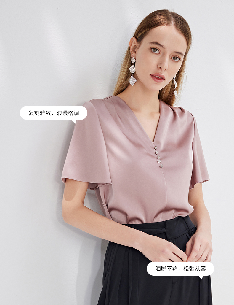 EITIE爱特爱气质V领高级感缎面直筒上衣显瘦通勤OL夏季新款B13124