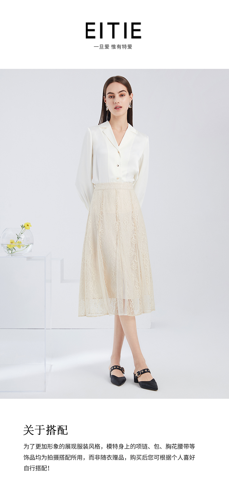 EITIE爱特爱夏季新款洋气法式优雅复古显瘦A版蕾丝镂空半身裙B2106704