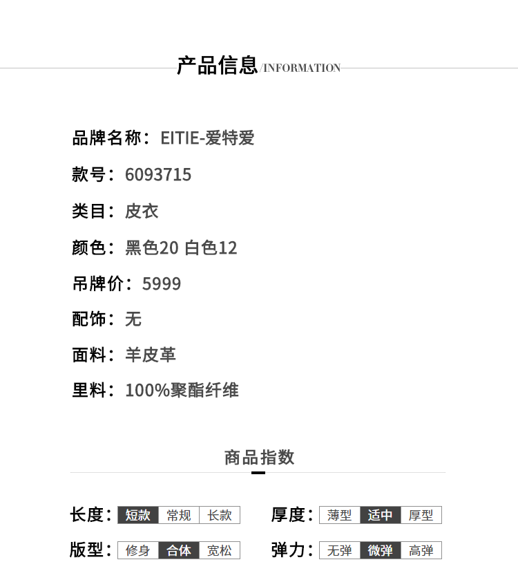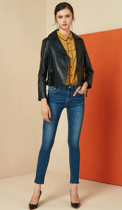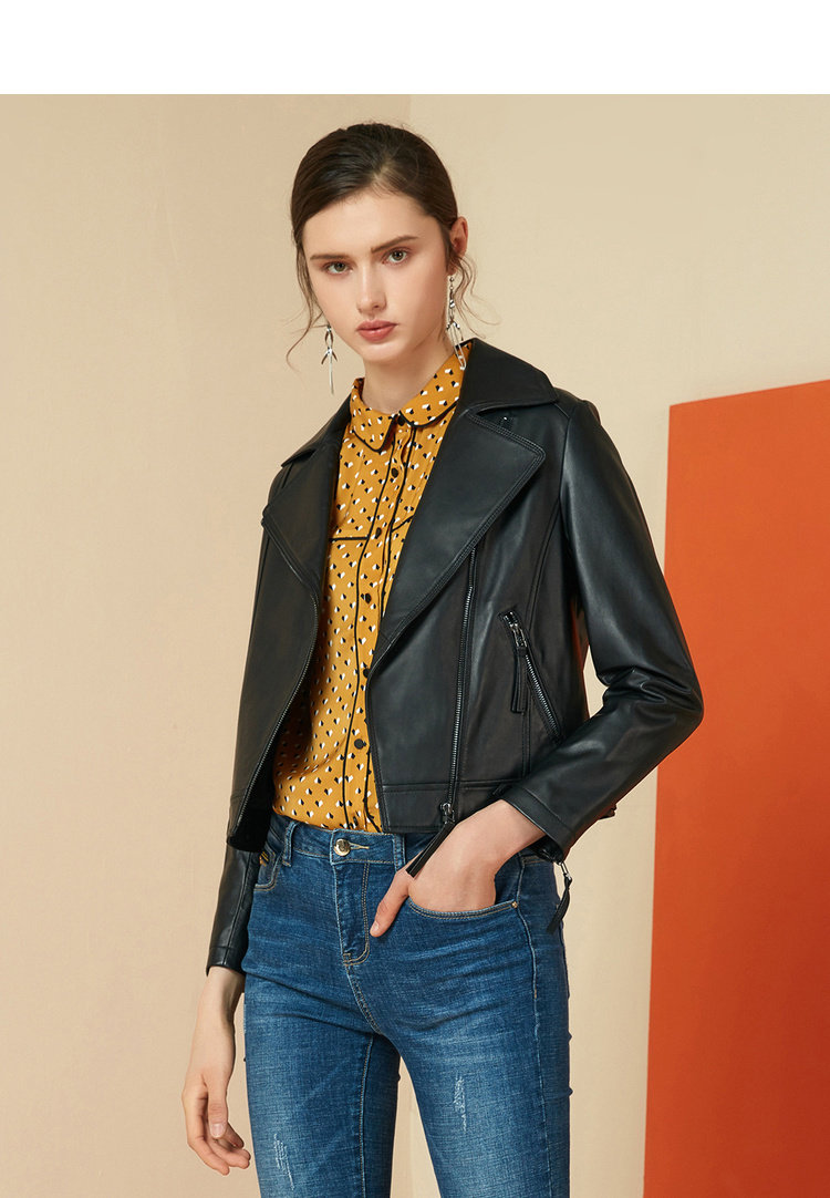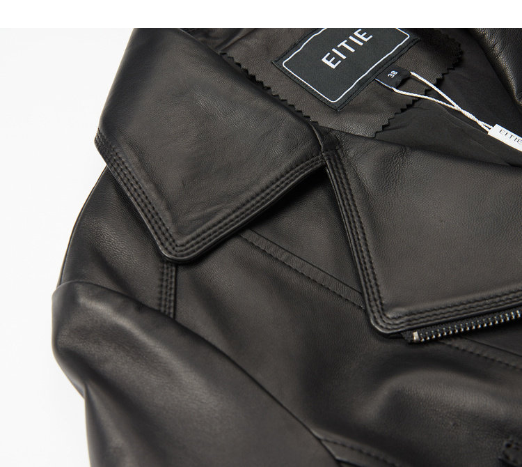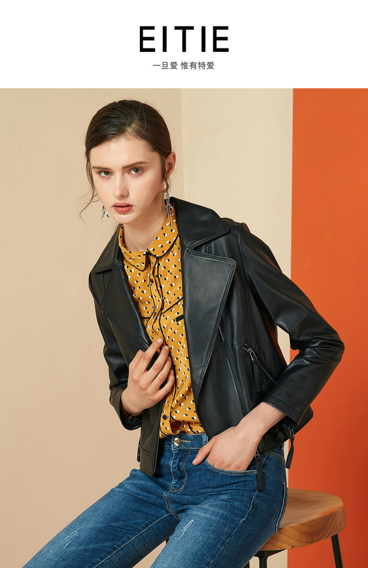 EITIE爱特爱女装秋冬新品帅气减龄机车翻领修身显瘦短款皮衣6093715