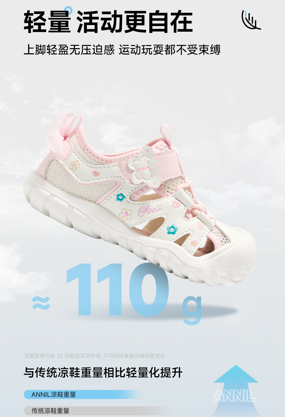 ANNIL/安奈儿童鞋女童包头凉鞋镂空休闲鞋软底轻便防踢沙滩鞋HG6206814