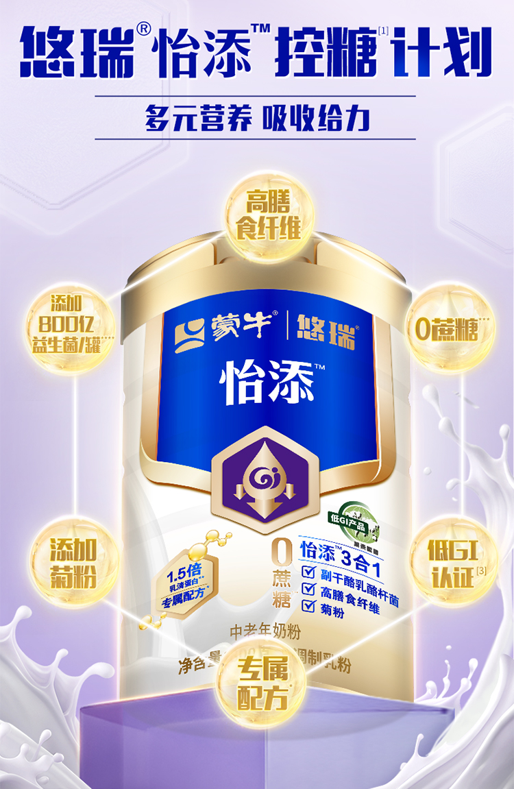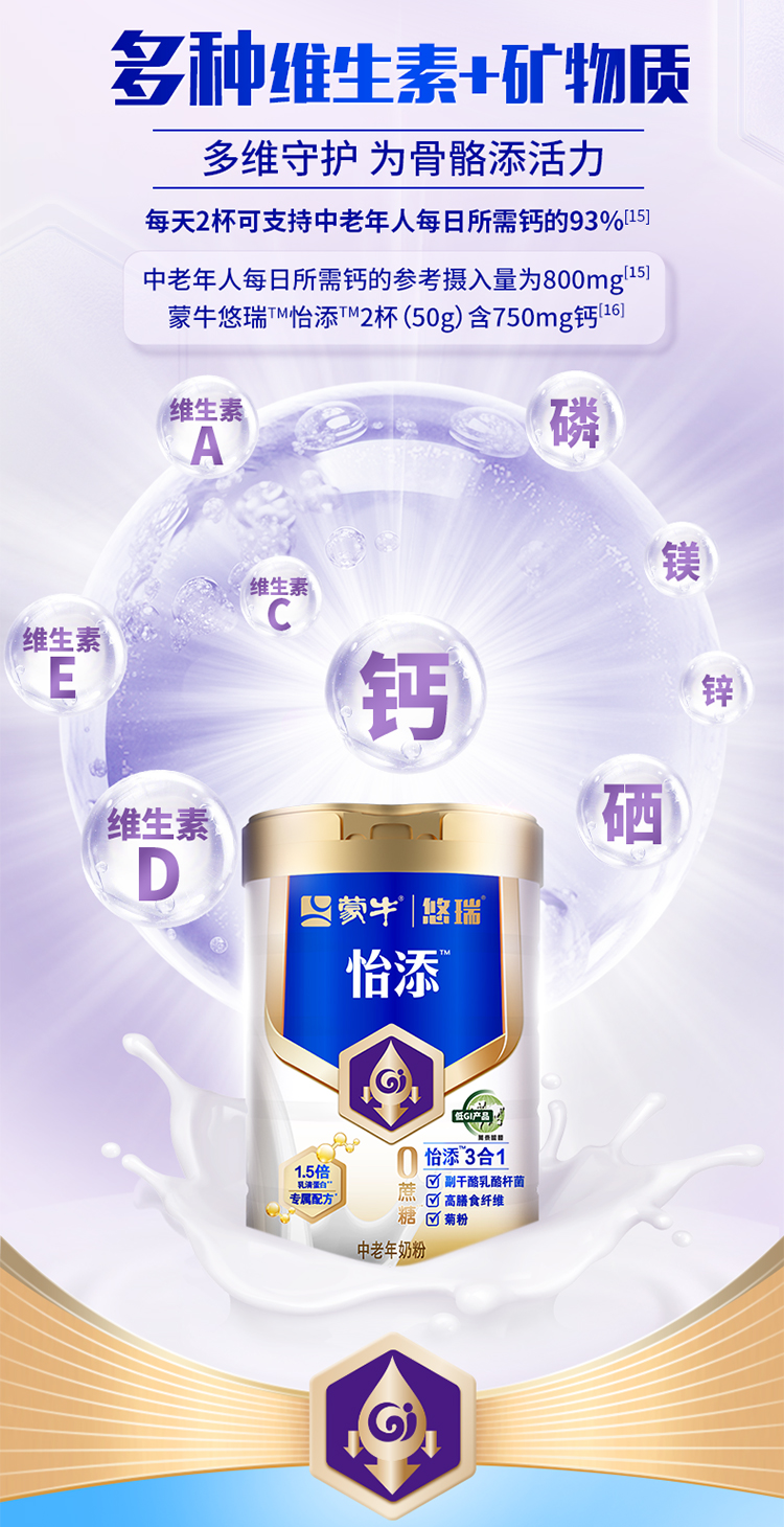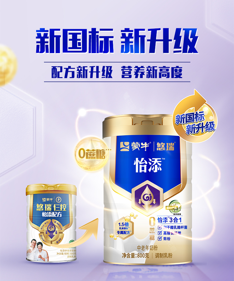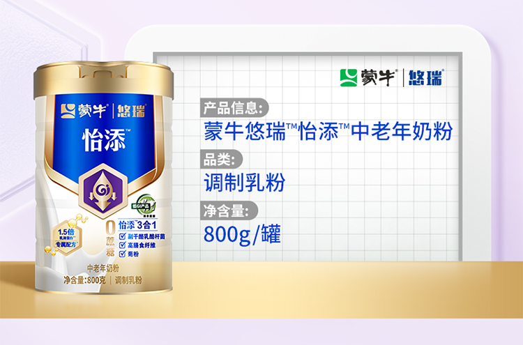 【中粮专拍】蒙牛悠瑞怡添中老年奶粉800g(新国标)