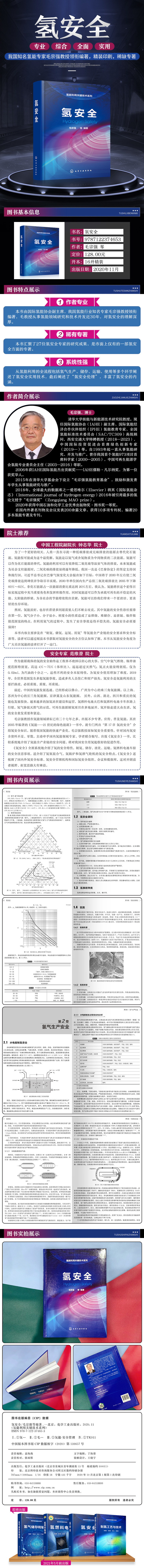 309)”主任委员和“国际标准化组织氢能标准技术委员会(ISO/TC197)”副主席之后,便萌生编著中文“氢安全”书,让更多的人们了解氢安全,安全使用氢能。受化学工业出版社委托,笔者邀请了一批我国产业界和学术界的氢能专家,从各自熟悉的层面撰写氢安全知识,呈现给我国公众,以期帮助读者更多地了解氢安全。