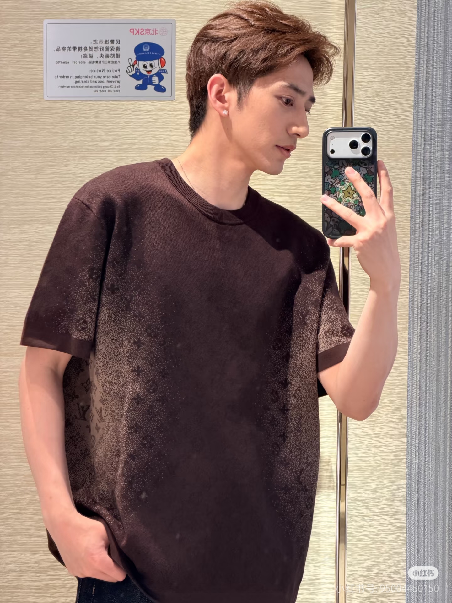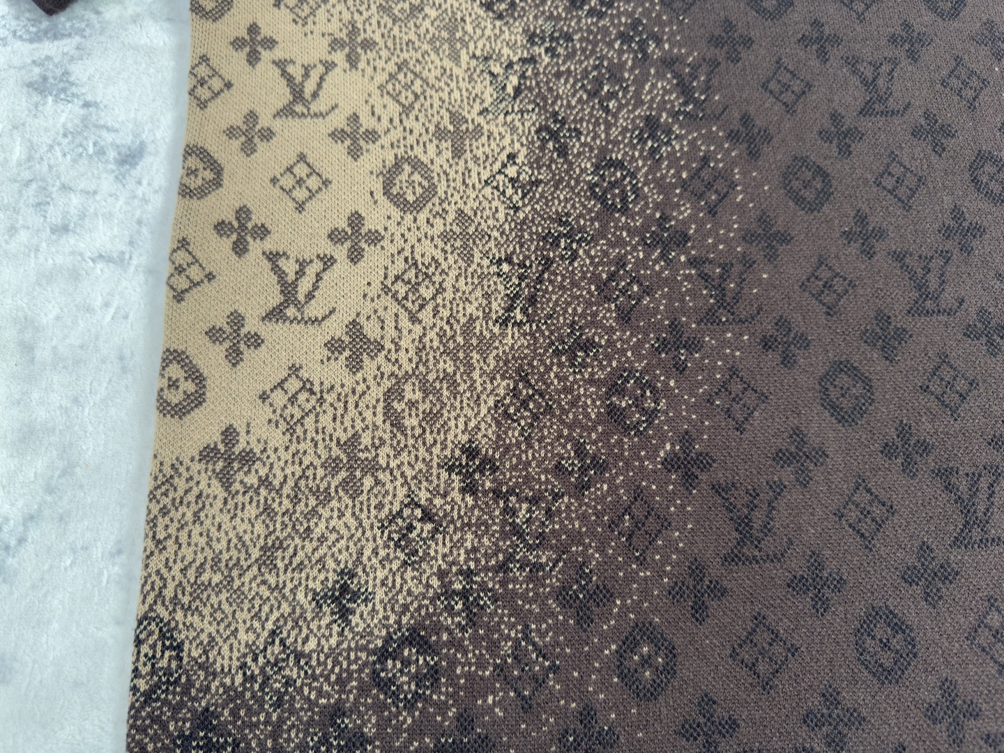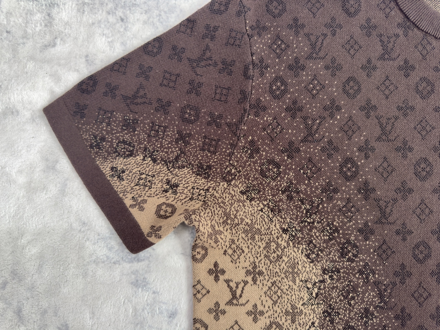 这件衣服就是看暗花,可以拿我们的和柜子和别人家的对比,不打强光自然光线下深色出的暗花隐藏效果
