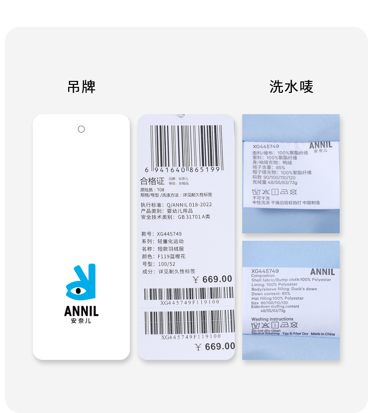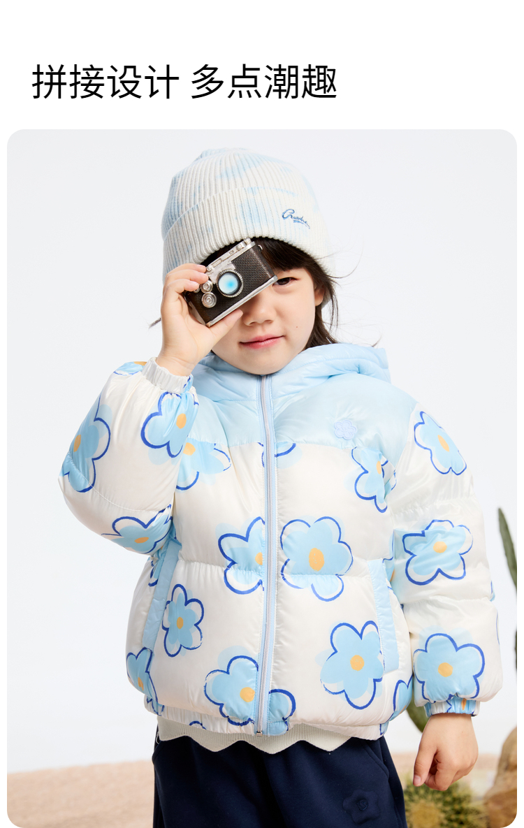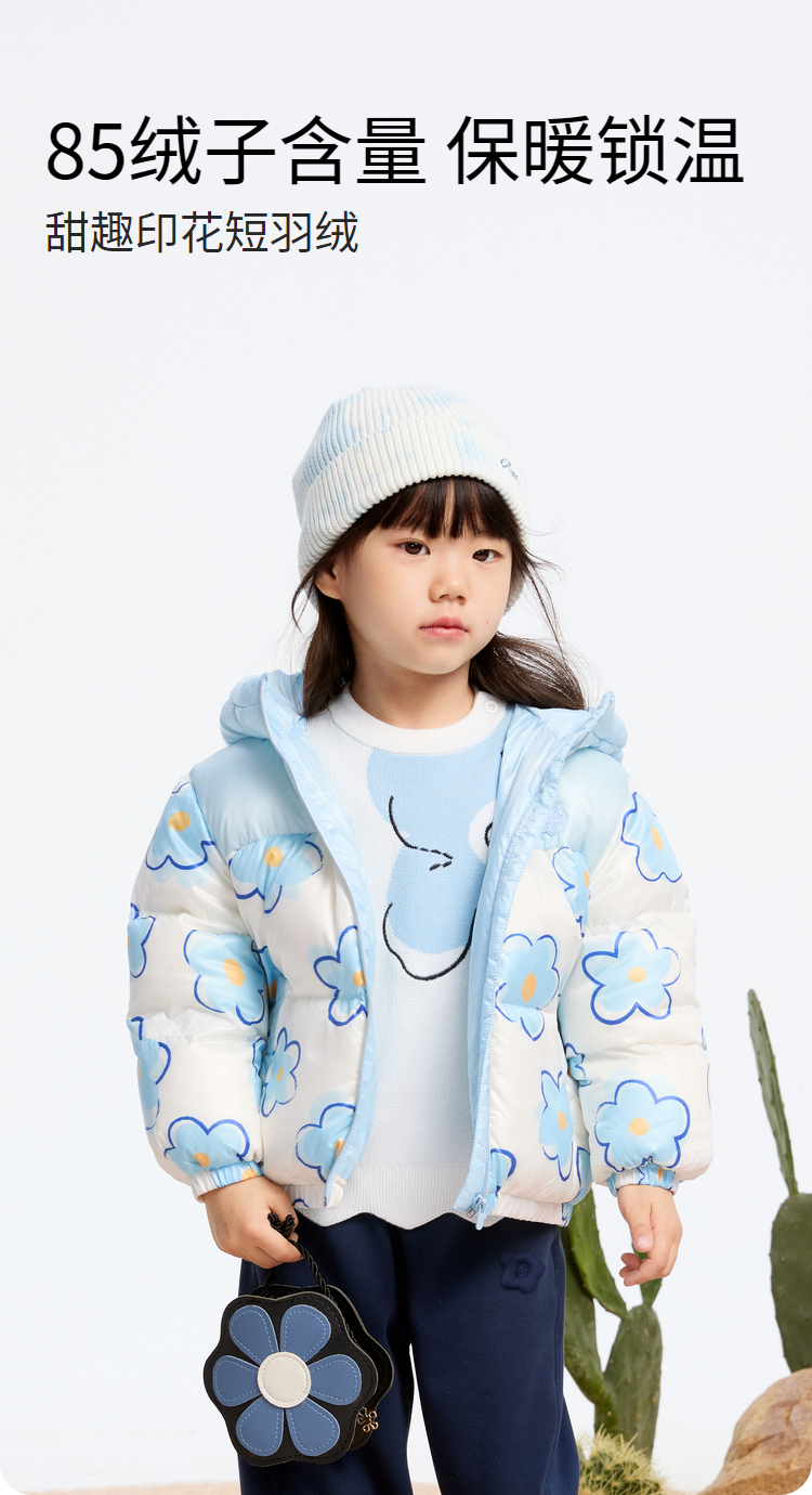 【轻暖0~10℃】女童印花短款羽绒外套冬季新款安奈儿童装实体店同款XG445749