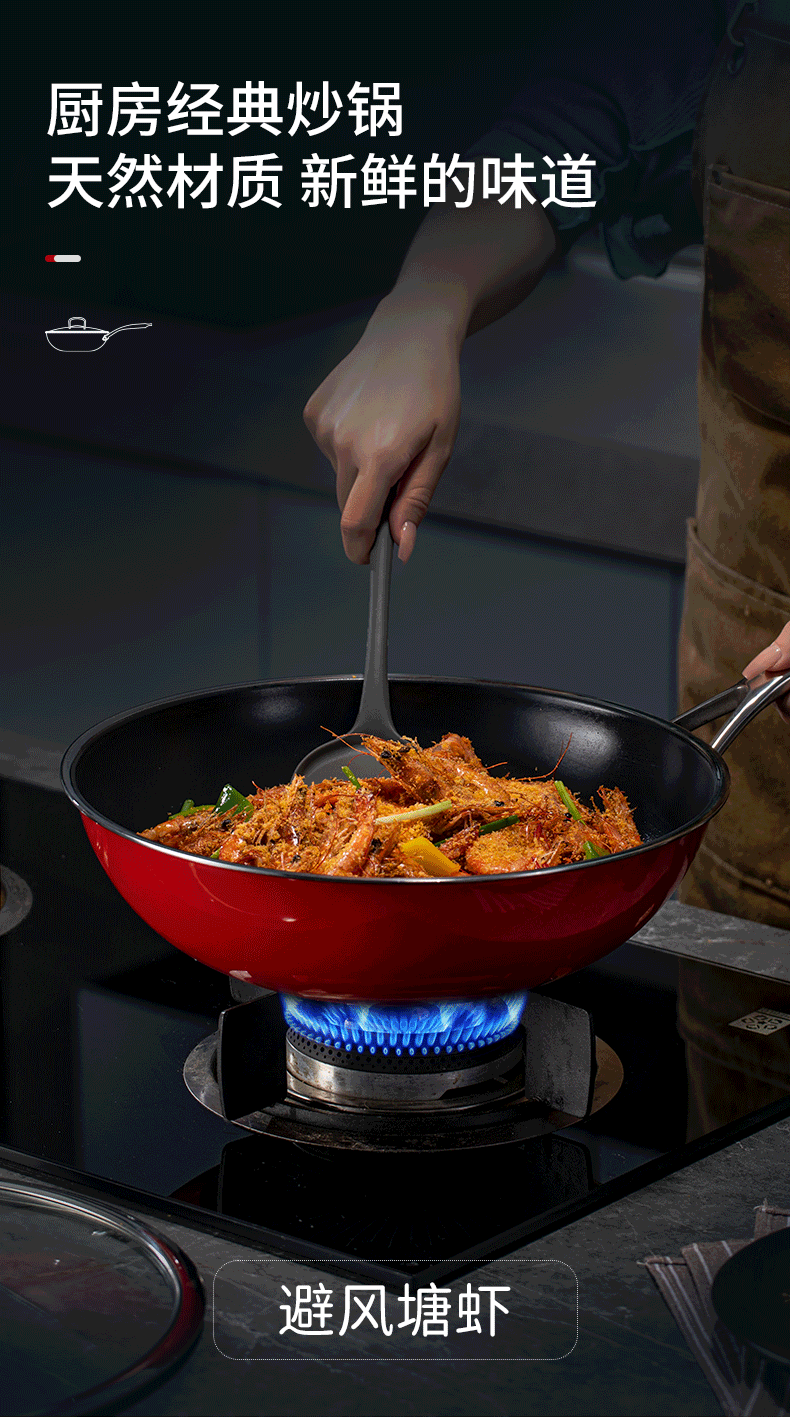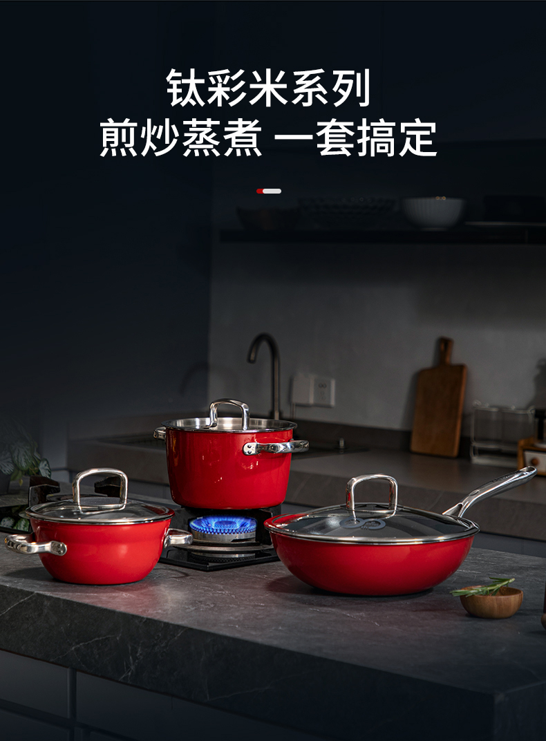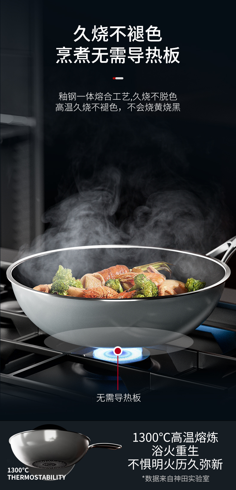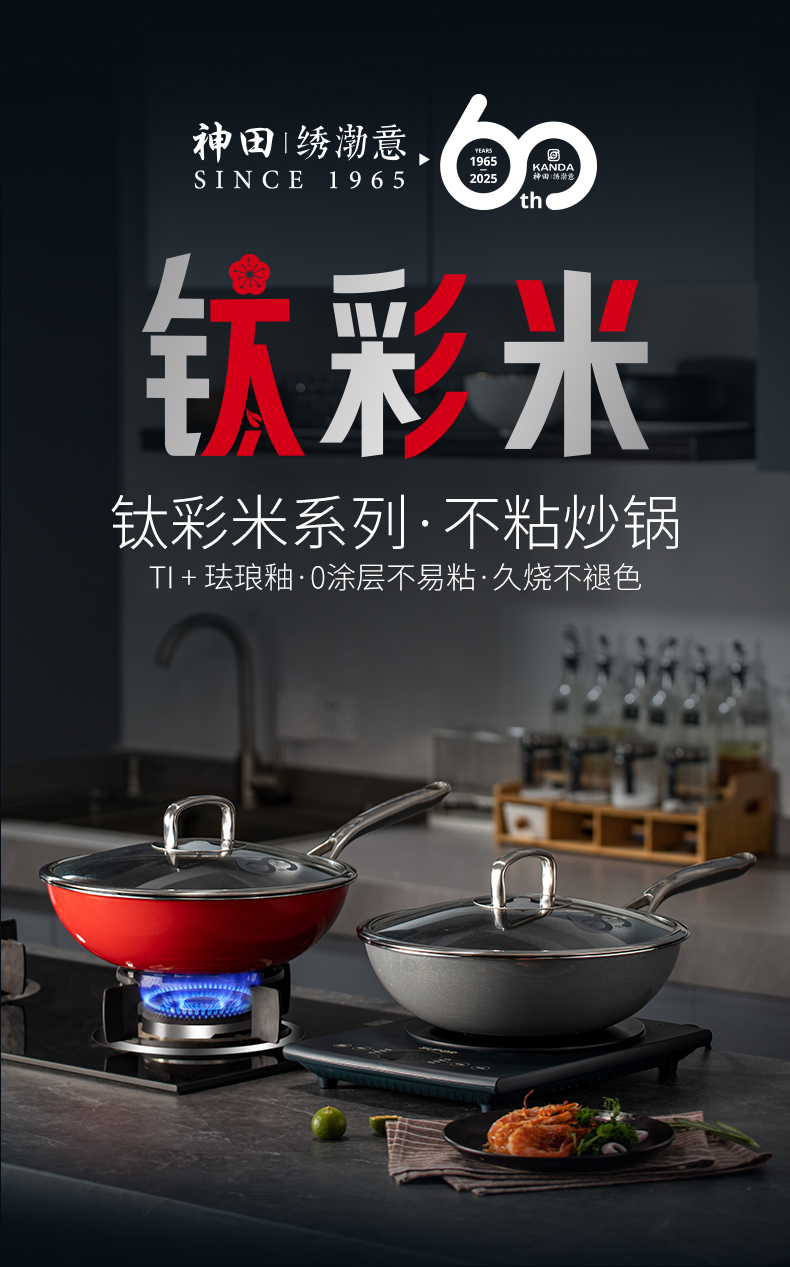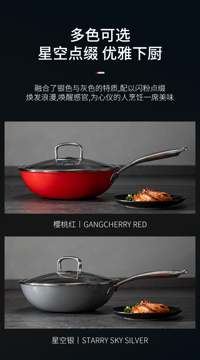 神田高端线珐琅釉 钛彩米系列0涂层不粘炒锅30cm/32cm,久烧不黑,质保30年