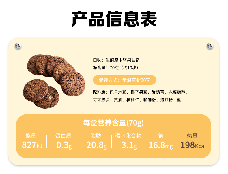糖学友生酮食品主食无糖精摩卡坚果饼干低碳水饮食无麸质70克每盒