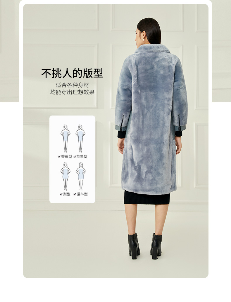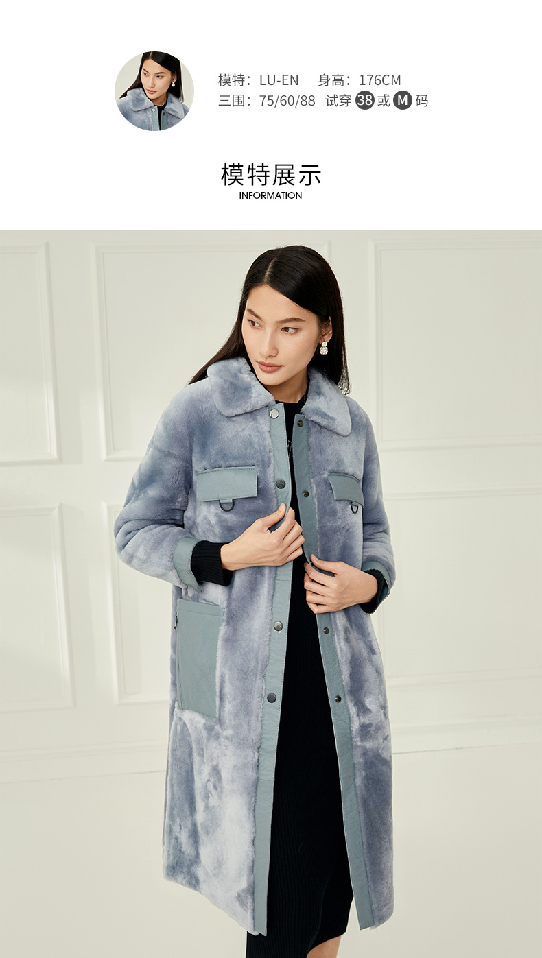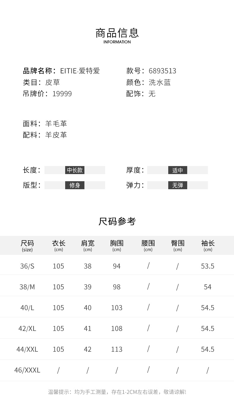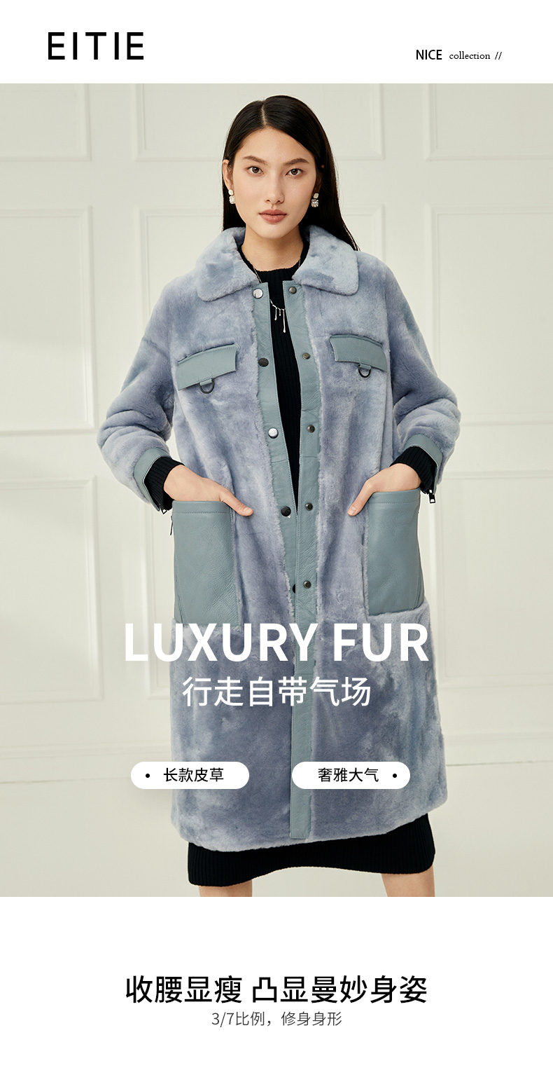 EITIE爱特爱冬季新款气质修身羊毛羊皮革外套大衣皮衣6893513