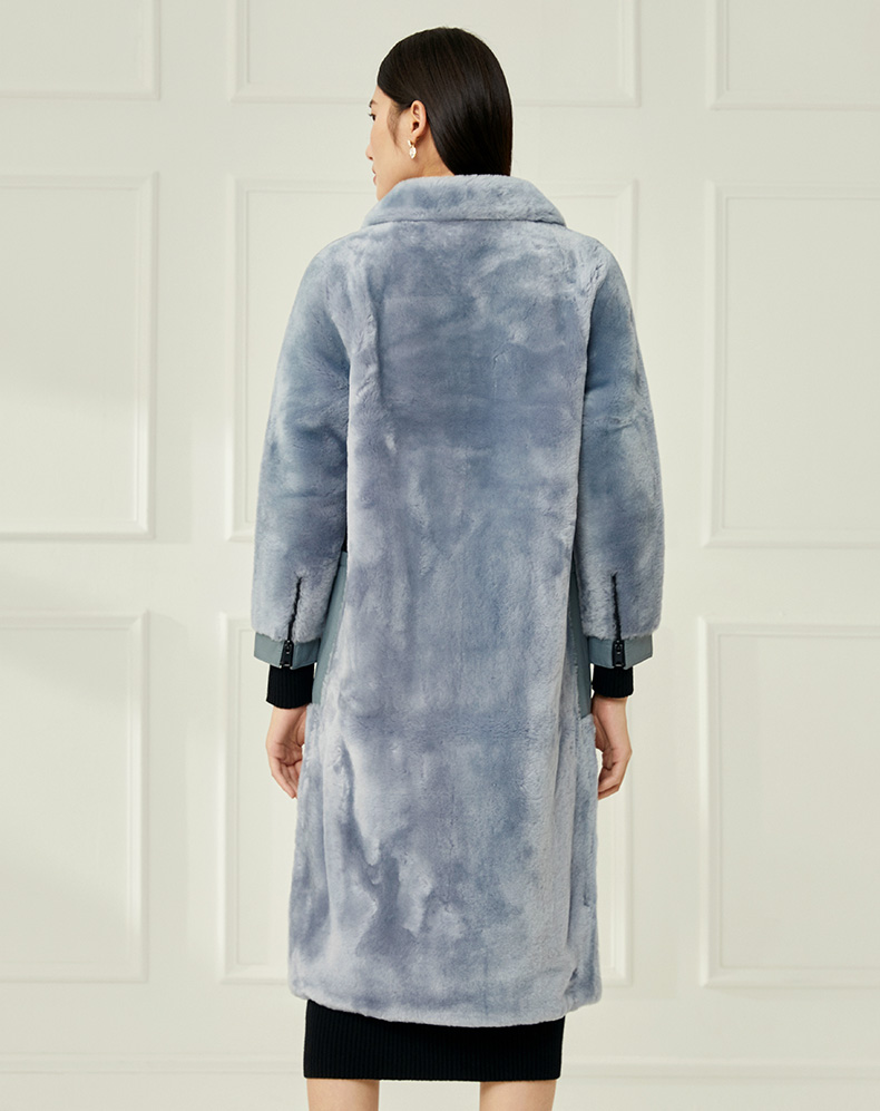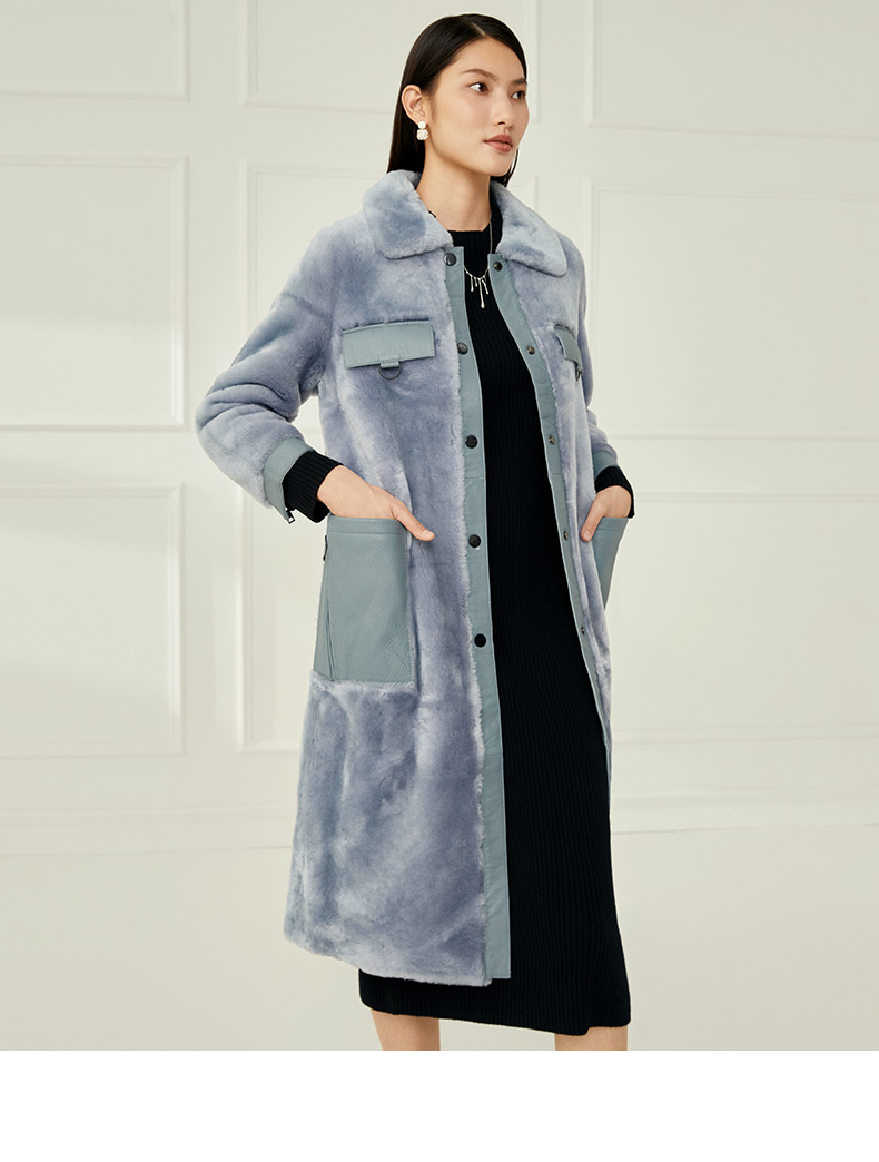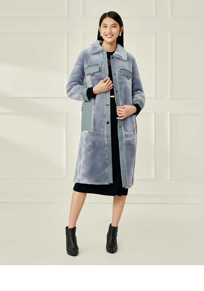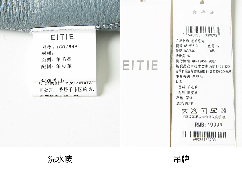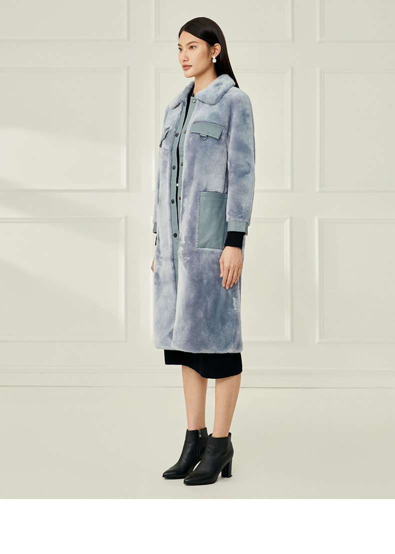 EITIE爱特爱冬季新款气质修身羊毛羊皮革外套大衣皮衣6893513