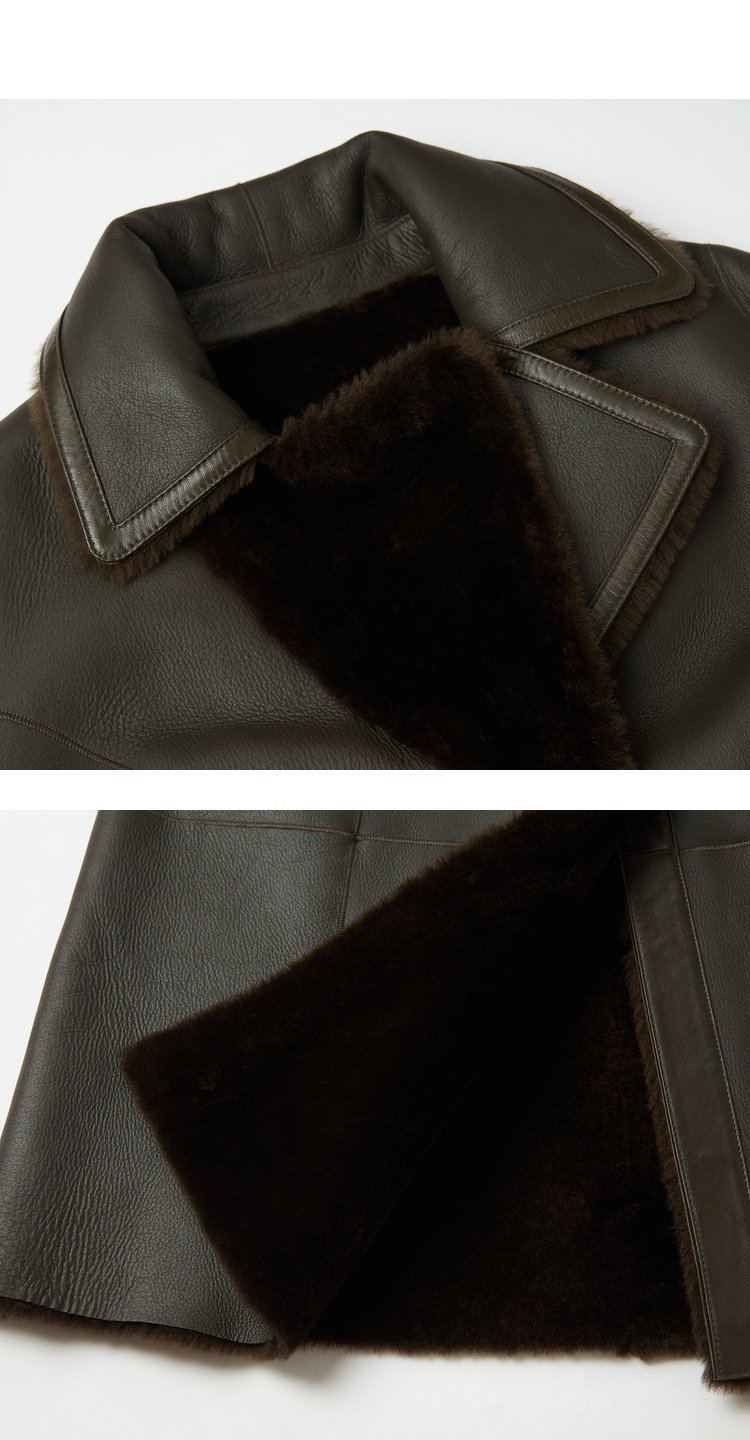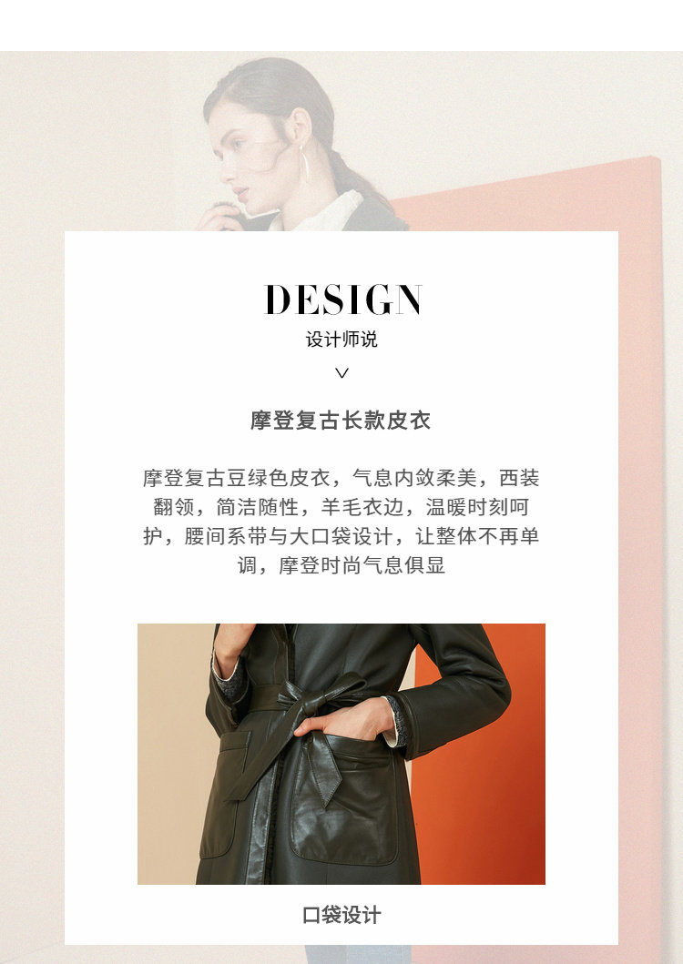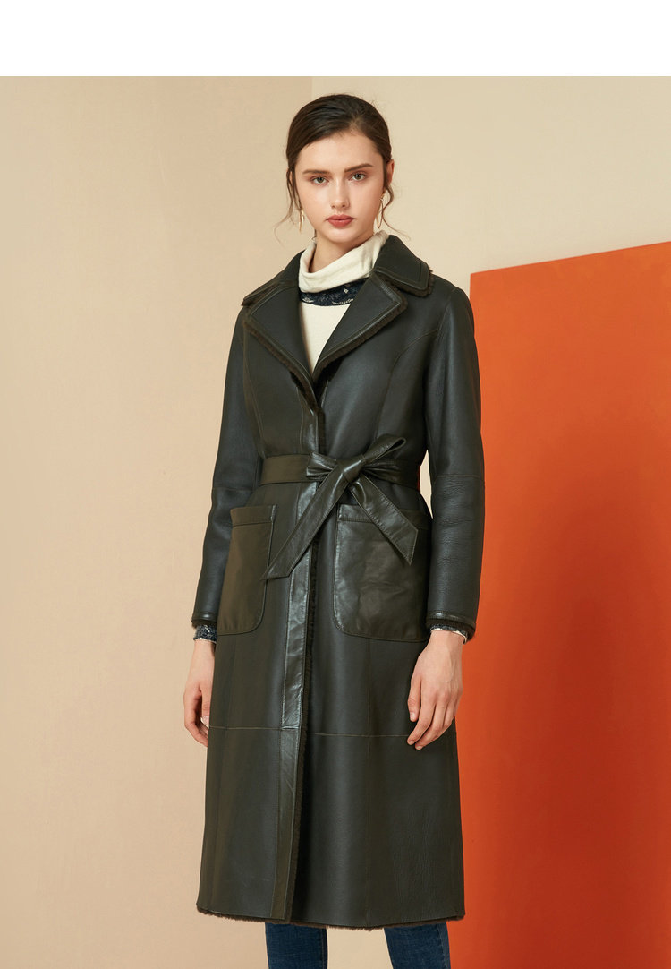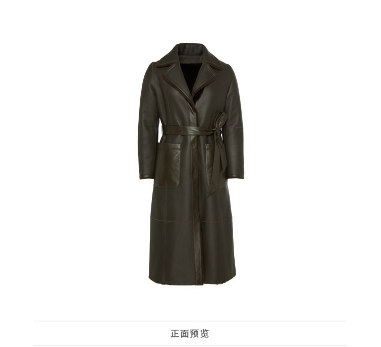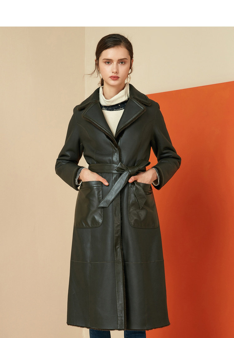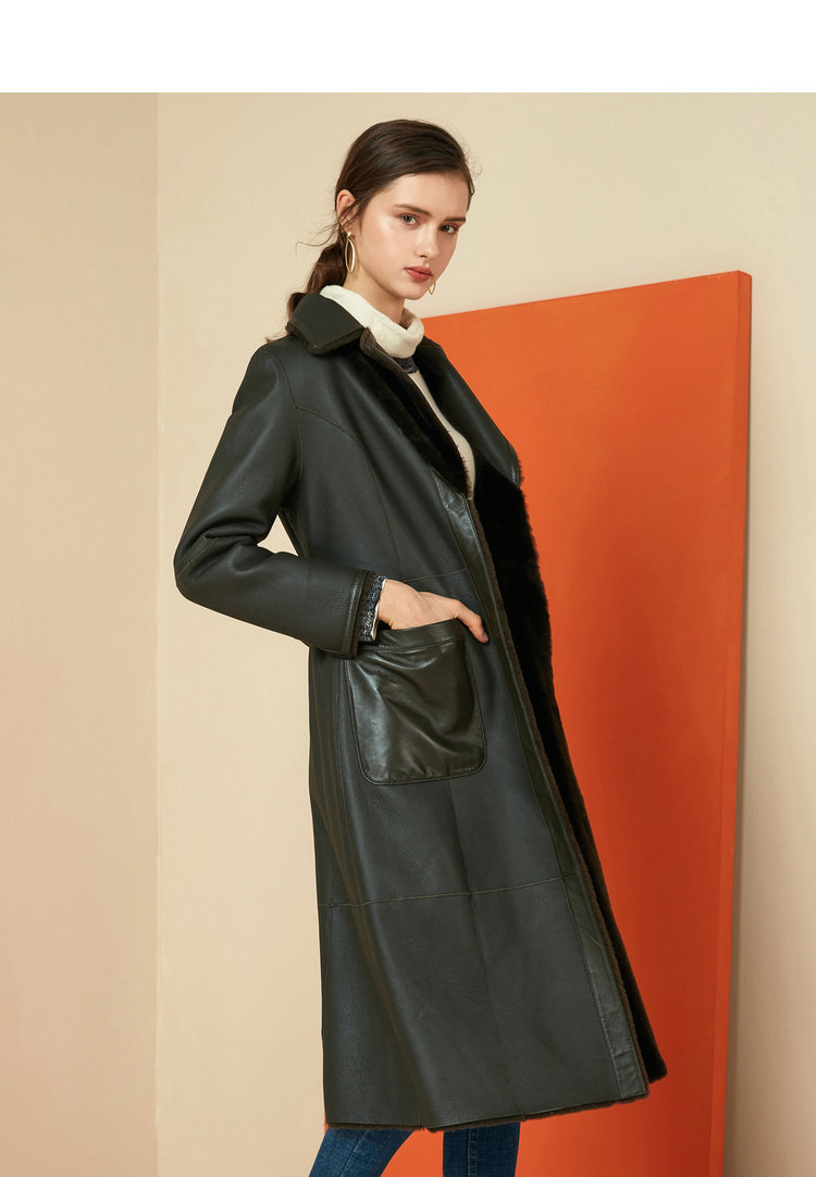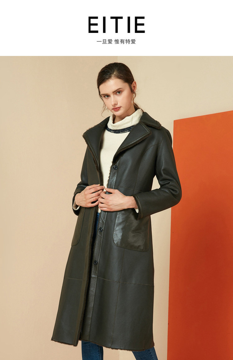 EITIE爱特爱冬季时尚复古翻领皮草外套女中长款羊皮大衣6093709