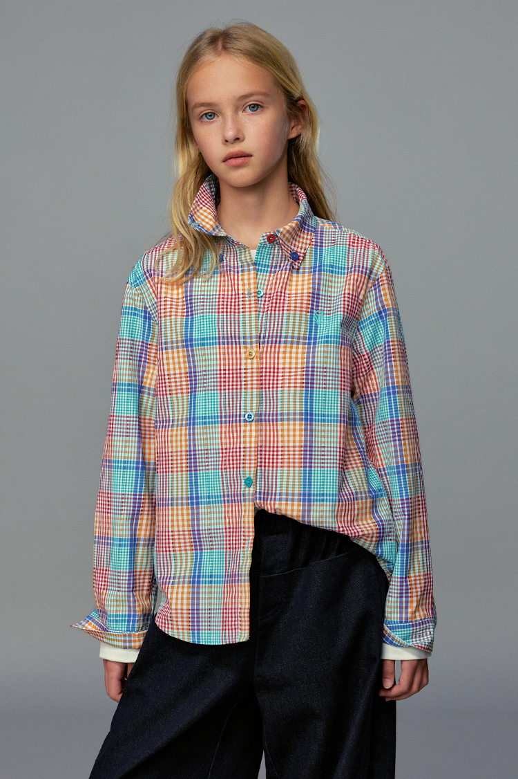 💕春3童装彩格绣花长袖衬衫