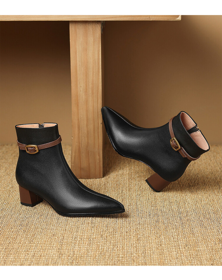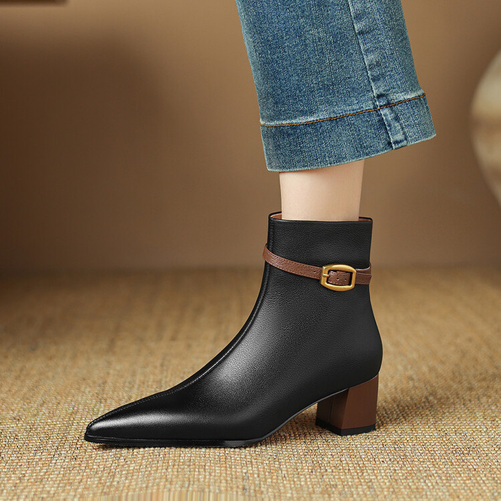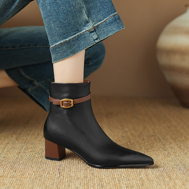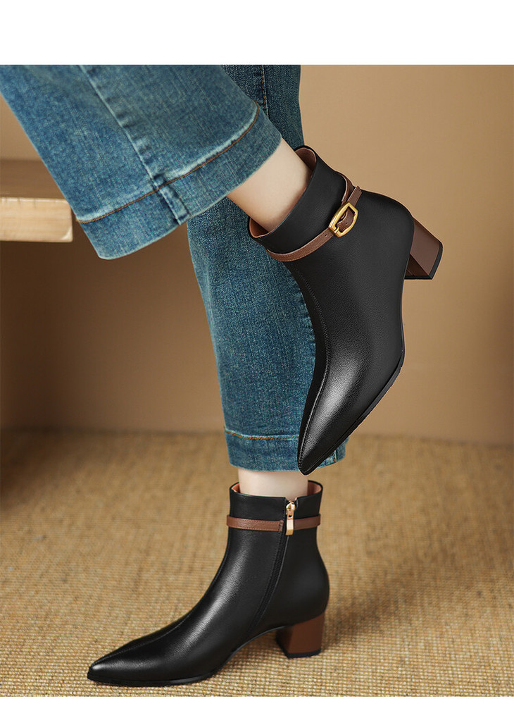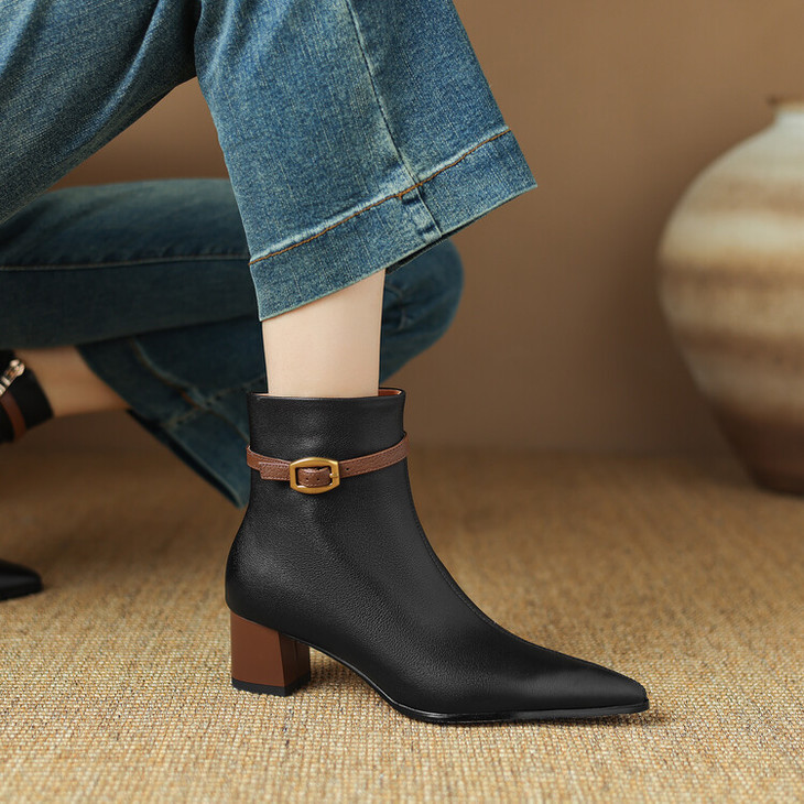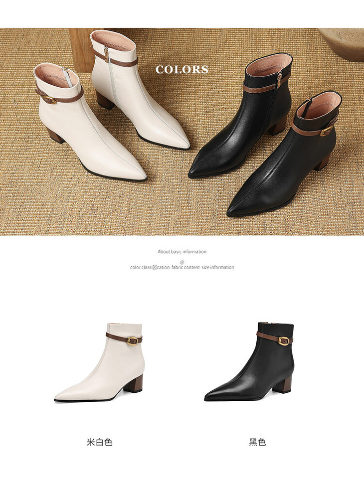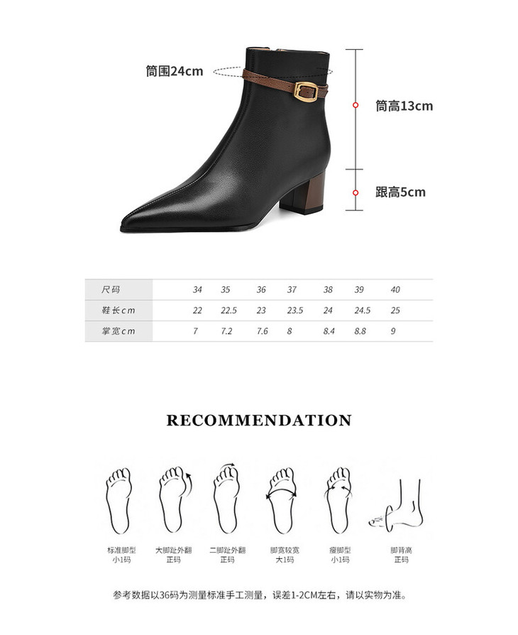 【预售5天】欧美时尚秋冬季新款尖头高跟粗跟短靴女侧拉链黑色及踝靴LD&6937