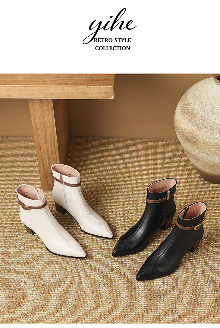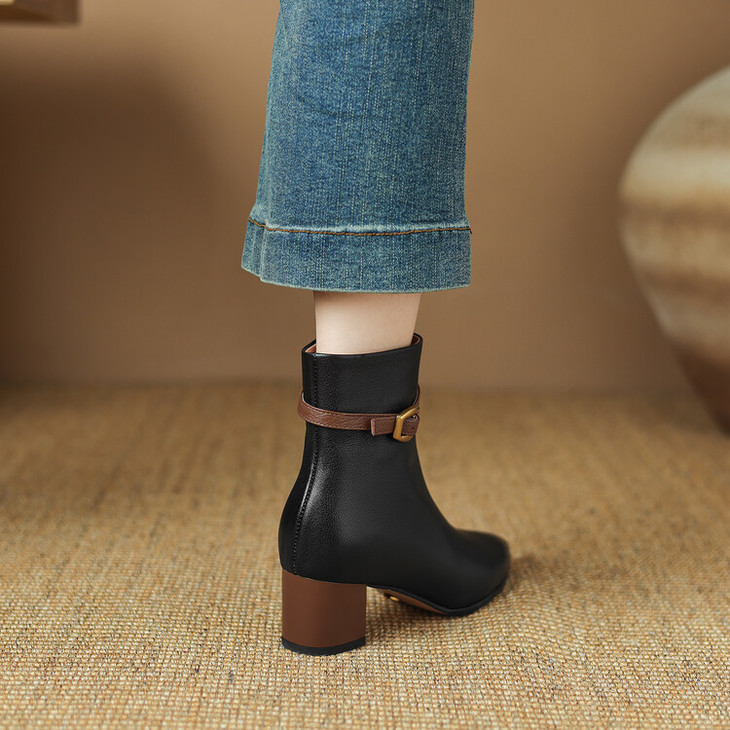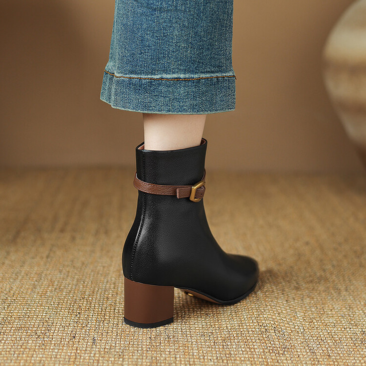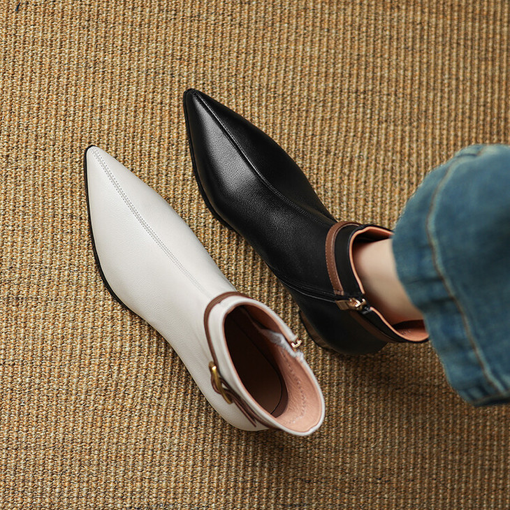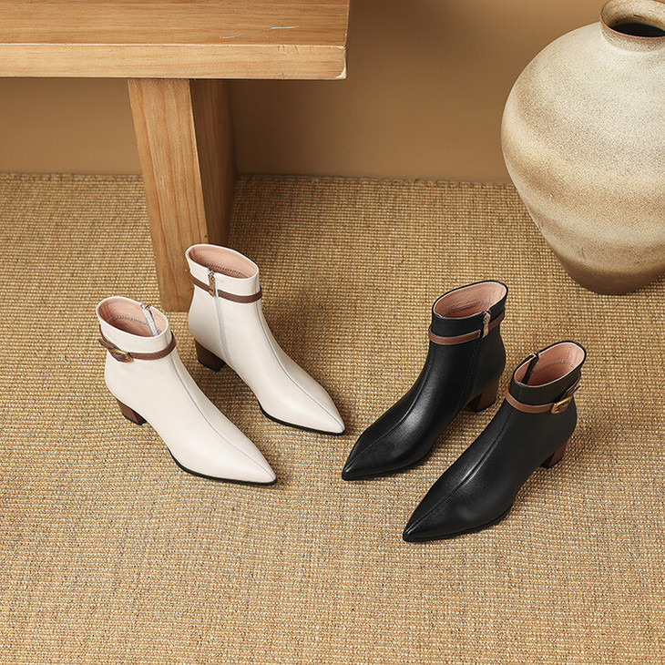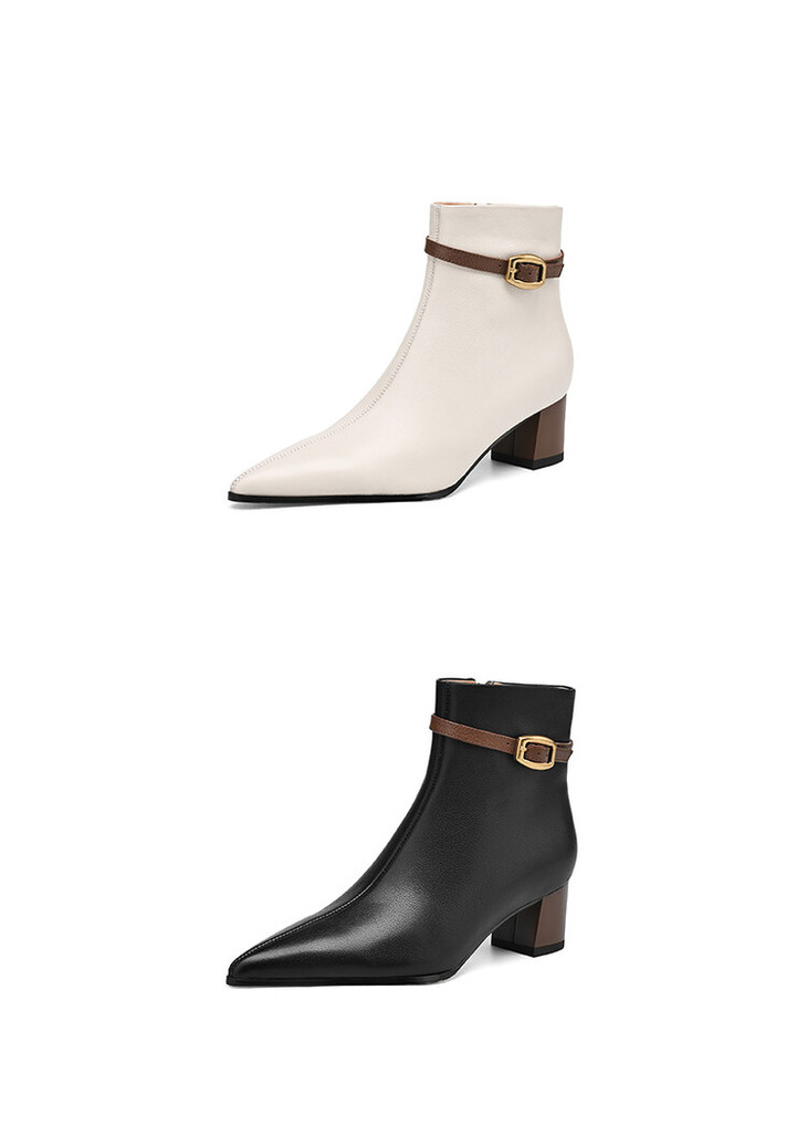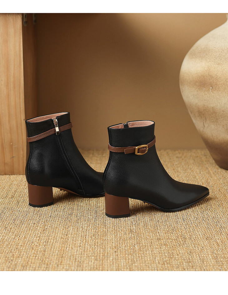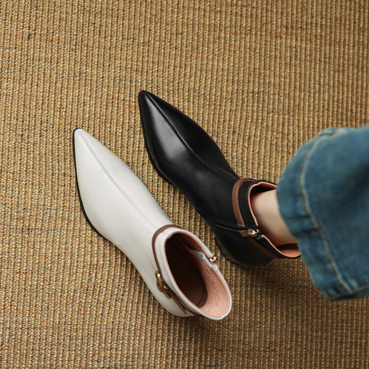 【预售5天】欧美时尚秋冬季新款尖头高跟粗跟短靴女侧拉链黑色及踝靴LD&6937