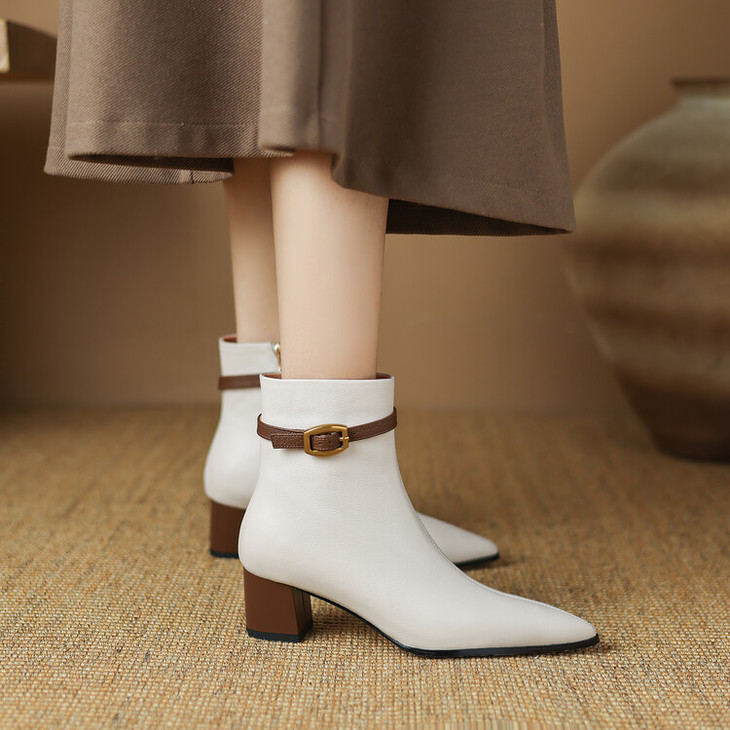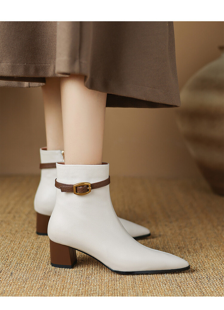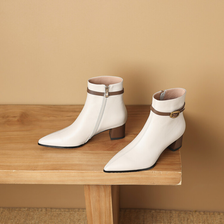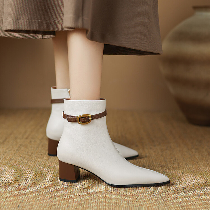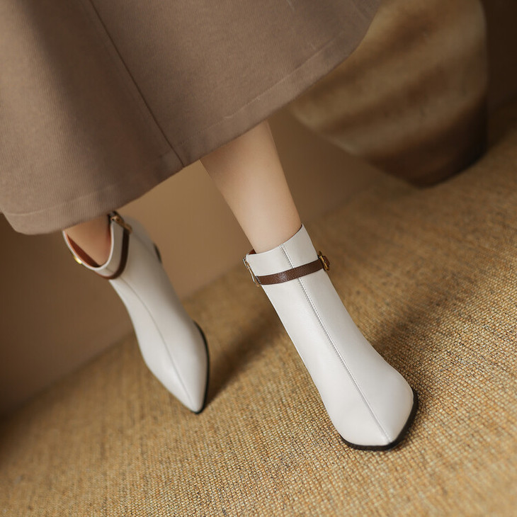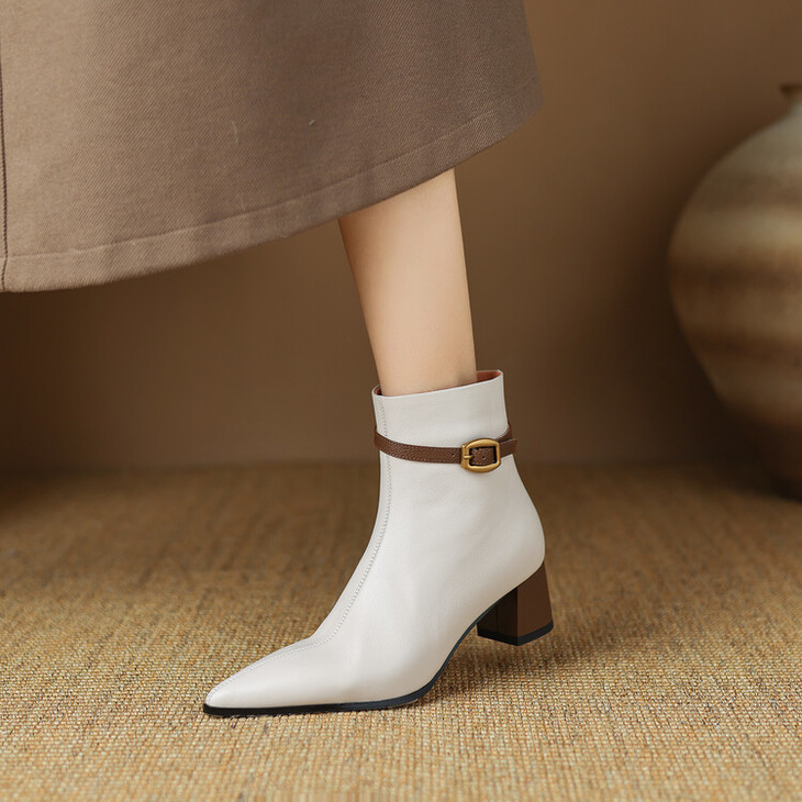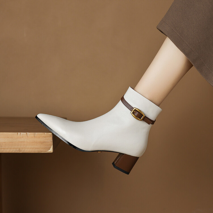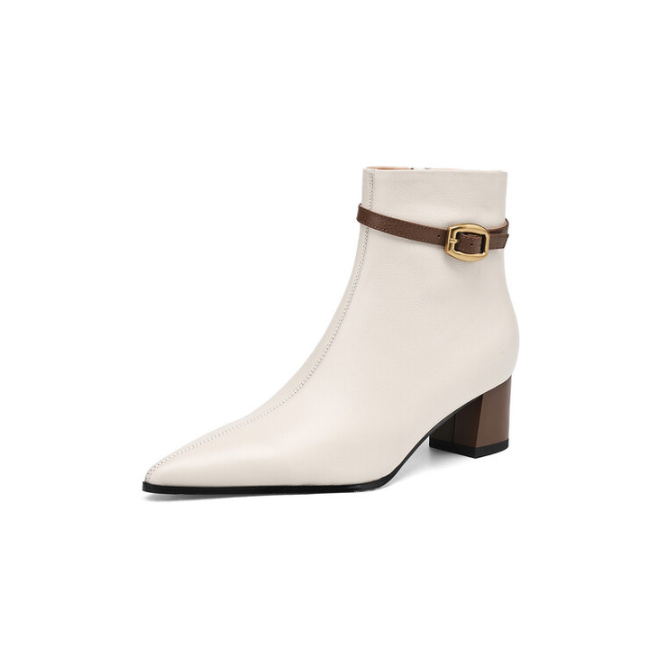 【预售5天】欧美时尚秋冬季新款尖头高跟粗跟短靴女侧拉链黑色及踝靴LD&6937