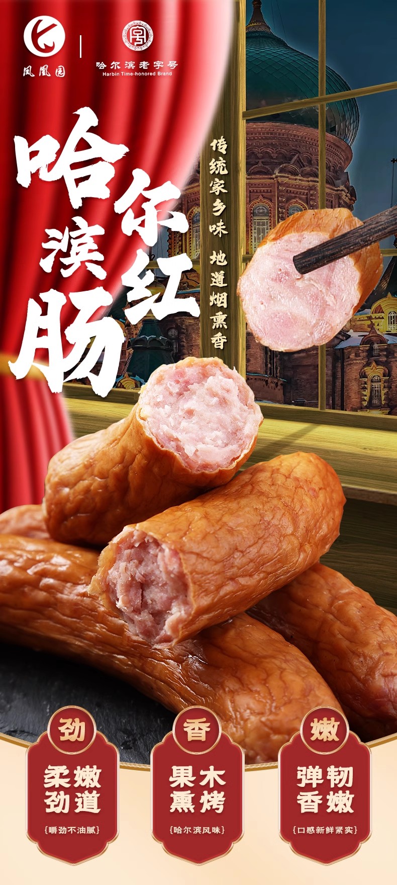 凤凰园年货礼盒 哈尔滨老字号 果木熏烤 现做现发 哈尔滨红肠500克+松仁小肚300g*2袋+风味干肠250g+老式烧鸡550g