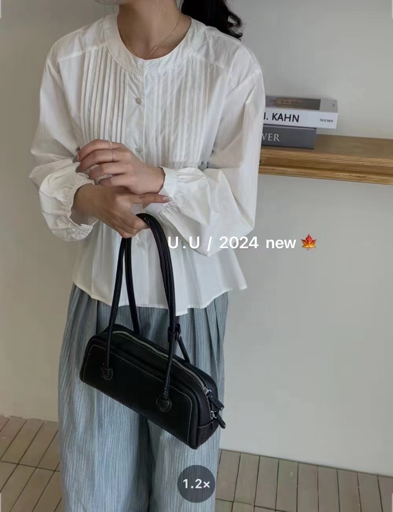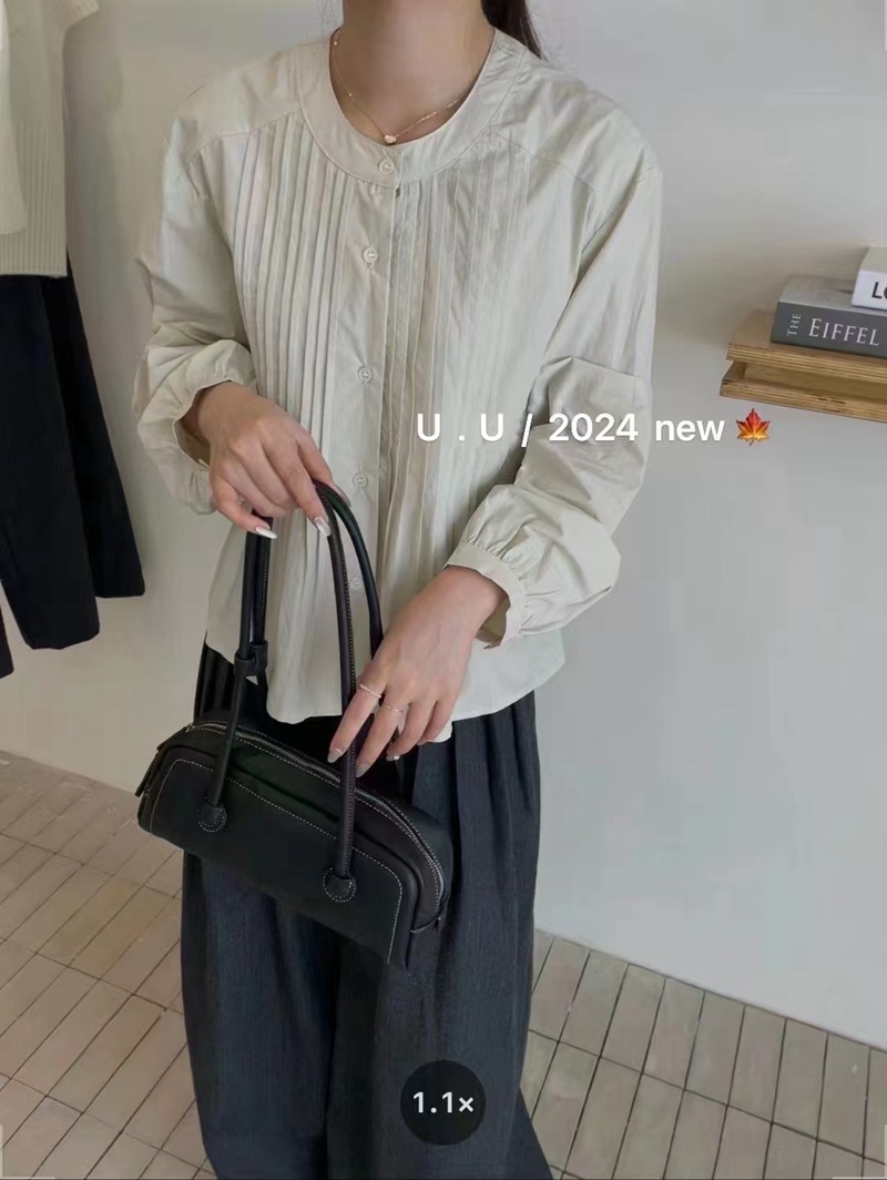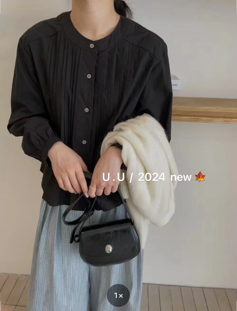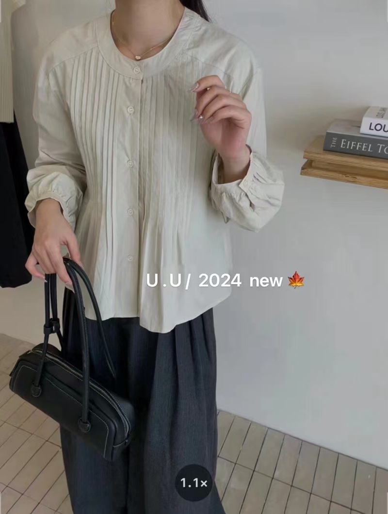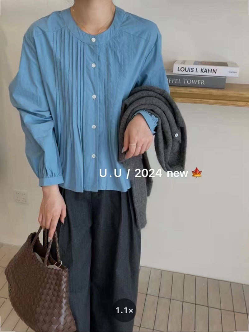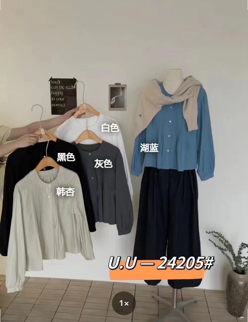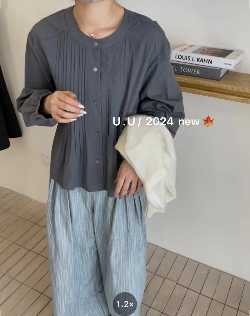 【特惠不退换】韩国棉领口单排扣设计长袖衬衫上衣 FLW-UJ4HC124205【24205#】