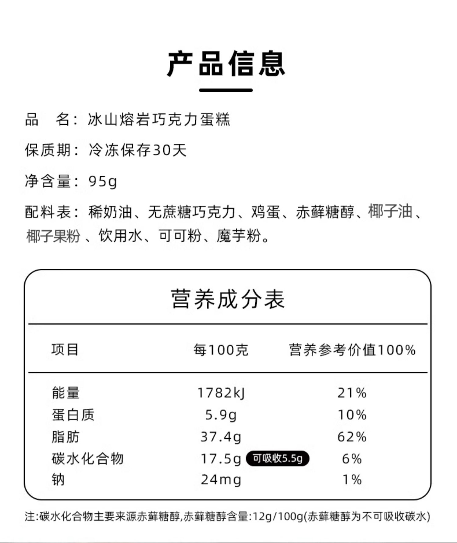 冰山熔岩巧克力蛋糕丨冰山熔岩巧克力爆浆夹心可可蛋糕无蔗糖零食下午茶网红甜品含鸡蛋无麸质 糖学友
