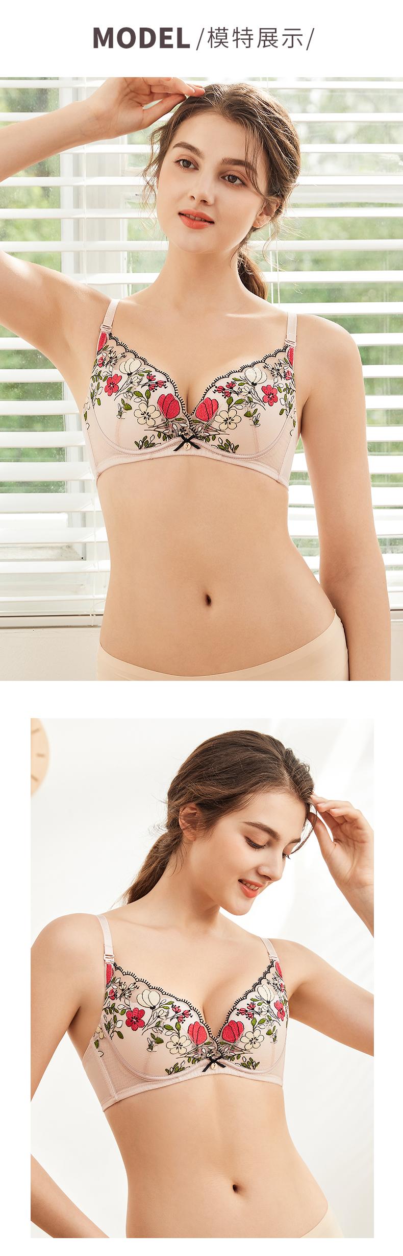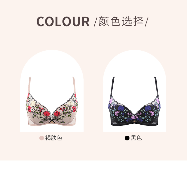 贝佳人新品3/4中厚杯女士内衣聚拢软钢圈抬托小胸显大刺绣文胸BW912051