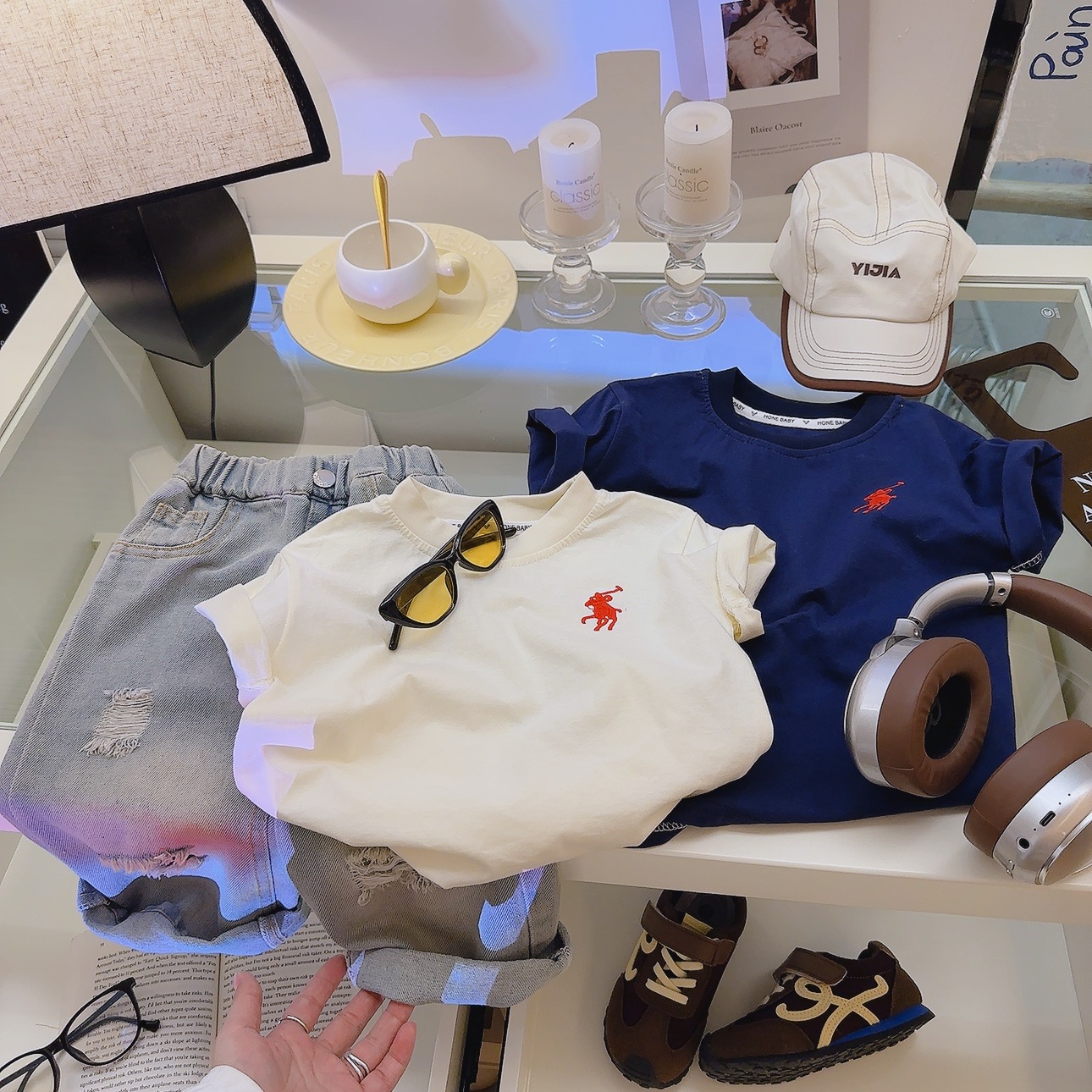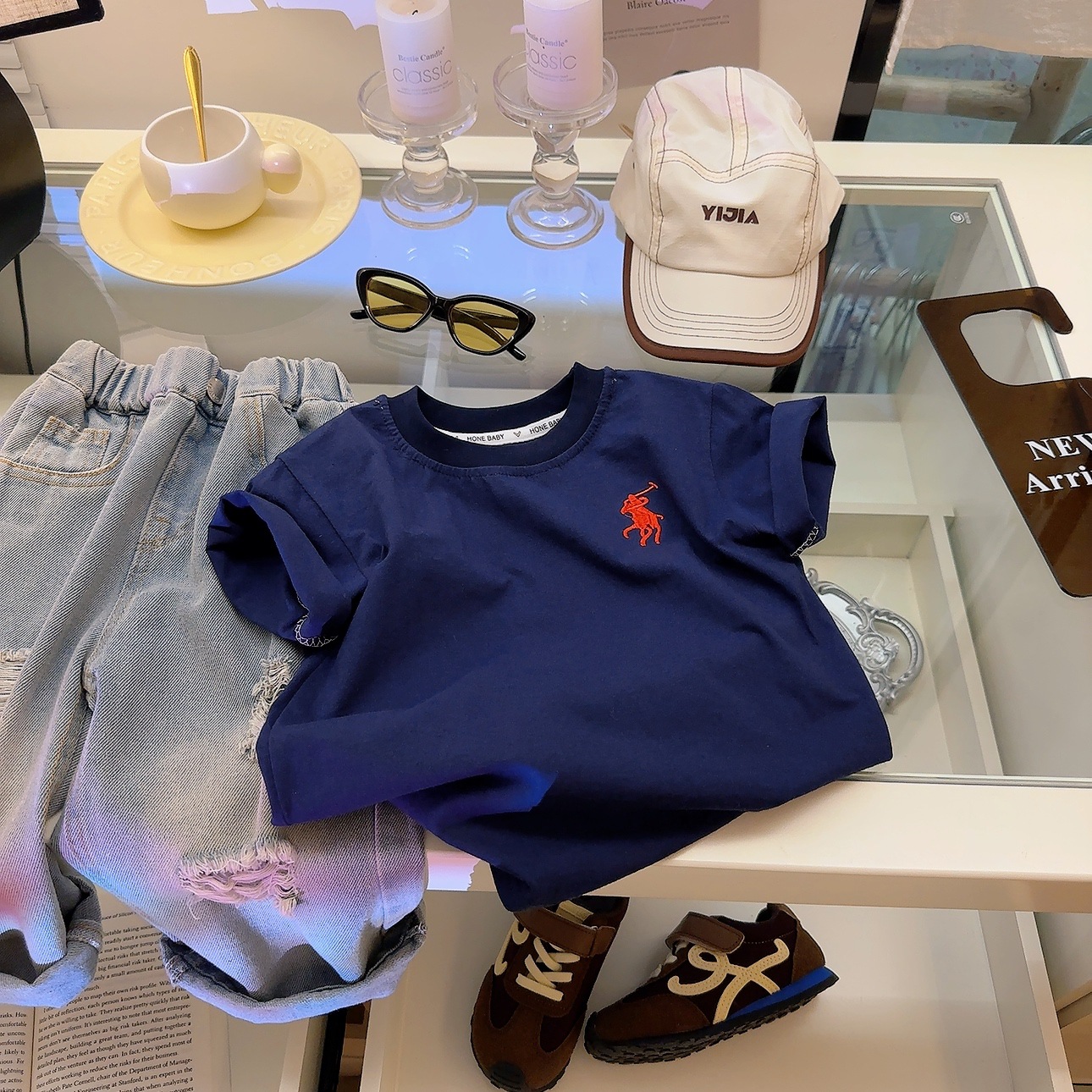 【时尚圆领设计,透气舒适】儿童夏季短袖T恤衫~男女童宝宝全棉 圆领套头半袖上衣 潮流童装-QQ