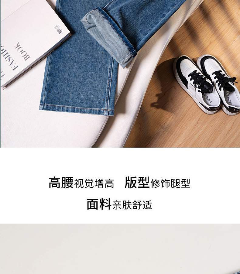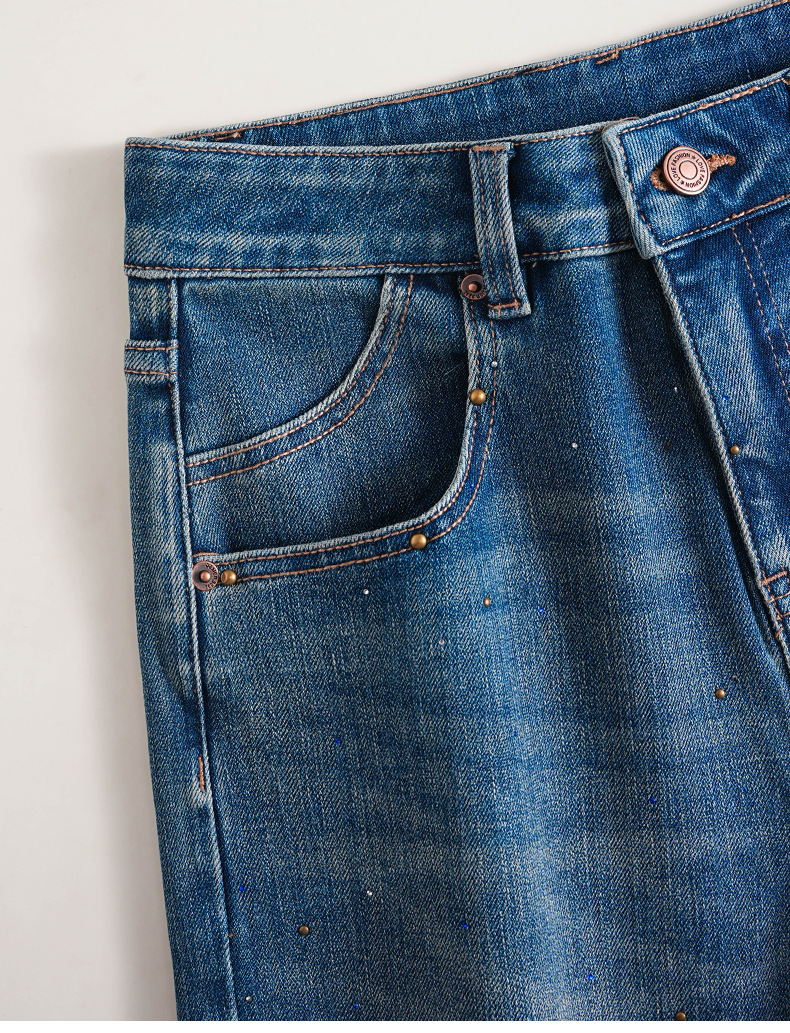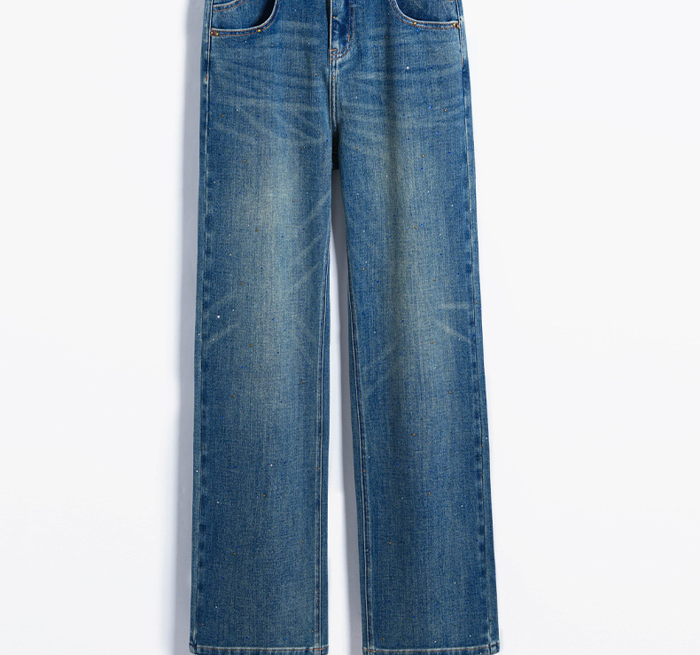 【自】全新升级【铂金会员183/天猫249/差价66】(02610) 洛诗琳重工设计感烫钻阔腿裤2025春季新款复古蓝直筒牛仔裤
