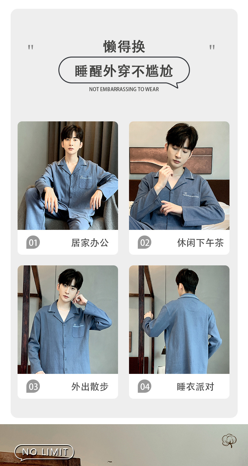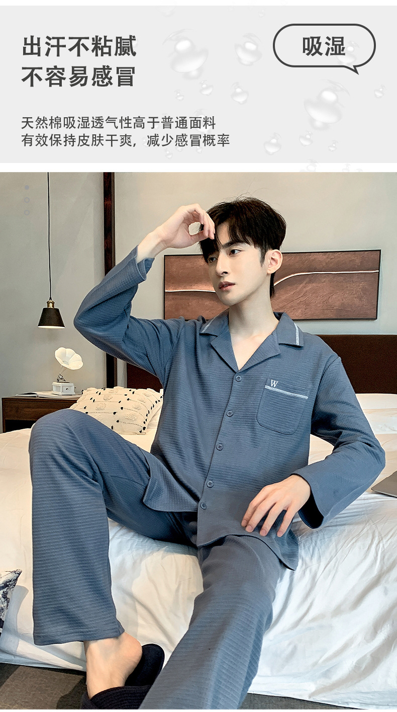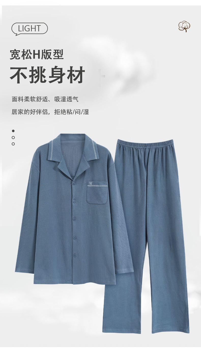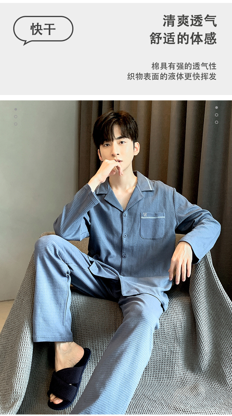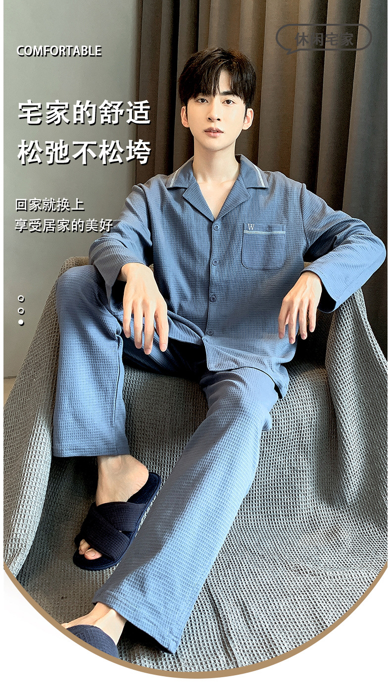 雀说 华夫格睡衣男士春秋款开衫家居服套装