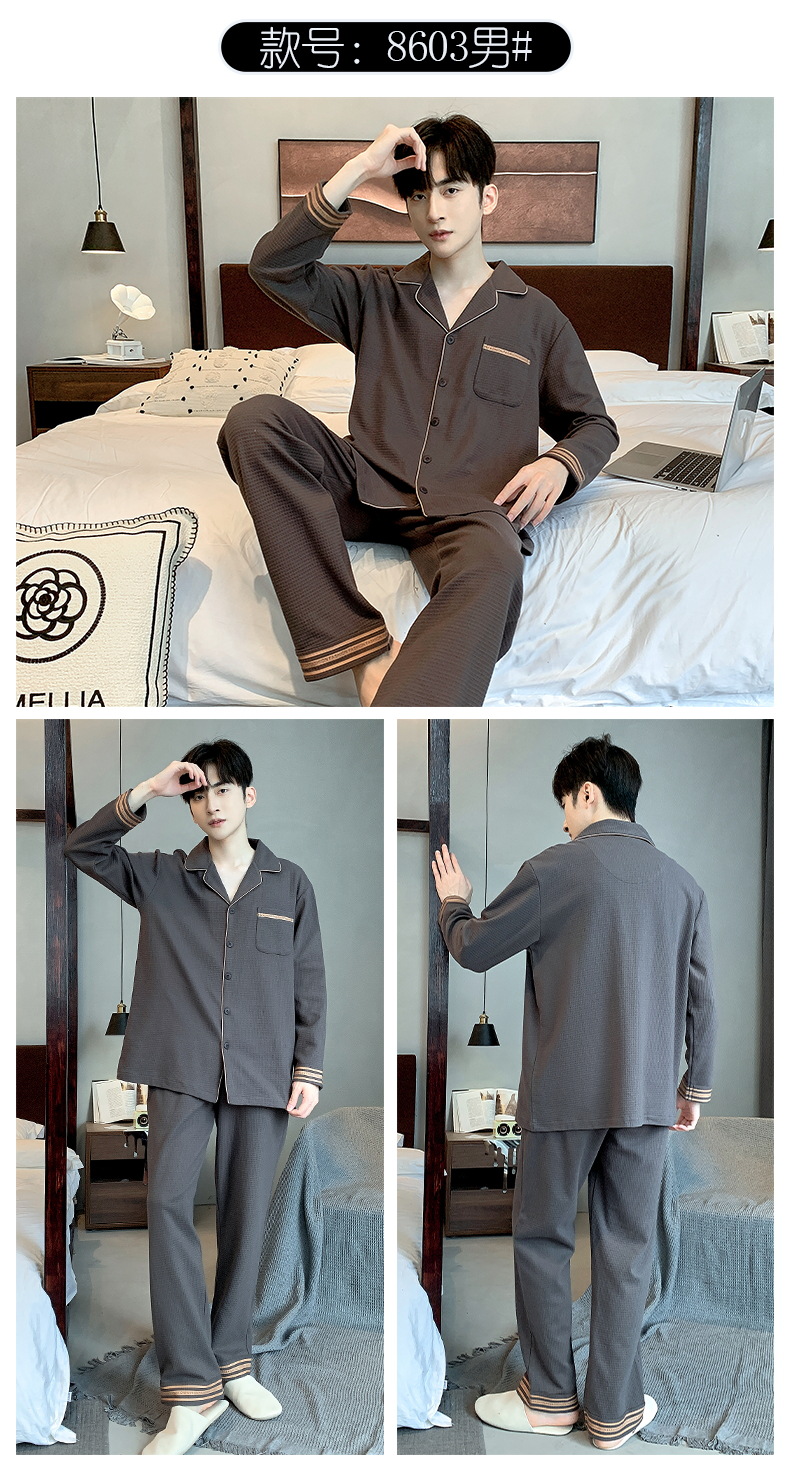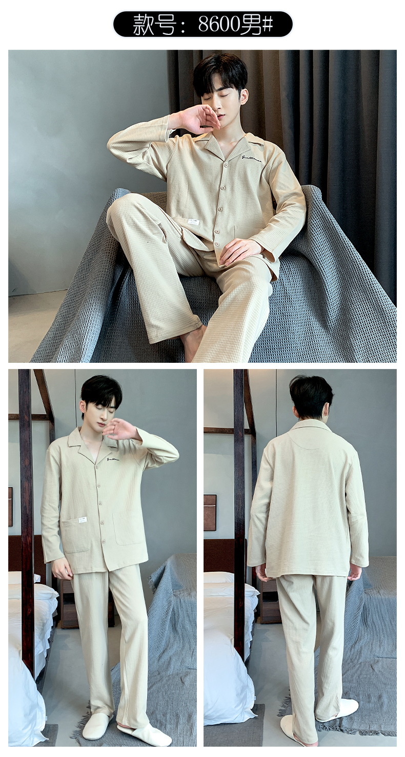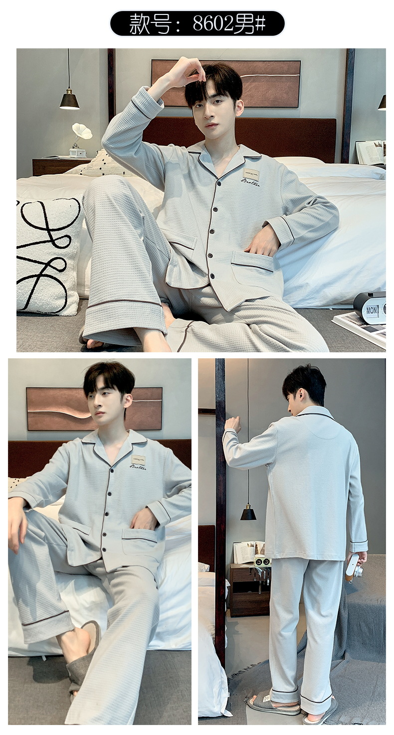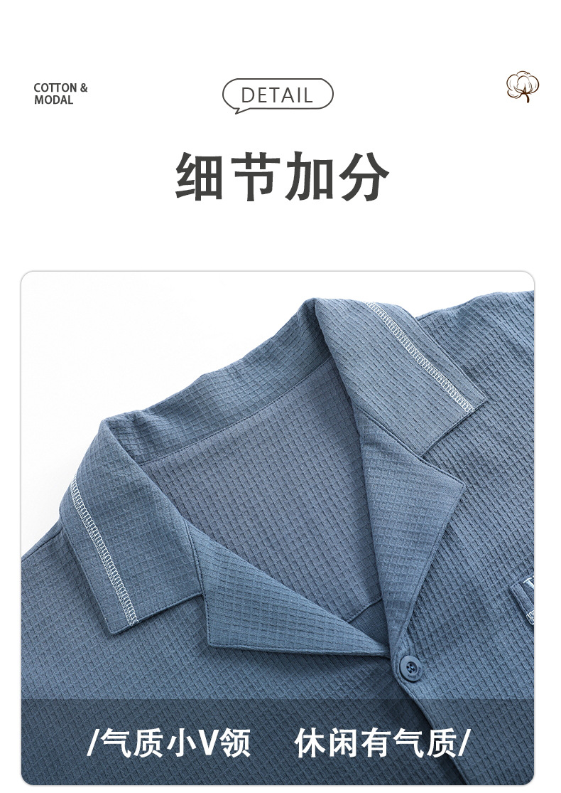 雀说 华夫格睡衣男士春秋款开衫家居服套装