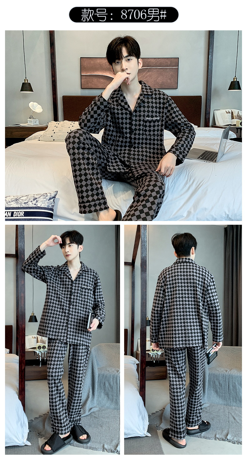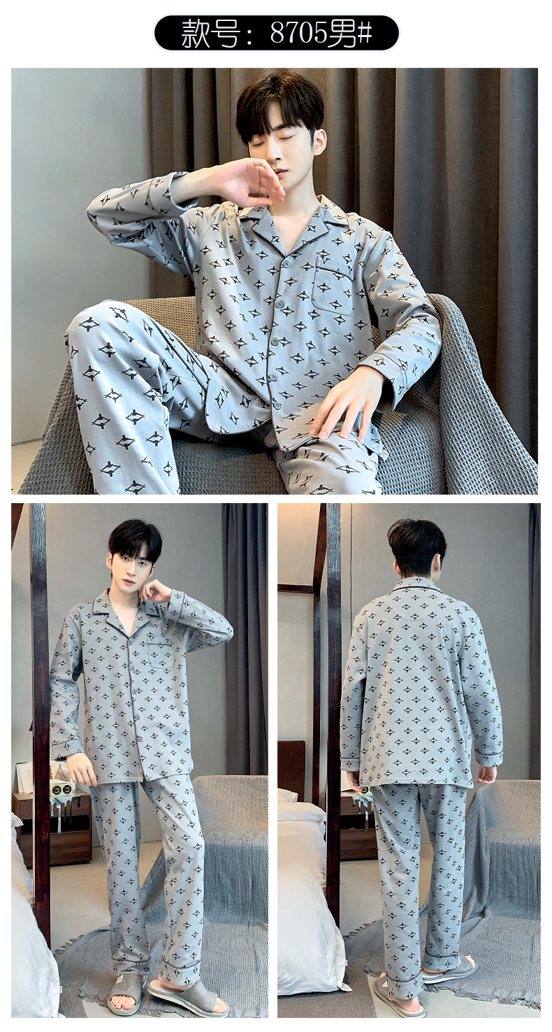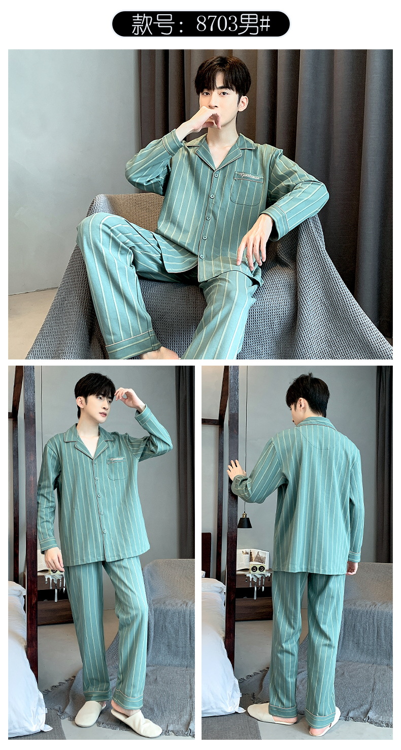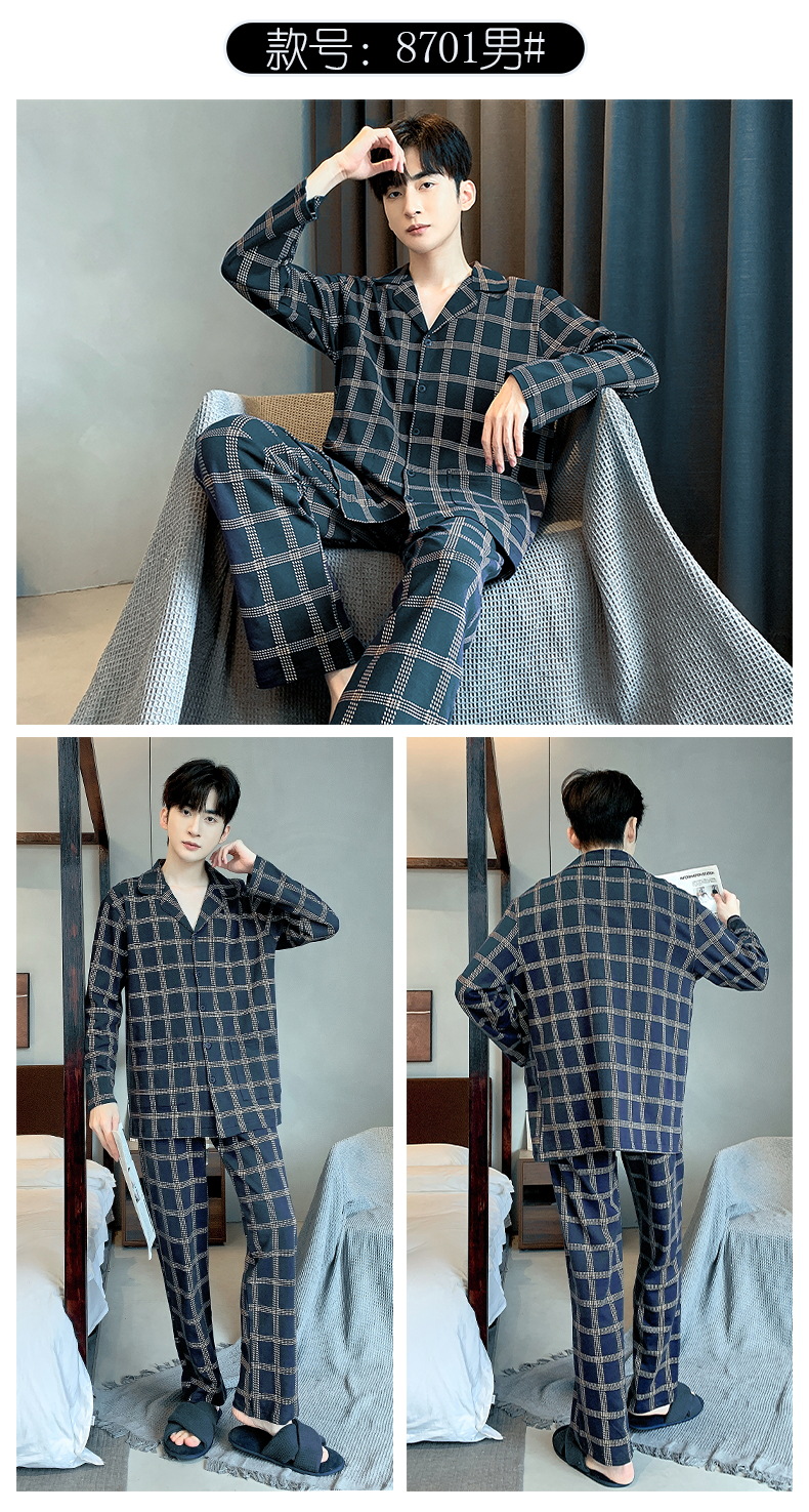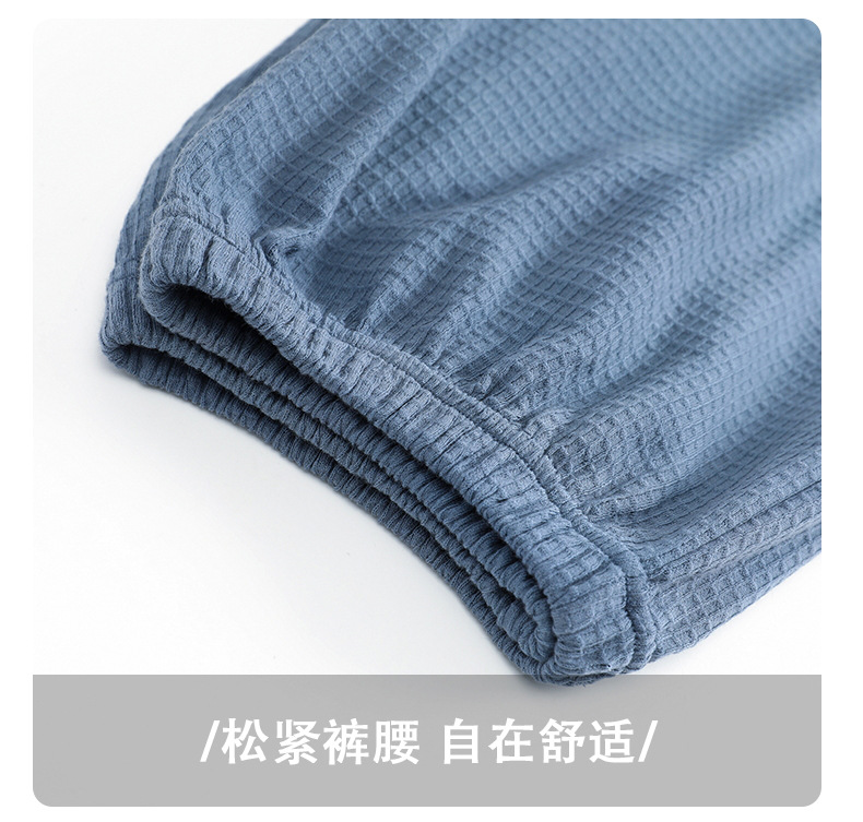 雀说 华夫格睡衣男士春秋款开衫家居服套装