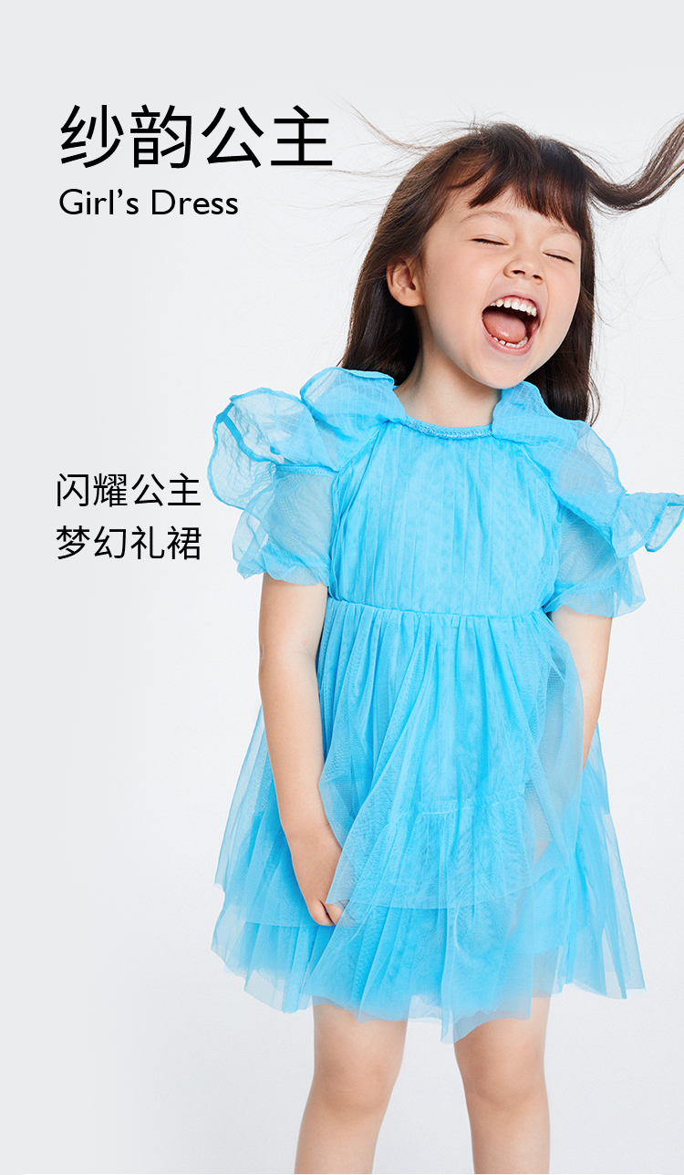 女童礼服裙网纱新款女宝宝生日公主裙主持表演出服安奈儿童装TG323093