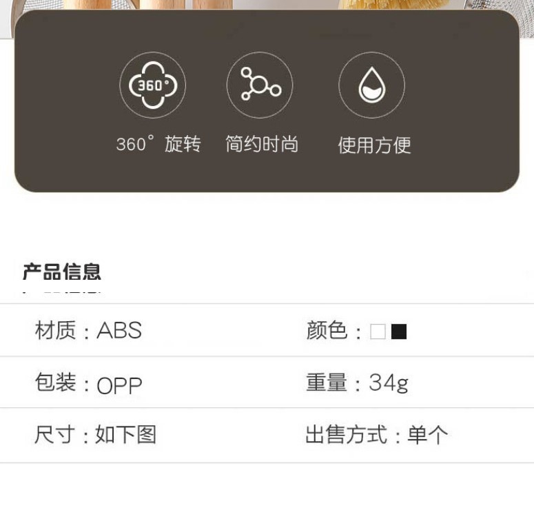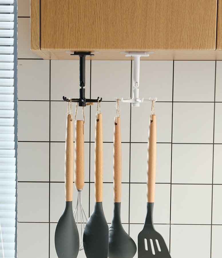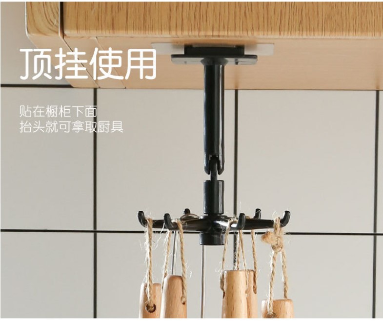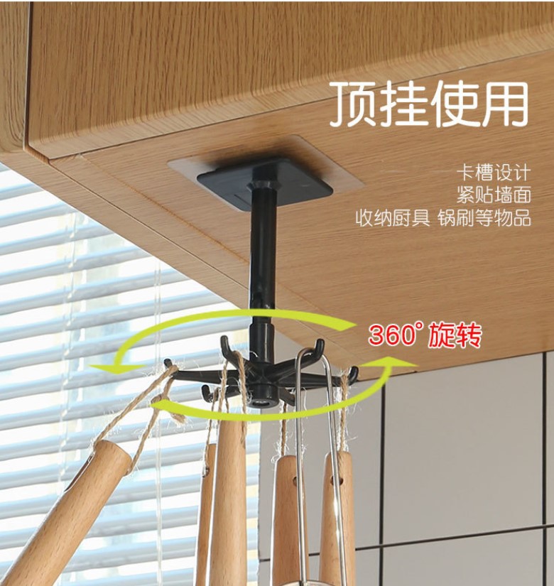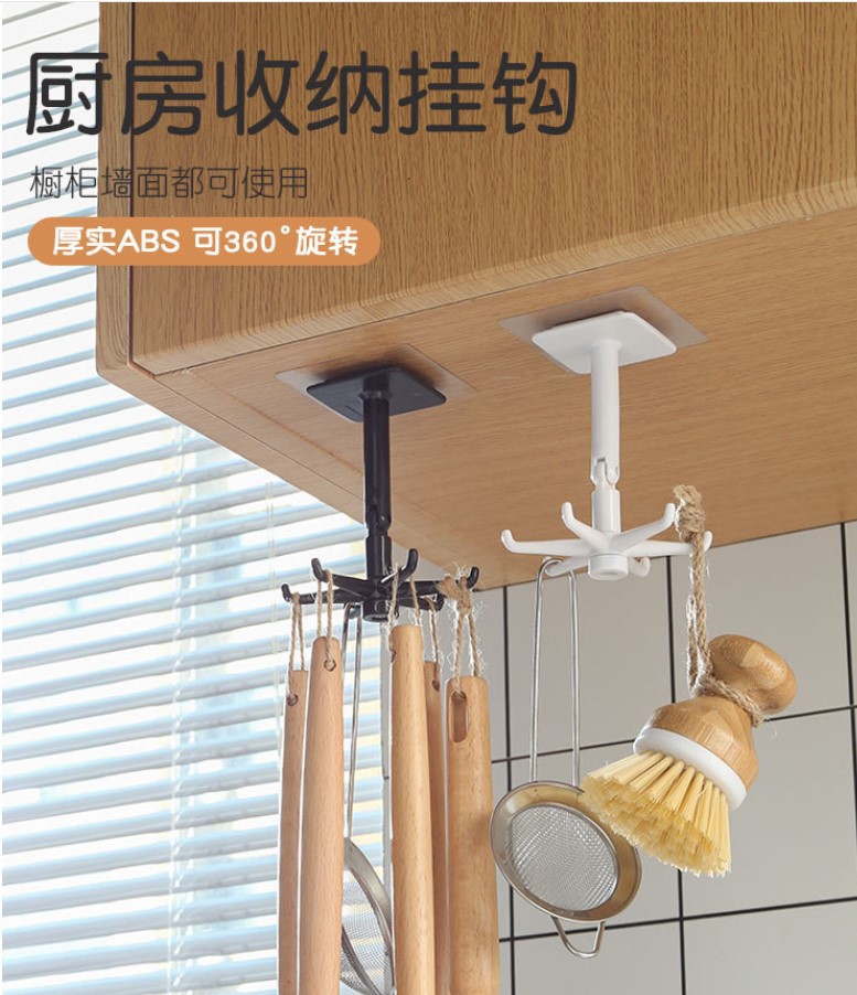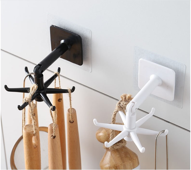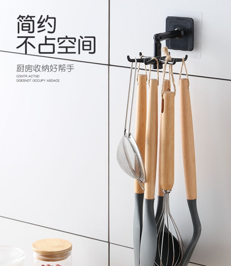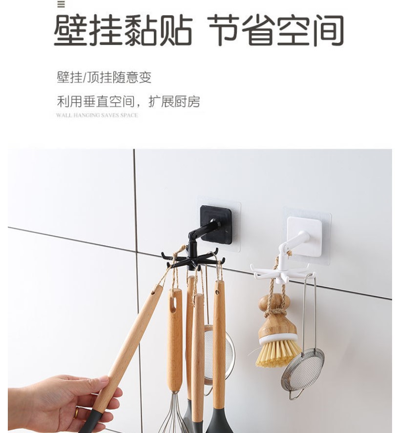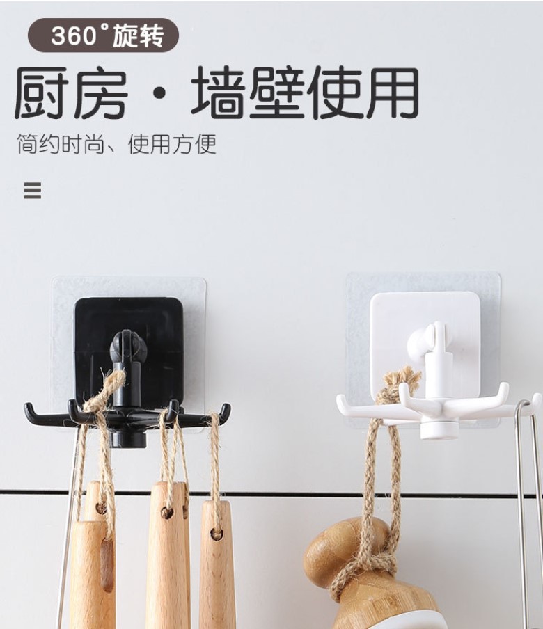 星罗创意旋转挂钩架玄关墙壁门后浴室厨房6连360度免打孔挂钩六爪挂钩