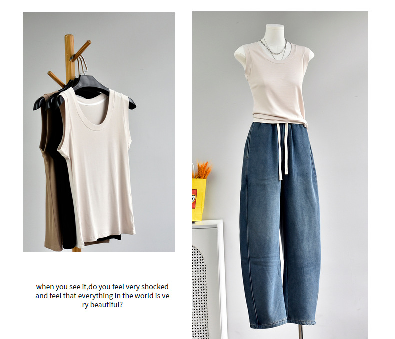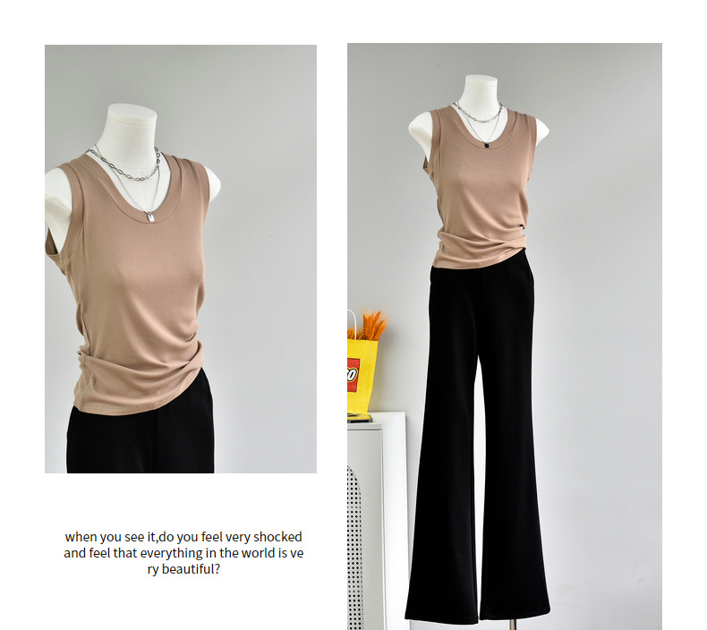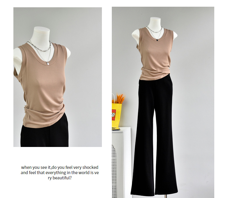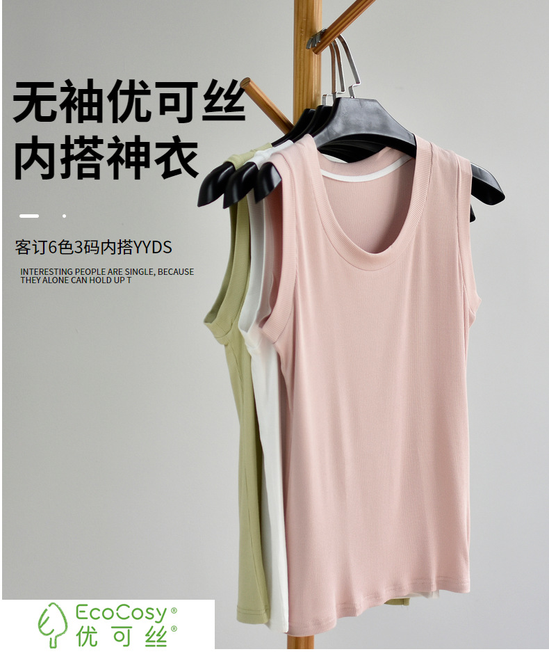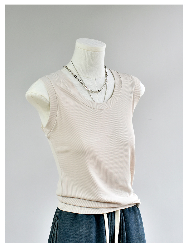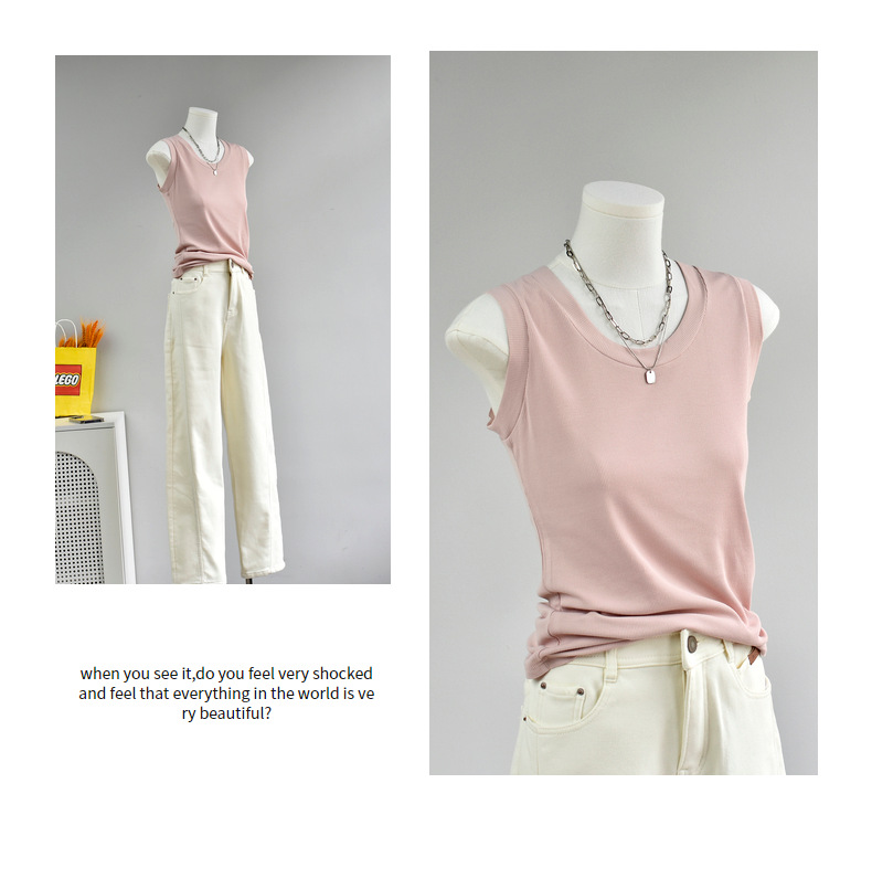 丁摩 【西装搭子衫】春女装新款百搭无袖针织显瘦u领打底衫5ZF-143