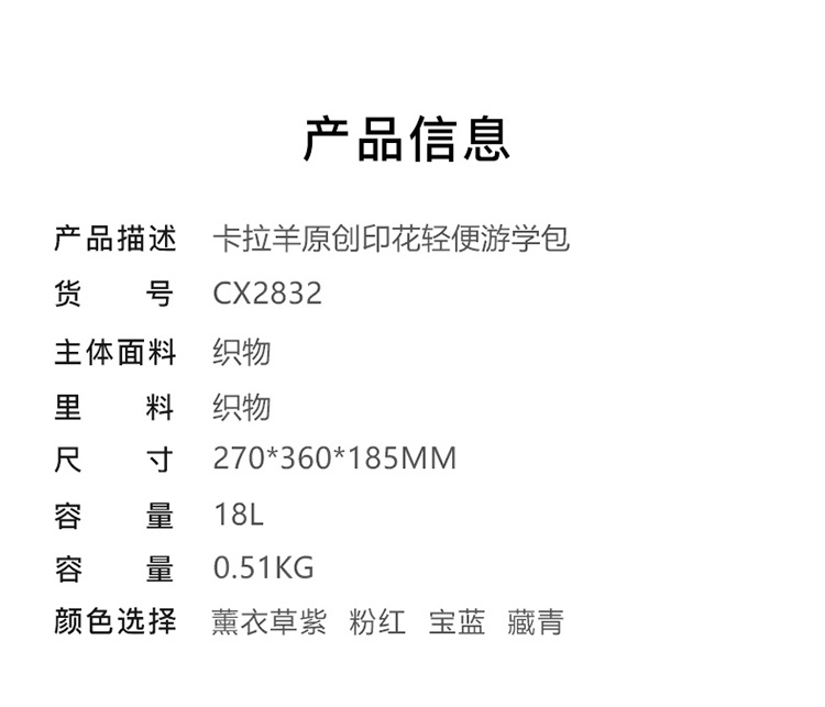 卡拉羊多功能游学包学生休闲出游运动双肩背包轻便漫游CX2832+CX5487