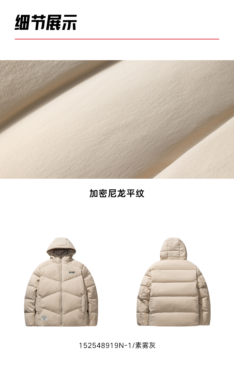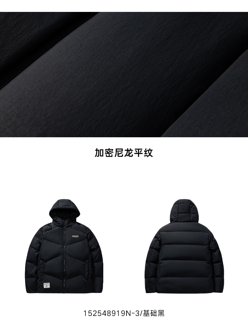 安踏男外套2025冬季新款连帽时尚宽松保暖运动羽绒服152548919N