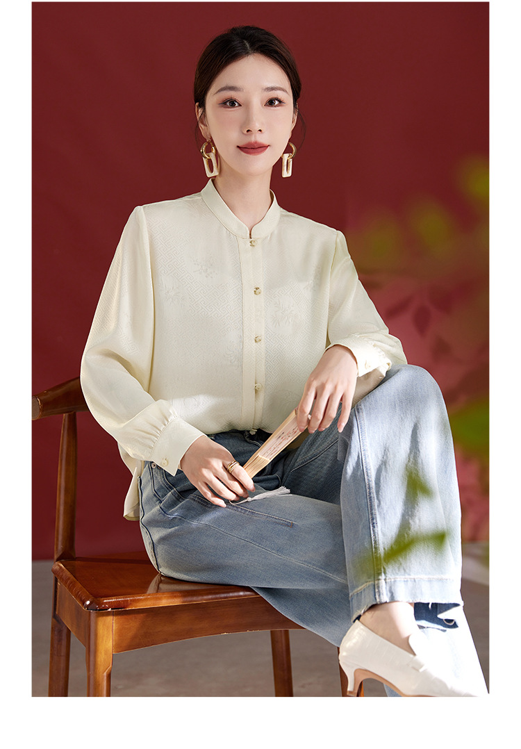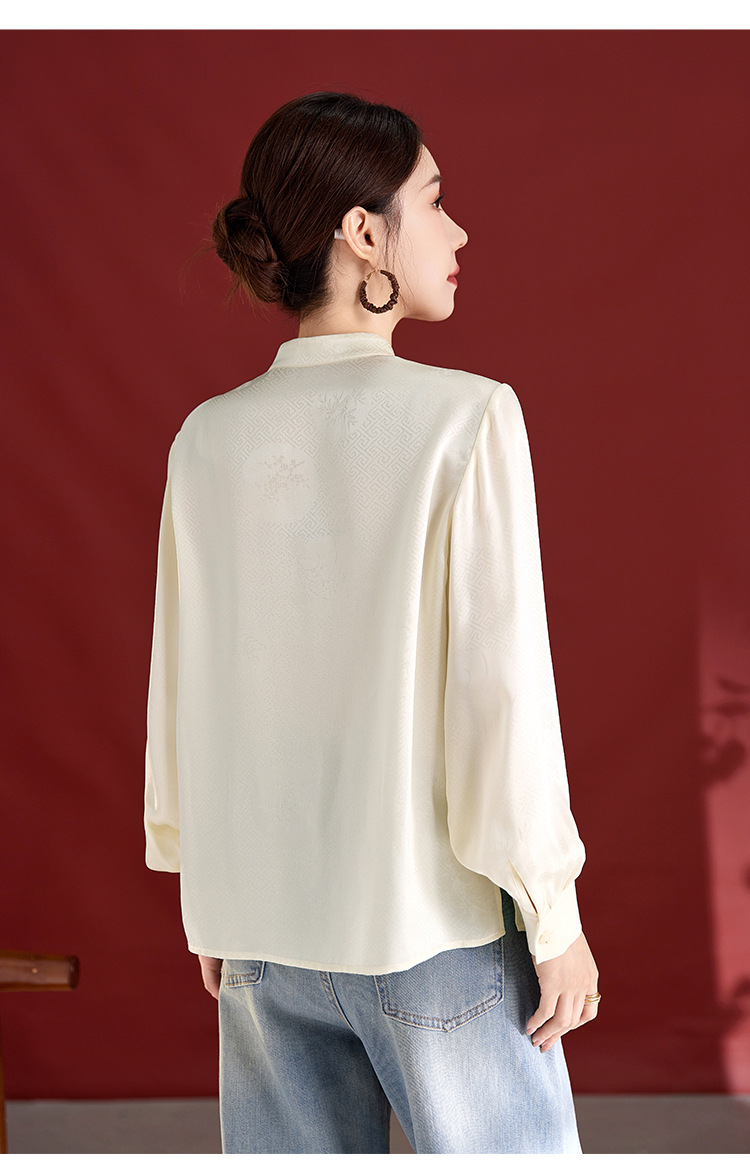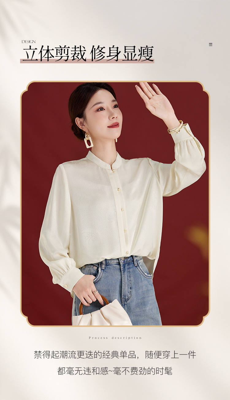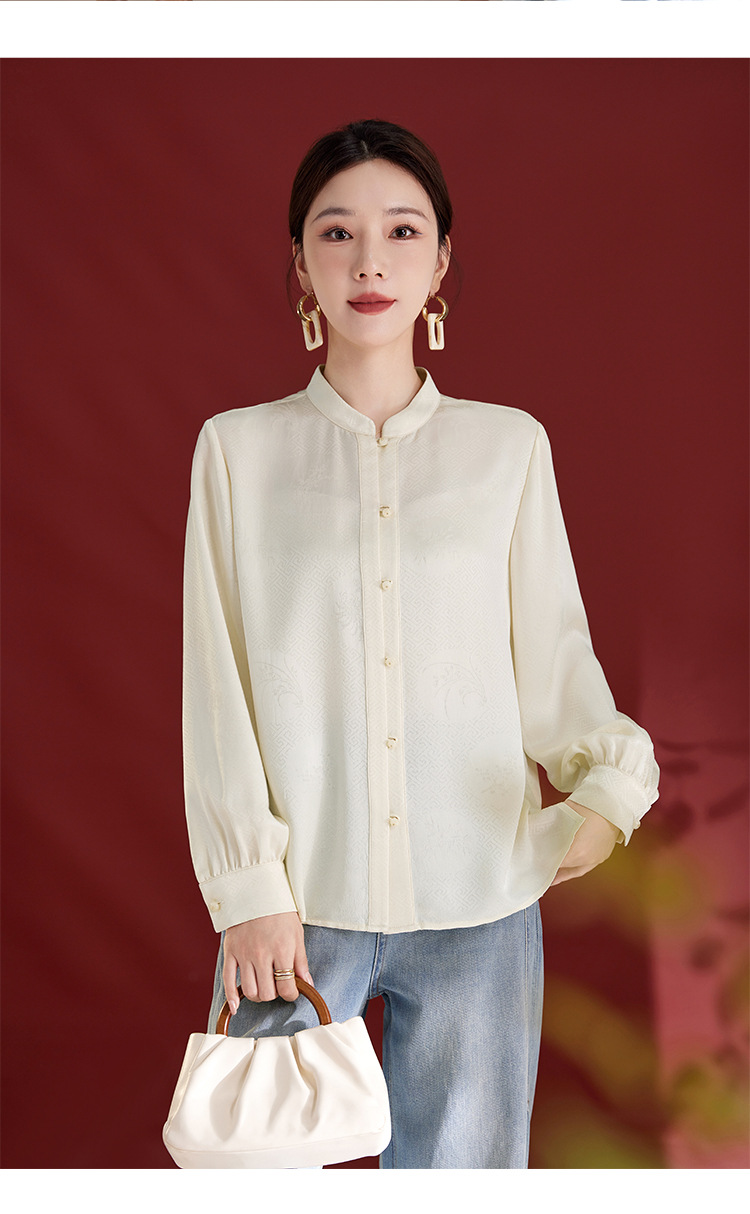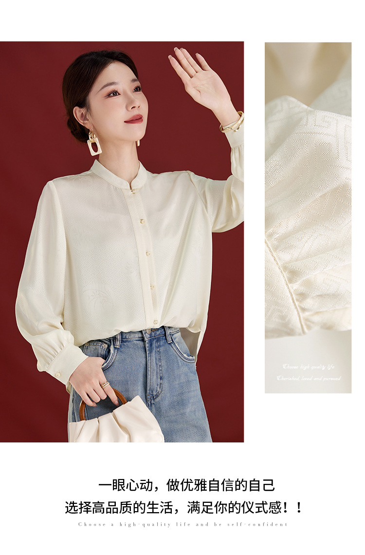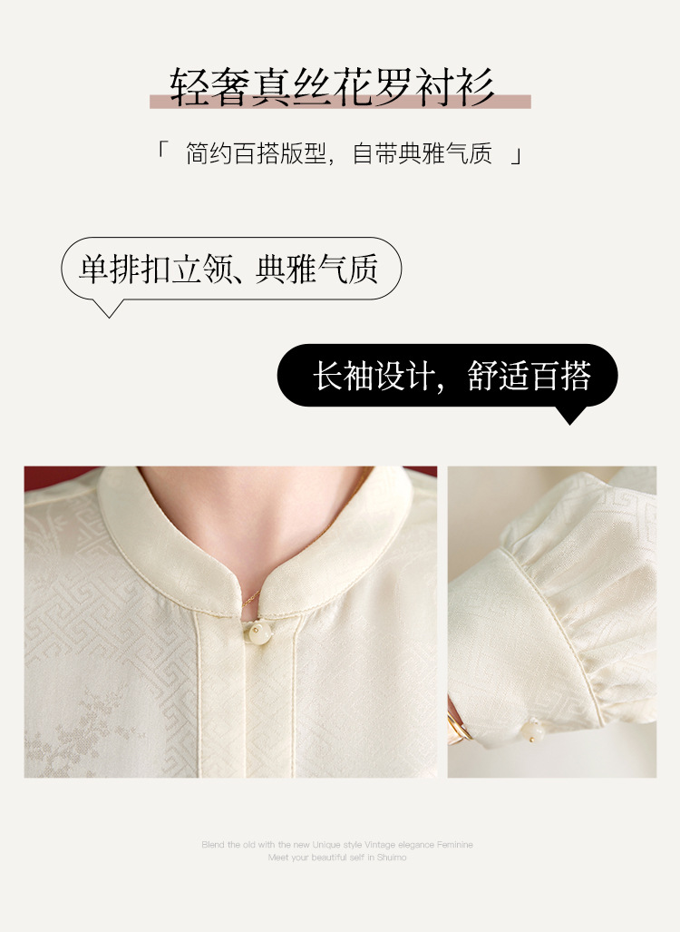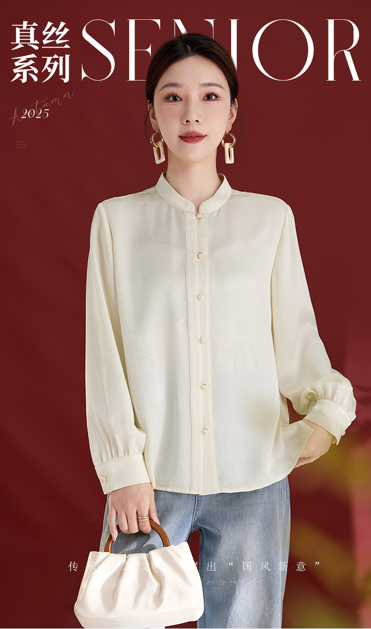 QS真丝桑蚕丝衬衫女2025秋季轻奢气质优雅法式长袖立领通勤上衣1775