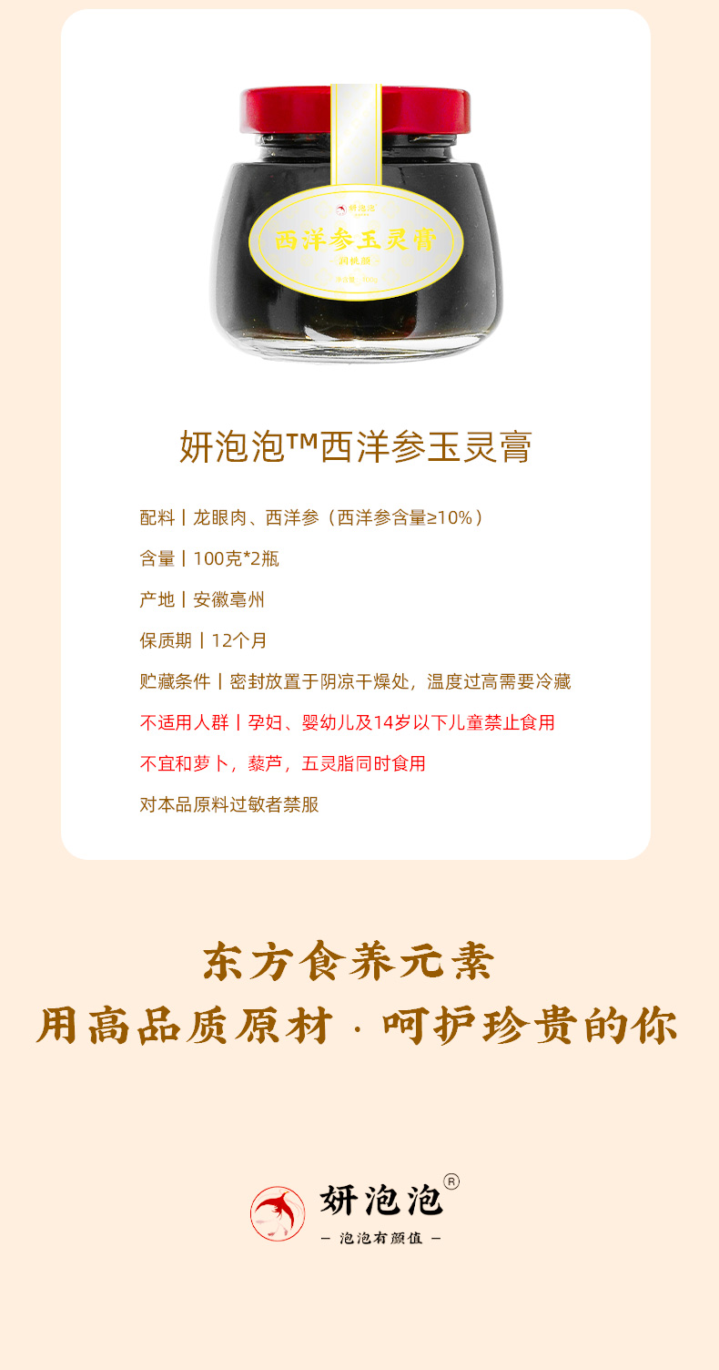 【妍泡泡西洋参玉灵膏】2瓶装1盒古方传承年轻暖心气血丰盈官方旗舰店